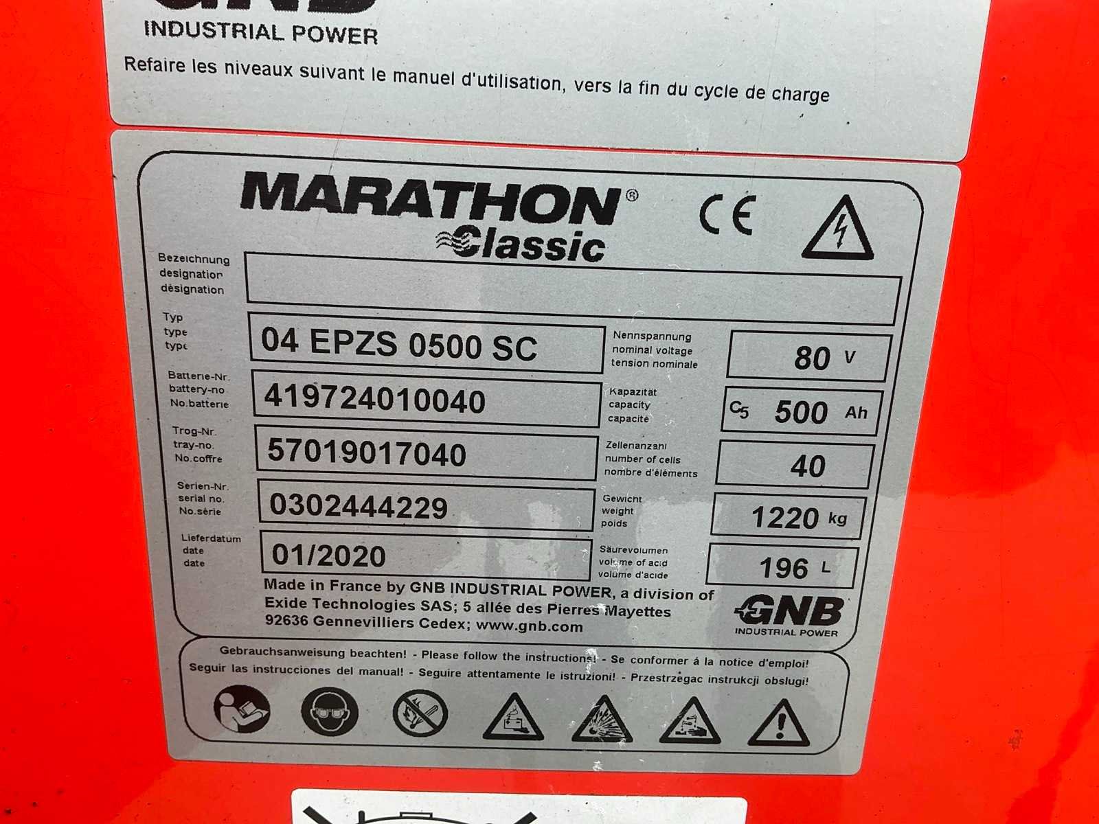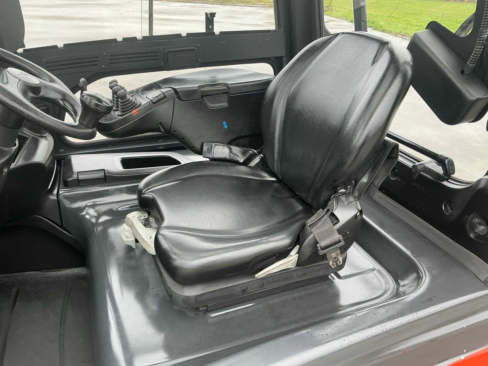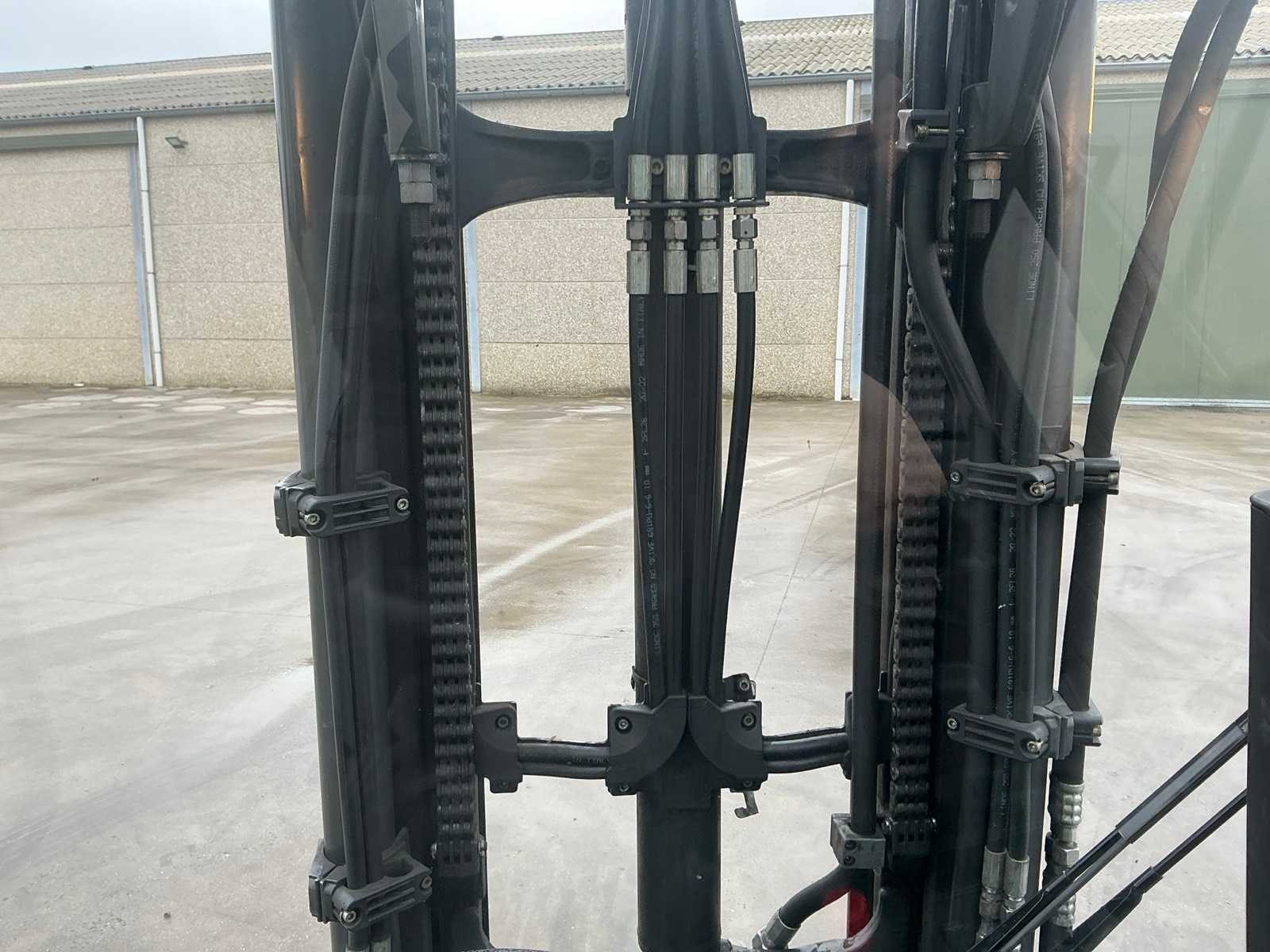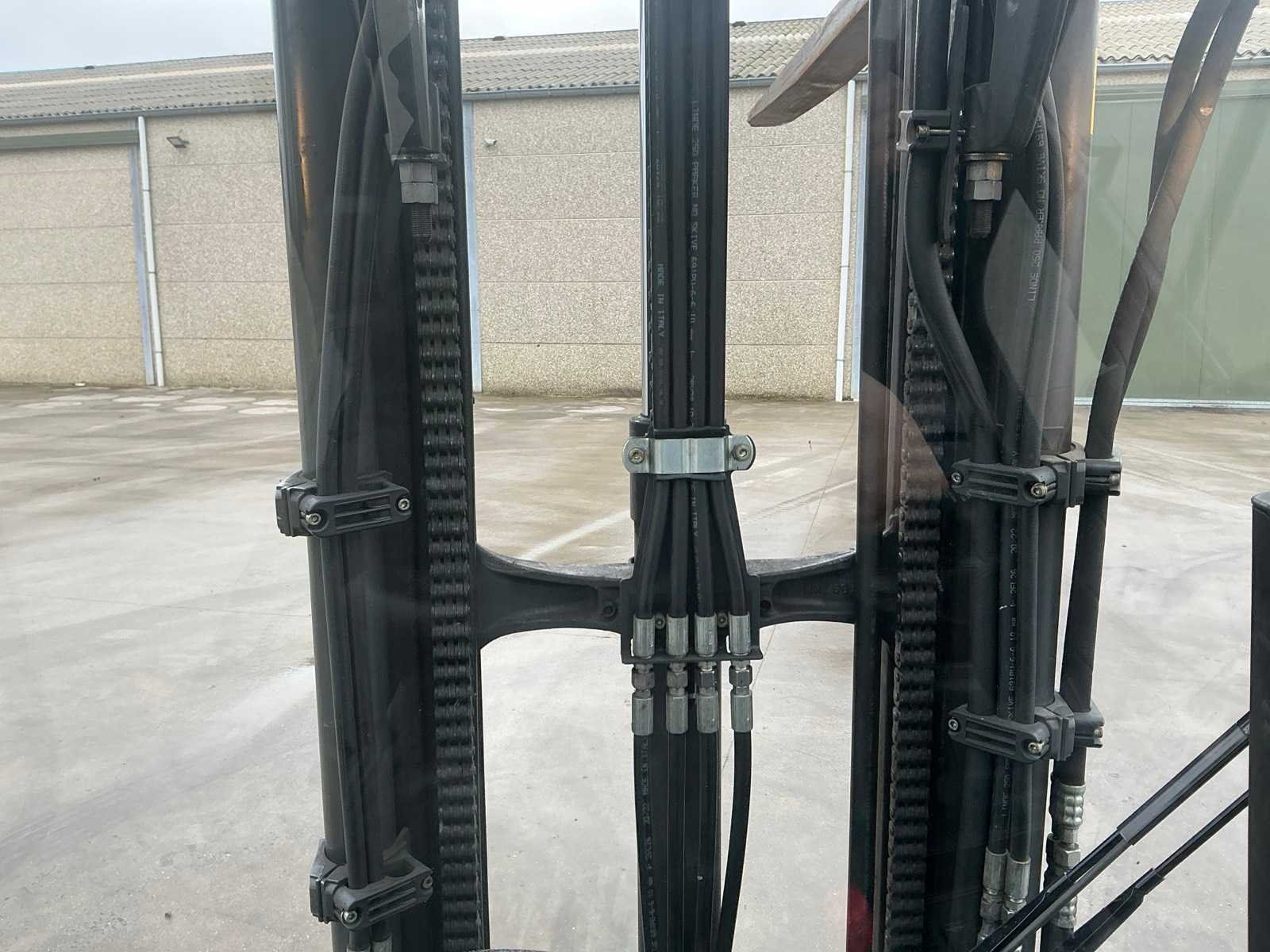 Accu met automatische vulling , zwaailicht , werklichten voor en achter , WIFO rotator , Recent nieuwe banden , 3de en 4de valve tot op vorkenbord , half gesloten verwarmde cabine Nee Merk: Linde Type: E25-01 Bouwjaar: 2017 Serienummer: H2X387H03265 Brandstof: Elektrisch Mast: Triple Soort band: Volrubber banden Aantal wielen: 4 Afgelezen urenstand: 4120 Side-shift: true Roterend vorkenbord: true Triple mast: true Eigen gewicht: 4650kg Hefvermogen: 2500kg Lepellengte: 1200mm Min. hefhoogte: 0mm Hefhoogte: 4760mm Vol rubber banden: true Totale afmeting L: 2500mm Totale afmeting Breedte: 1150mm Totale afmeting Hoogte: 2150mm Leveringsvoorwaarden: Gratis op vrachtwagen
