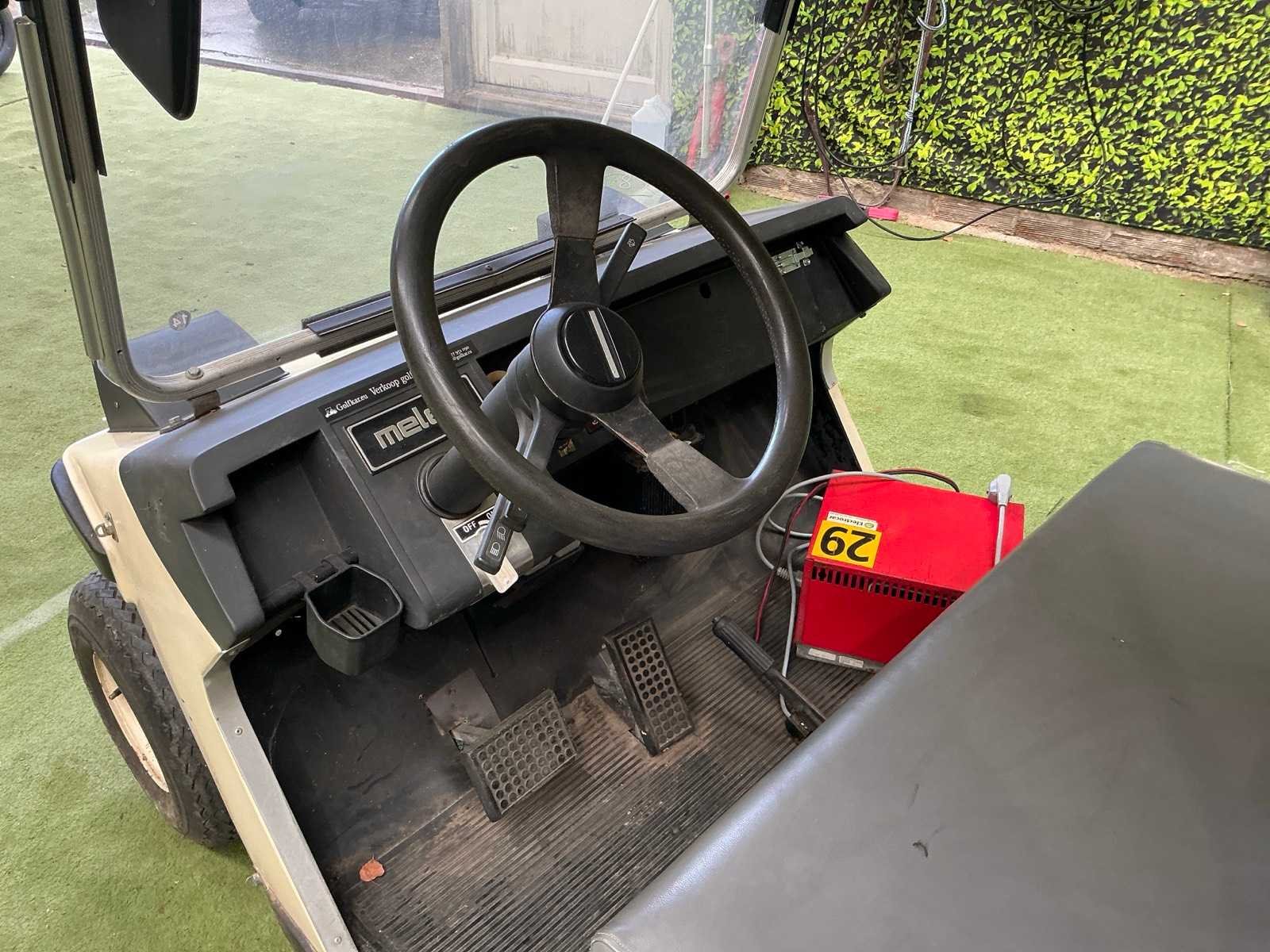 Voorzien van oplader, laadbak met afmeting: 110x75cm en start/stop functie Nee Merk: Melex lang dak Spanning: 48V Aantal personen: 4 Elektrisch: true
