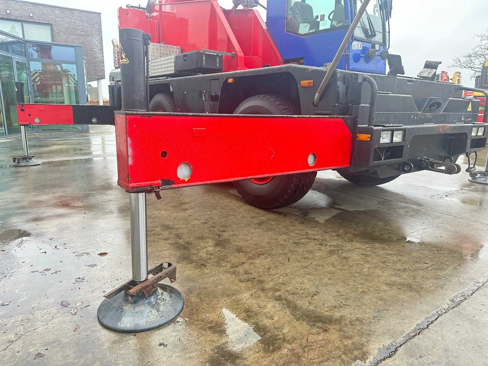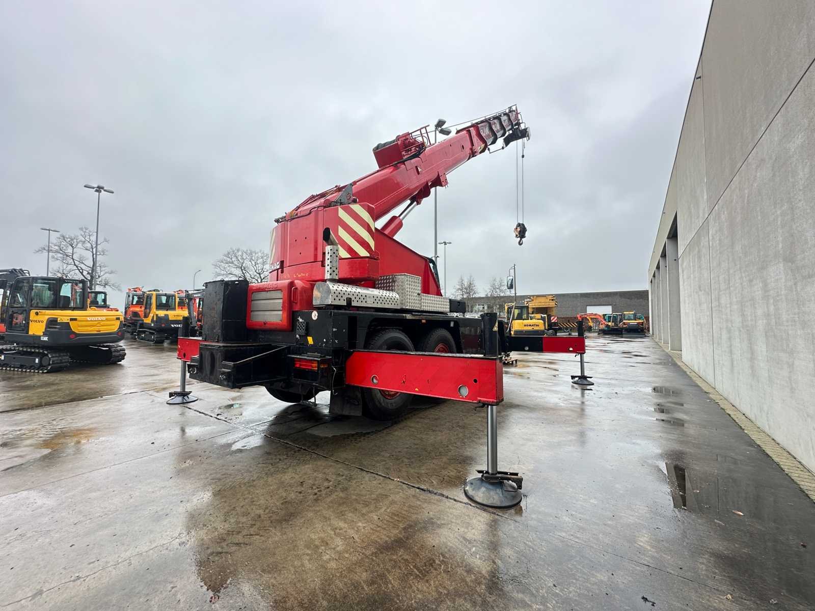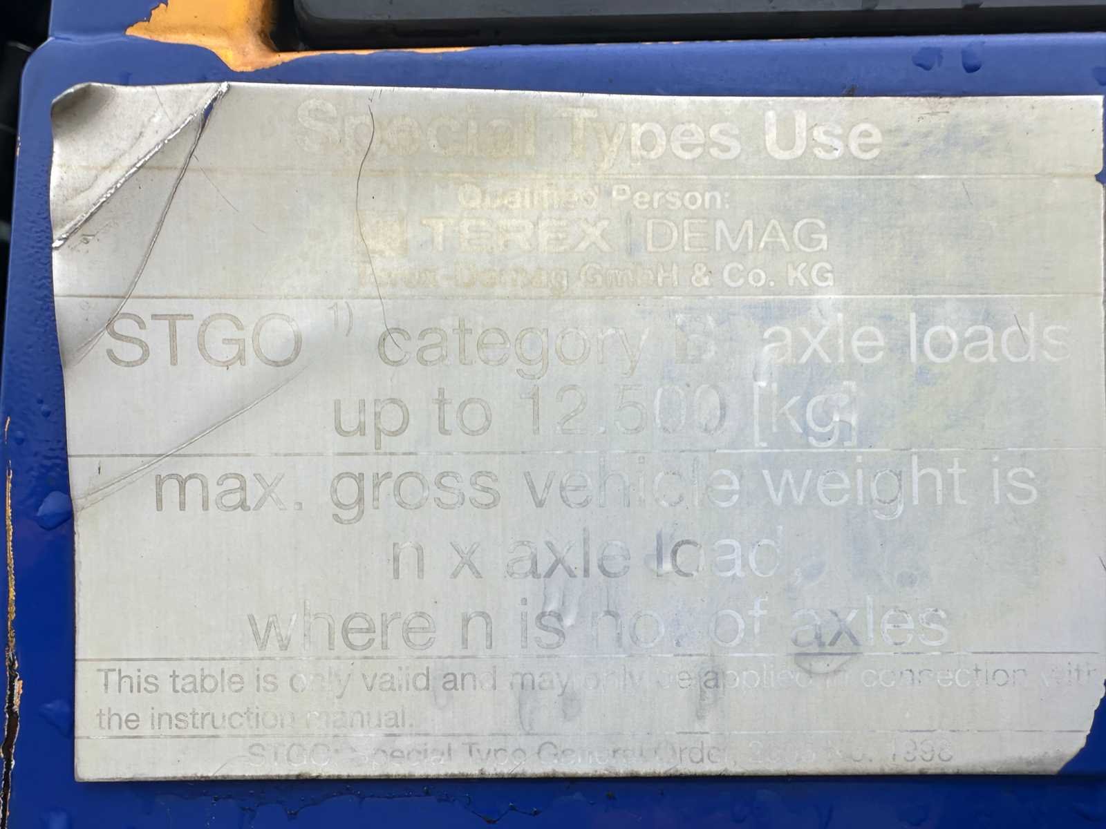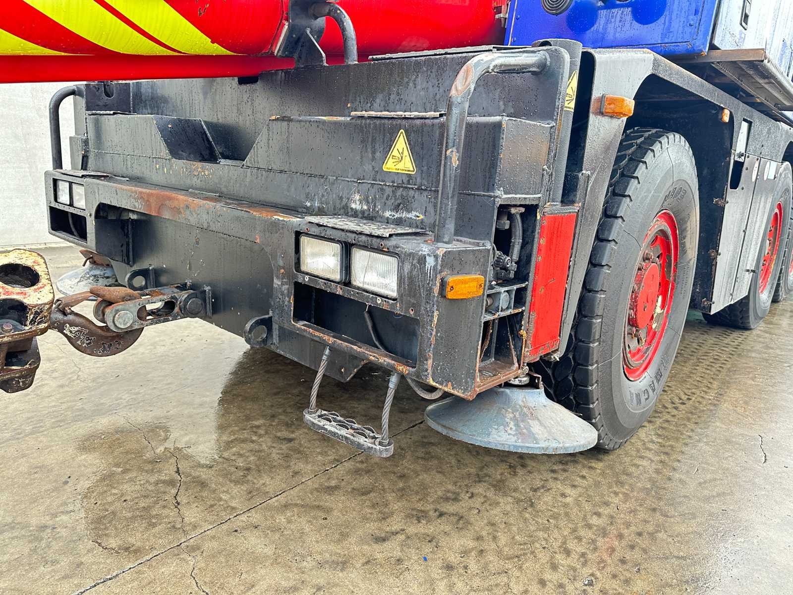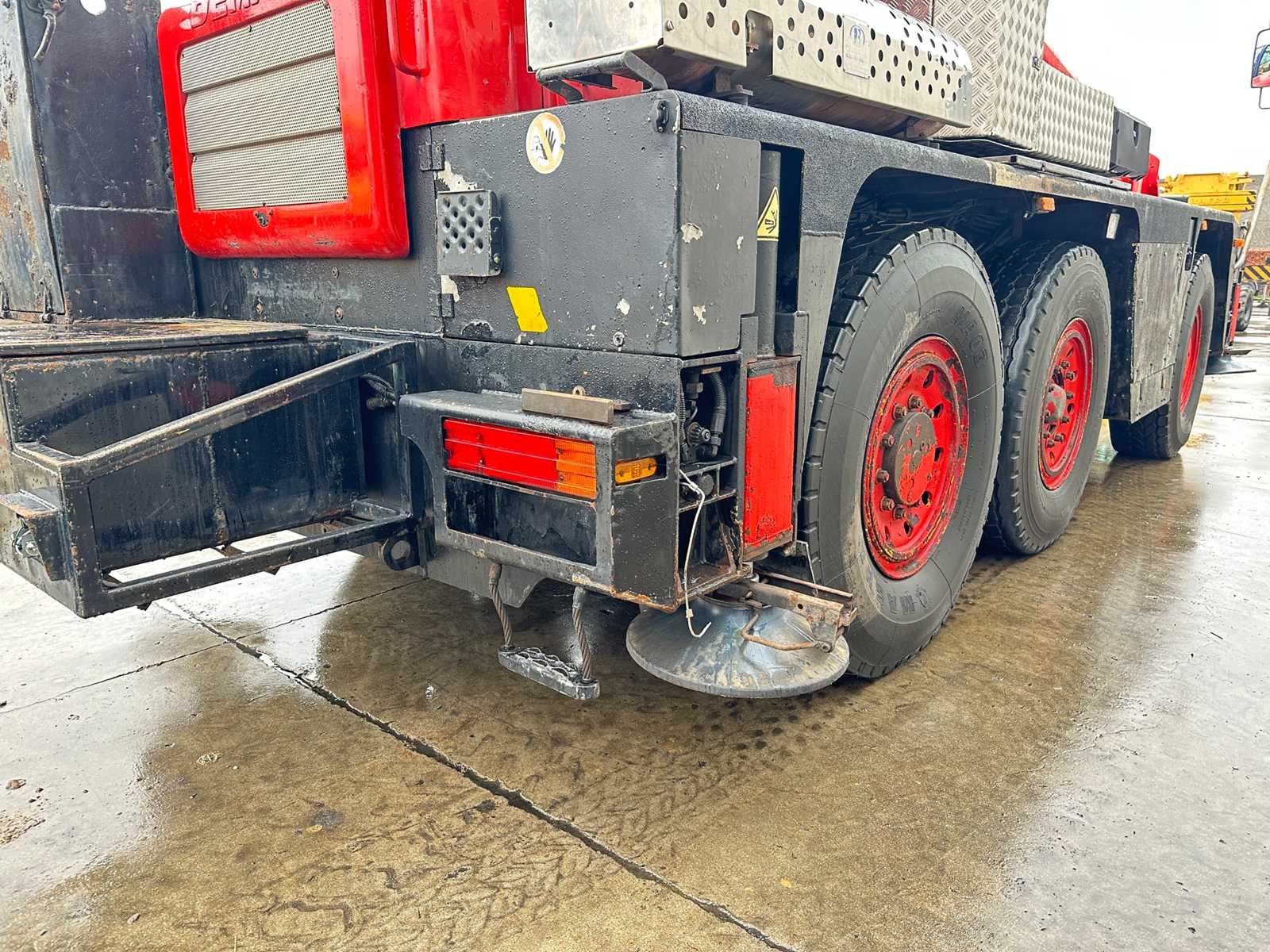 -25T Haakblok + 5T Haakblok -4 Steunpoten -80 km/u Nee Merk: Terex - Demag Type: AC40-1 City Bouwjaar: 1998 Serienummer: 70493 Max. hijscapaciteit: 40000kg Max. hijshoogte: 31m Afgelezen urenstand: 26097 Merk motor: Mercedes - Benz Motorvermogen (kW): 205kW Aantal assen: 3 Kilometerstand bij opname: 229041km Bandenmaat: 385/95R25 Eigen gewicht: 33000kg Totale afmeting L: 8900mm Totale afmeting Breedte: 2550mm Totale afmeting Hoogte: 3400mm
