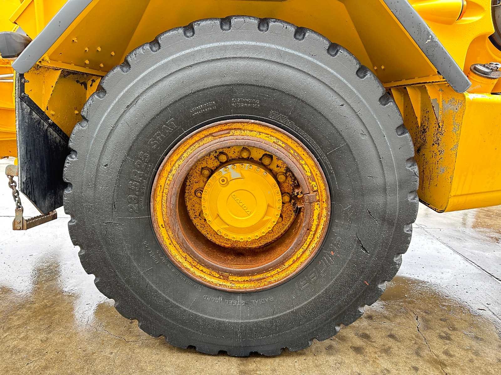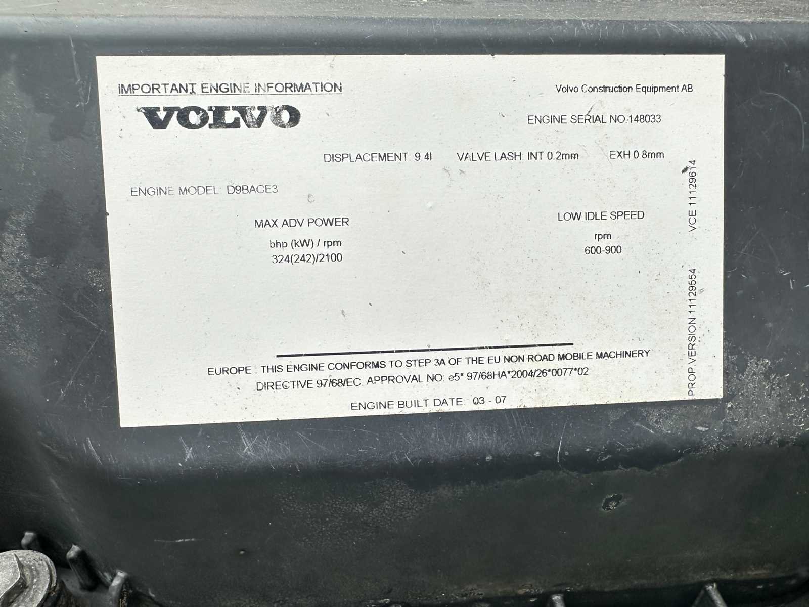 -Cardanas tussen de tweede en derde as ontbreekt. -Geen documenten Nee Merk: Volvo Type: A30D Serienummer: A30DV14885 Bouwjaar: 2007 Merk motor: Volvo D9BACE3 Motorvermogen (kW): 242kW Aantal cilinders: 6 Brandstof: Diesel Bandenmaat: 23.5-25 Afgelezen urenstand: 17277 Eigen gewicht: 23060kg Totale afmeting L: 10297mm Totale afmeting Breedte: 2859mm Totale afmeting Hoogte: 3428mm