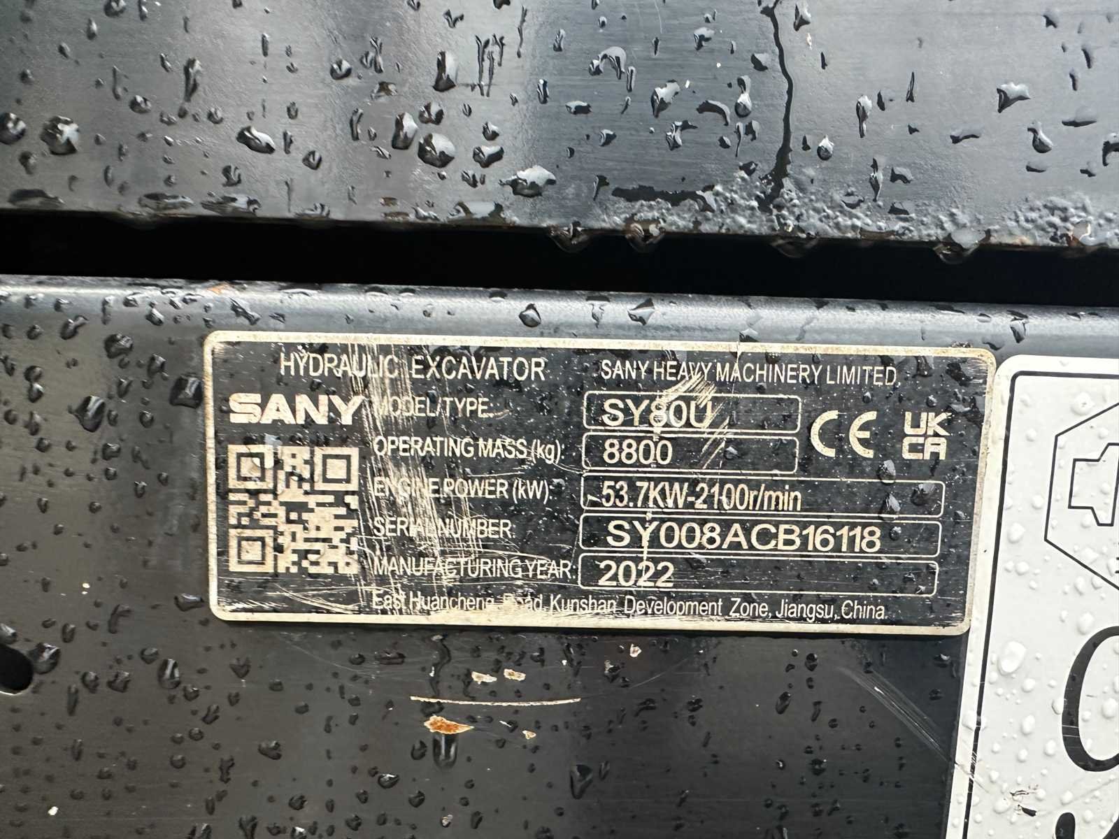-Hydraulische snelwissel -Enkel en dubbel werkende functie -Rotatie functie -Graafbak 150cm -Duwblad -Geen documenten Nee Merk: Sany Type: SY80U Bouwjaar: 2022 Serienummer: SY008ACB16118 Merk motor: Yanmar Motorvermogen (kW): 53.7kW Aantal cilinders: 4 Brandstof: Diesel Met graafbak: true Graafbak afm. b: 1500mm Rups breedte: 450mm Afgelezen urenstand: 5388 Eigen gewicht: 8800kg Totale afmeting L: 6500mm Totale afmeting Breedte: 2220mm Totale afmeting Hoogte: 2550mm GS Code: 8429521200