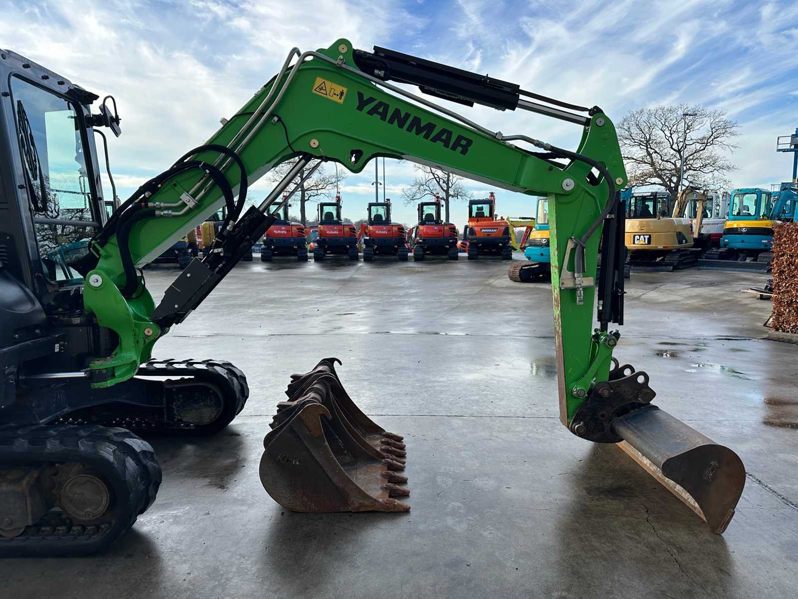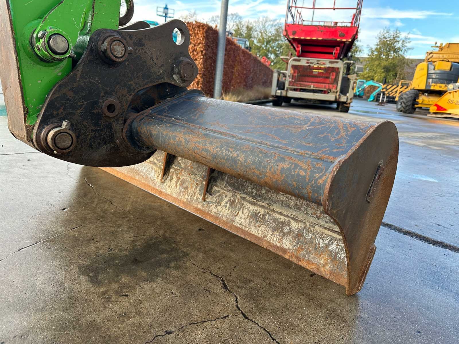 -Mechanische snelwissel -Hamerleidingen -Graafbak 1500mm -2 Tandenbakken 570mm + 470mm -Duwblad Nee Merk: Yanmar Type: VIO50-6B Bouwjaar: 2021 Serienummer: YCEVIO50AAEE00765 Merk motor: Yanmar 4TNV88 Motorvermogen (kW): 27.5kW Aantal cilinders: 4 Brandstof: Diesel Graafbak afm. b: 1500mm Rups breedte: 350mm Afgelezen urenstand: 3089 Eigen gewicht: 4875kg Totale afmeting L: 5500mm Totale afmeting Breedte: 1950mm Totale afmeting Hoogte: 2650mm GS Code: 8429521200