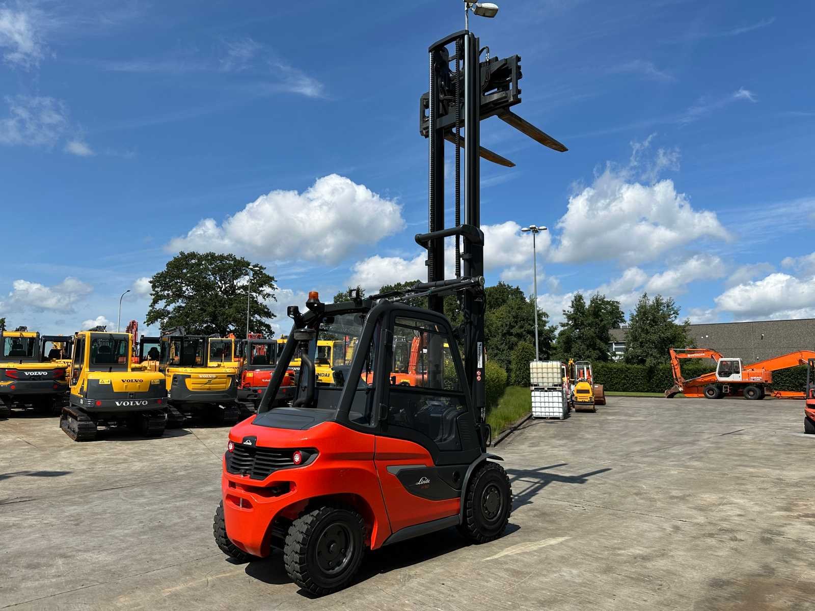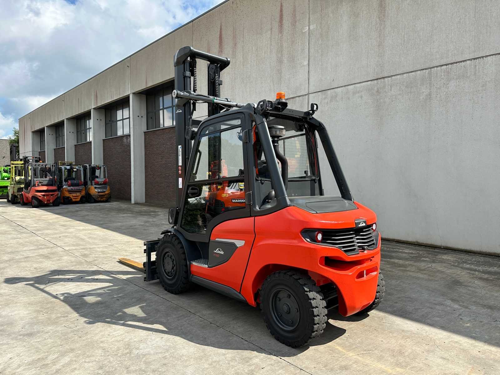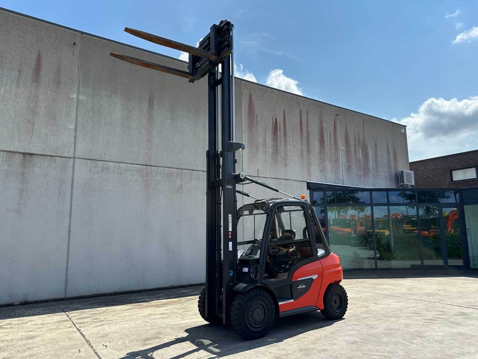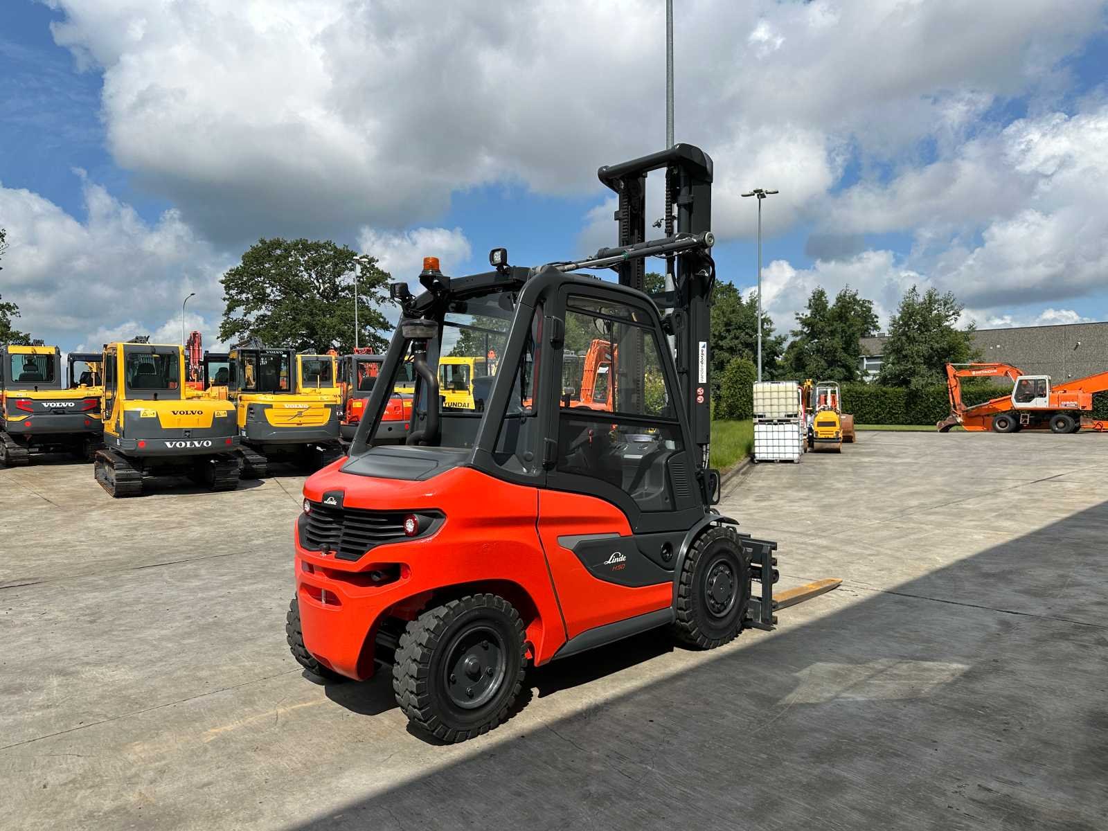 -Vorkenbord hydraulisch verstelbaar tot 2200mm breedte -Lift-Log 100 weegsysteem Nee Merk: Linde Type: H50D Bouwjaar: 2023 Serienummer: H21204M00092 Brandstof: Diesel Mast: Duplex Aantal wielen: 4 Afgelezen urenstand: 606 Free-lift: true Side-shift: true Hydraulisch verstelbare lepels: true Duplex mast: true Eigen gewicht: 7173kg Hefvermogen: 5000kg Lepellengte: 1600mm Max. hefhoogte: 5000mm Vol rubber banden: true Totale afmeting L: 3400mm Totale afmeting Breedte: 1550mm Totale afmeting Hoogte: 3500mm Diesel: true Leveringsvoorwaarden: Niet gefundeerd - onverpakt
