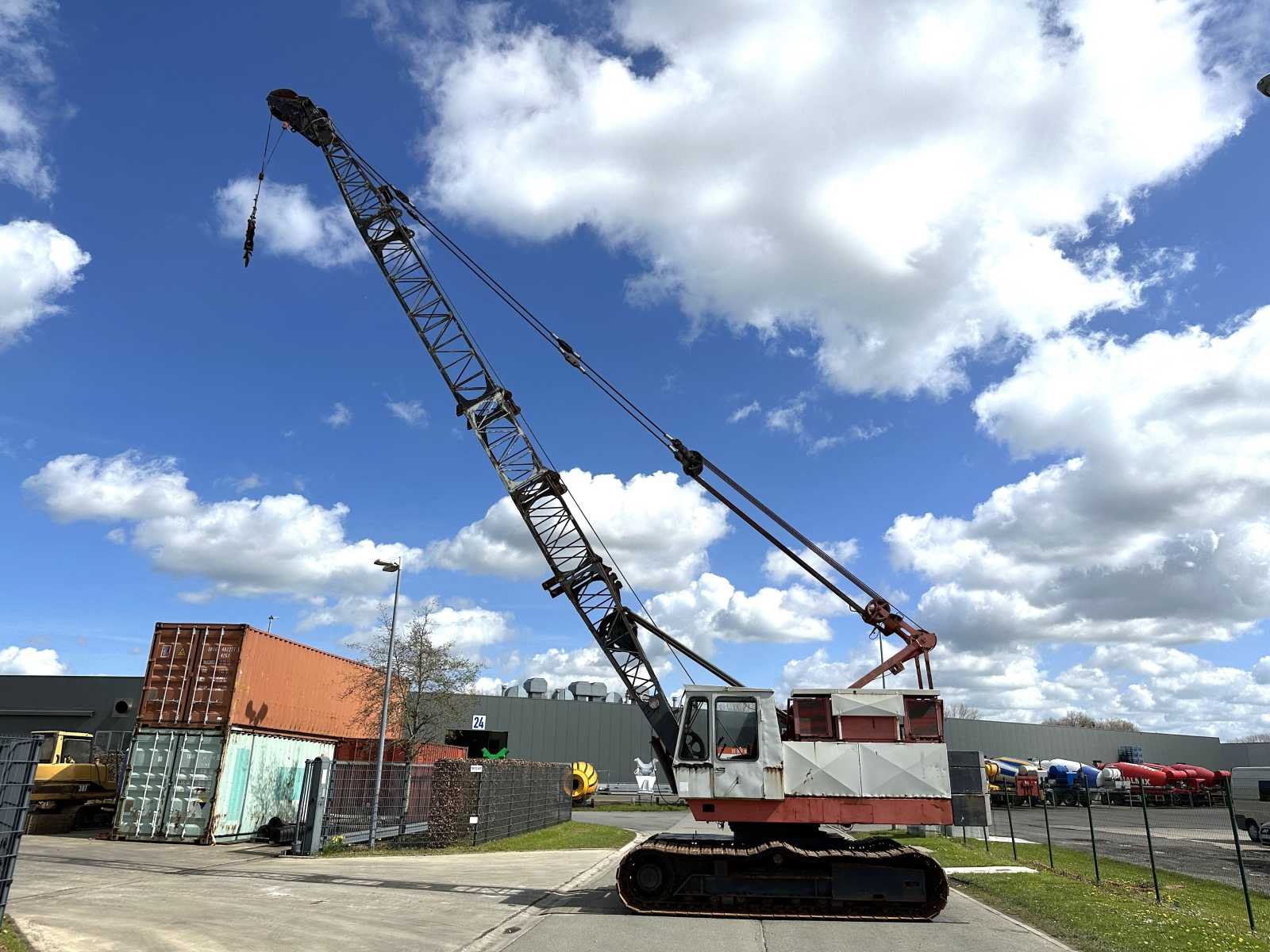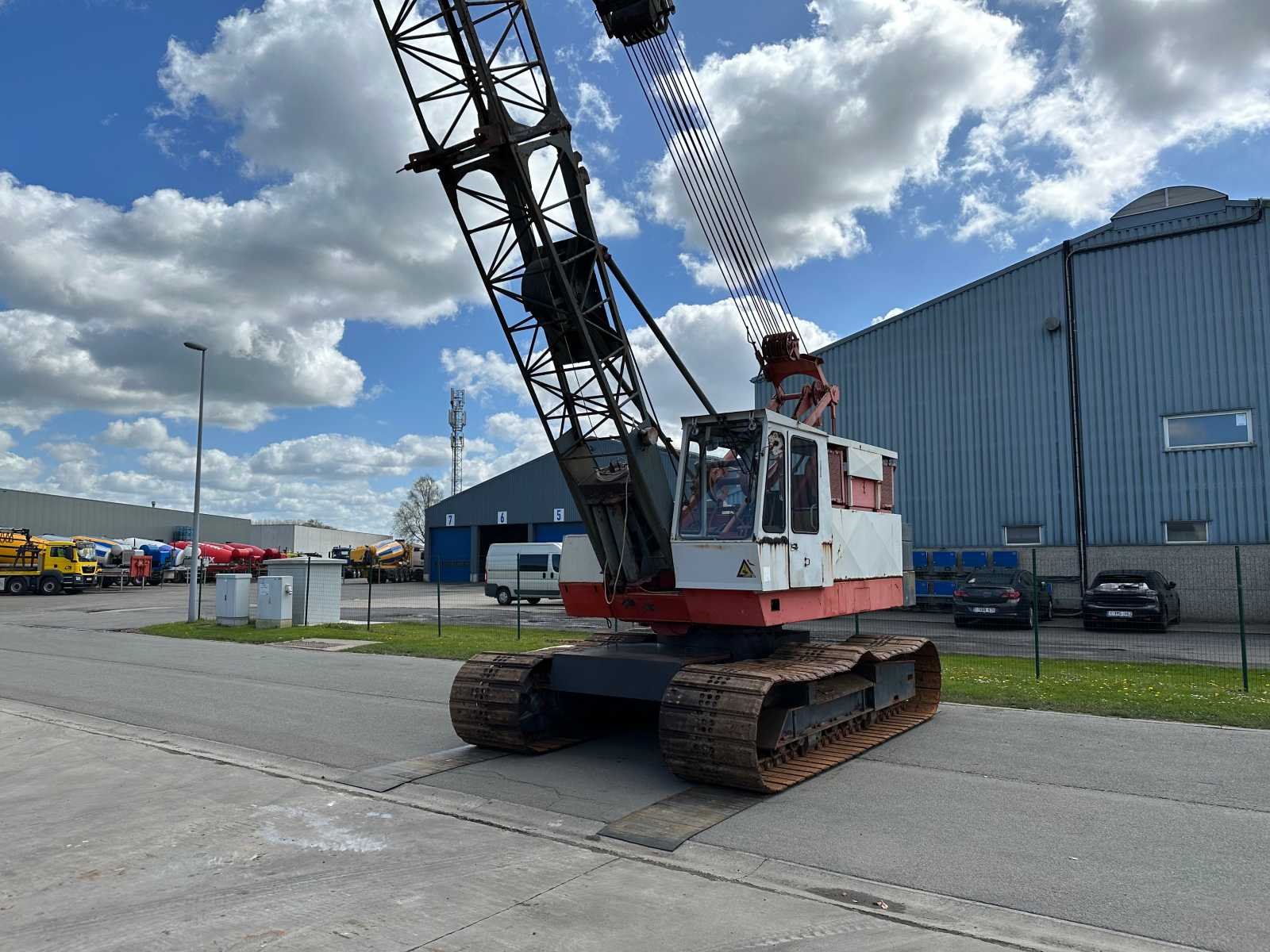 -Transport afmetingen met demontage giek -Geen documenten Nee Merk: PPM Type: 2502 Bouwjaar: 1978 Serienummer: 2419 Max. hijscapaciteit: 25000kg Max. mastlengte: 22m Aantal mastdelen: 6 Max. hijshoogte: 25m Max. haakhoogte: 22m Rupskraan: true Afgelezen urenstand: 3569 Merk motor: Deutz Motorvermogen (kW): 112kW Aantal cilinders: 6 Eigen gewicht: 27000kg Totale afmeting L: 5600mm Totale afmeting Breedte: 3300mm Totale afmeting Hoogte: 3200mm