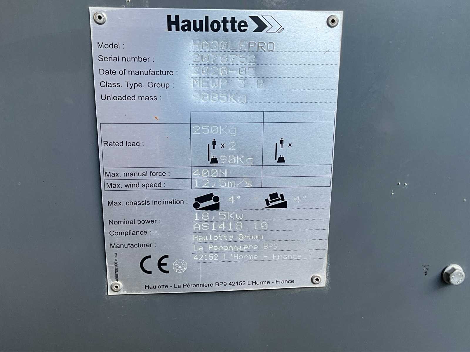 2020 haulotte ha20lepro hoogwerker