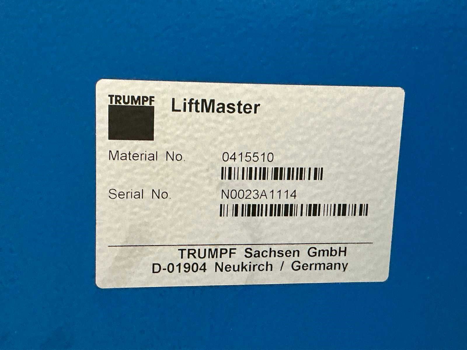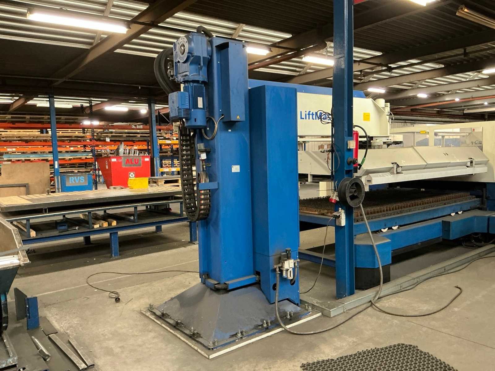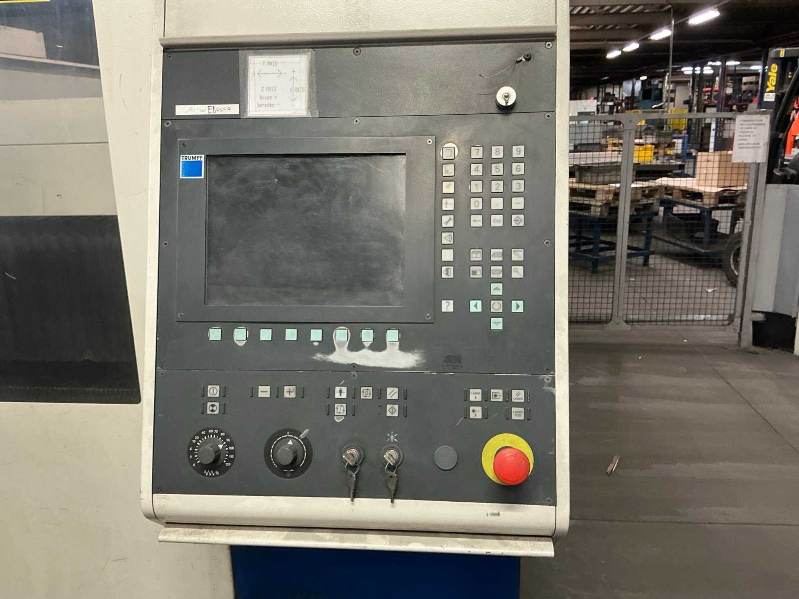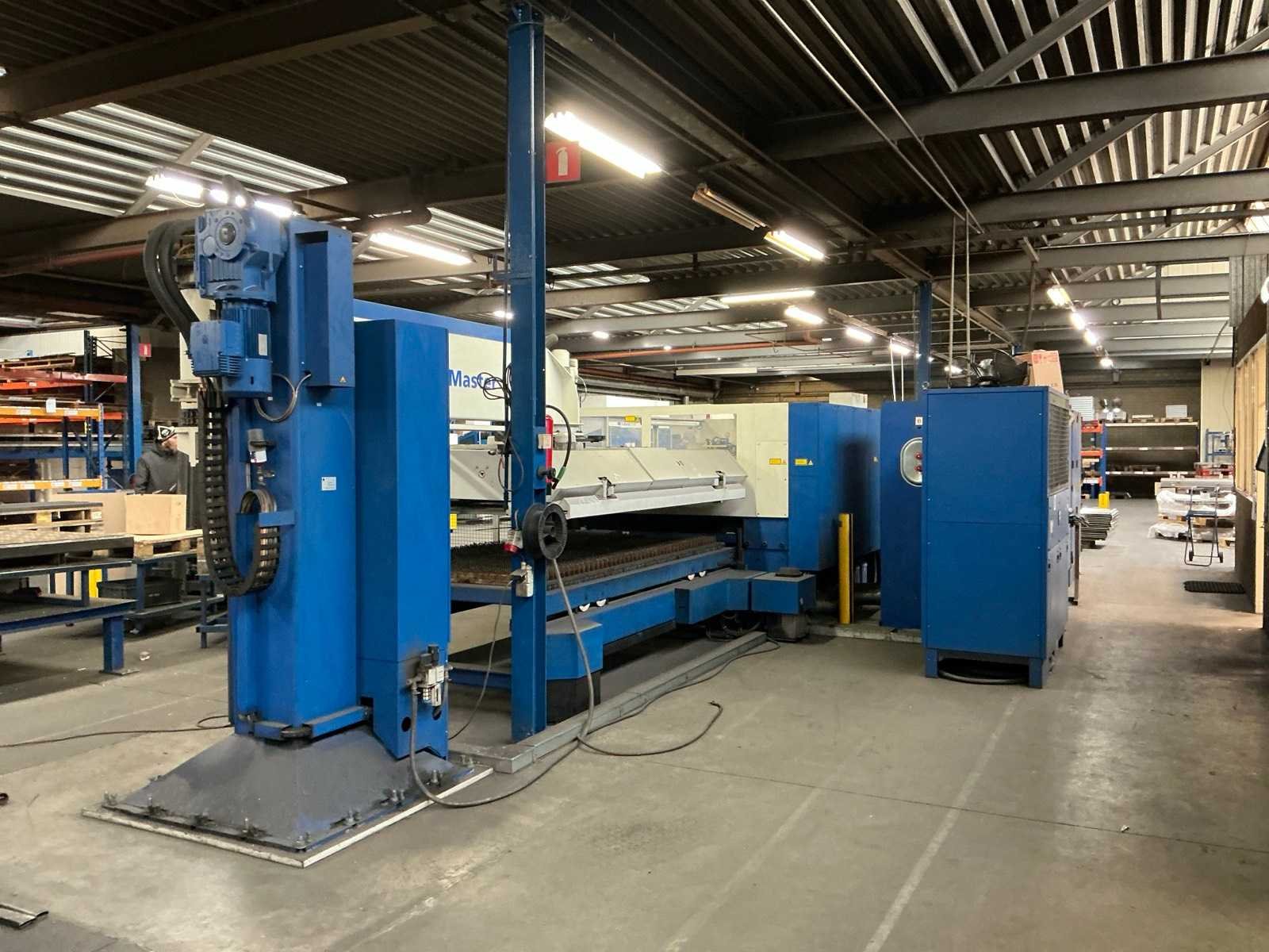 Lasermodule Truflow 4000; aansluitvermogen 88 kVA; maximale dikte staal 20 mm, maximale dikte roestvrij staal 15 mm, maximale dikte aluminium 20 mm, positionering 0,1 mm; Riedel koelunit; Trumpf Liftmaster platenhandler; voorraadtafel voor plaatmateriaal 3100x1650x500 mm; urenstand onbekend. Defect aan scherm, module en koelventilator. Nee Merk: Trumpf Type: Trulaser 3030 Bouwjaar: 2008 Serienummer: A0220A2444 Laservermogen: 4kW Werkbereik x: 3000mm Werkbereik y: 1500mm Werkbereik z: 110mm Snijsnelheid: 140m/min Tafel afmeting l: 3000mm Aansluitwaarde: 160A Aansluiting: 400V Machinegewicht: 12000kg Afmeting l: 3000mm Afmeting b: 8700mm Afmeting h: 2200mm