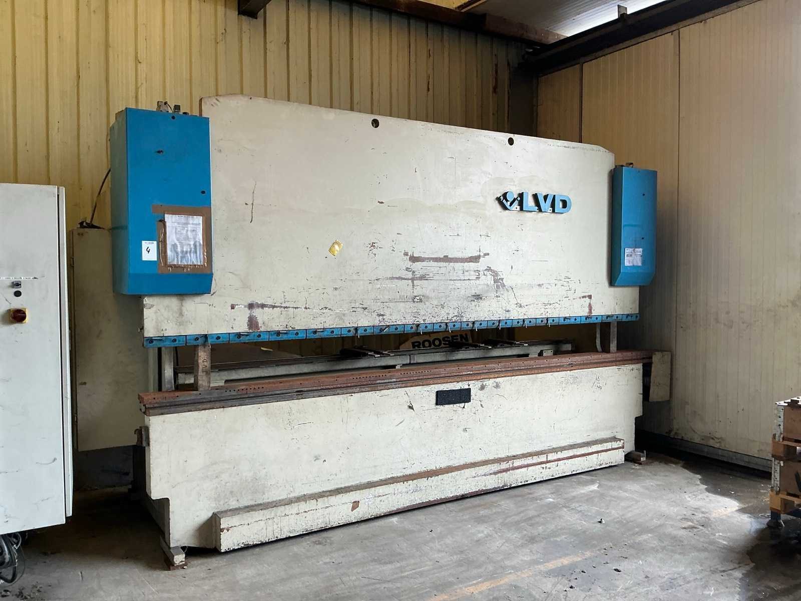 Met 2 pallets diverse toebehoren Nee Merk: LVD Type: PPI 135/42-MNC 95 Bouwjaar: 1994 Capaciteit.: 135t Werklengte: 4200mm Motorvermogen (kW): 14kW Aansluiting: 400V Machinegewicht: 11500kg Afmeting l: 1500mm Afmeting b: 5000mm Afmeting h: 2500mm