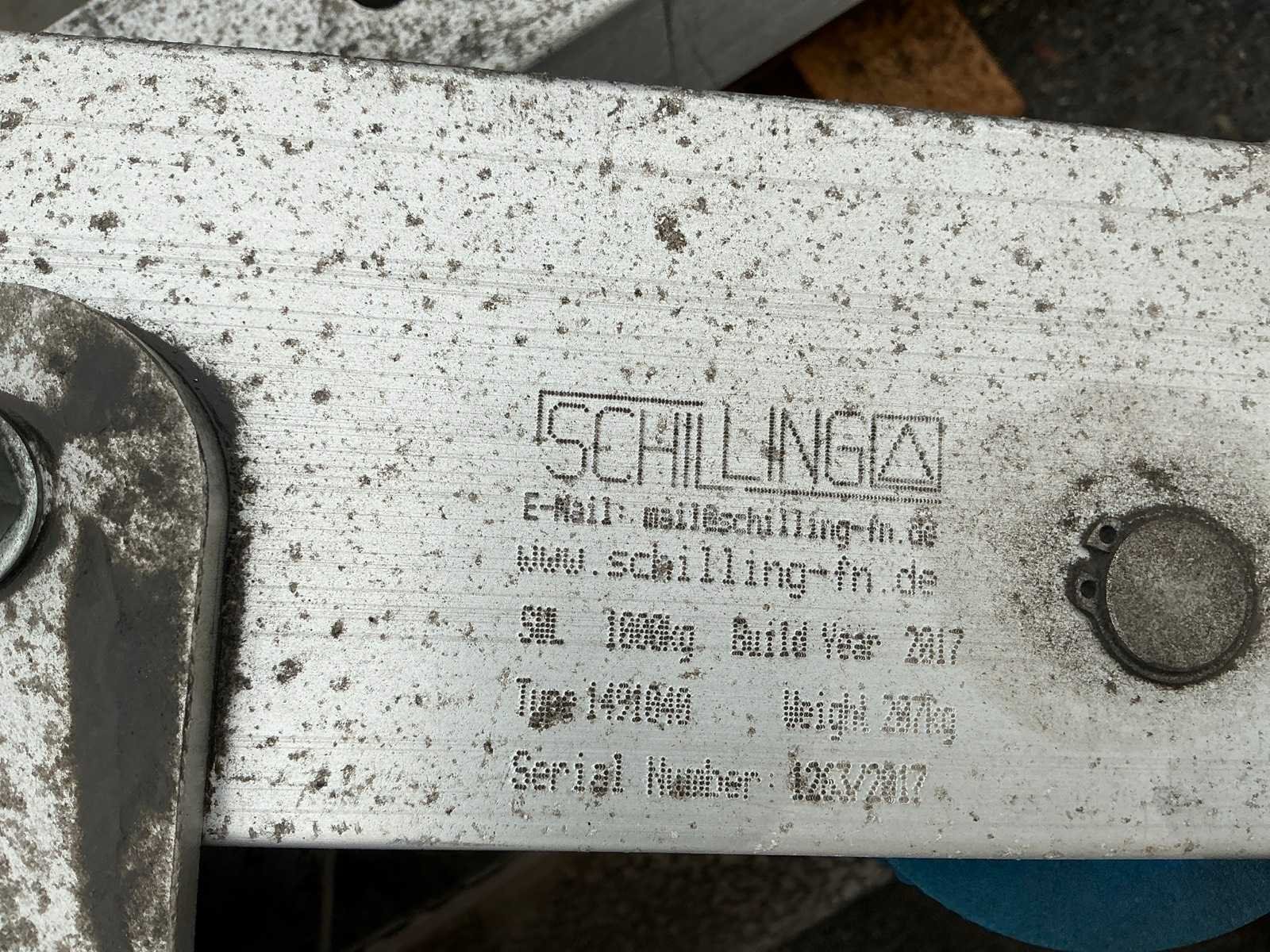 Verrijdbaar; demontabel; duwloopkat; gedemonteerd; Nee Merk: Schilling Bouwjaar: 2017 Overspanning: 4m Hijsvermogen: 1000kg Max. hijshoogte: 3.5m