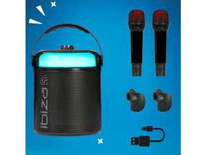 Beschrijving Ontworpen voor je KARAOKE-feesten met zijn 2 oplaadbare draadloze microfoons, is KARAHOME een zeer veelzijdige draagbare speaker. Je kunt het overal gebruiken, het zorgt voor een buzz met zijn verschillende lichteffecten, geluidskwaliteit en gebruiksgemak. • Muziekbronnen: Bluetooth, USB, microSD, AUX en coax • Compatibel met verbonden tv, smartphone, tablet, pc via Bluetooth: Bekijk karaokevideo's via Bluetooth of kabel op je tv, smartphone, tablet, enzovoort. en luister naar het geluid op je KARAHOME • Meerdere lichteffecten • Echo-functie op microfoons en galm • 5 Stemeffecten (Verandert een mannelijke stem in een vrouwelijke stem en omgekeerd, monsterstem, kinderstem en galmeffect). Non