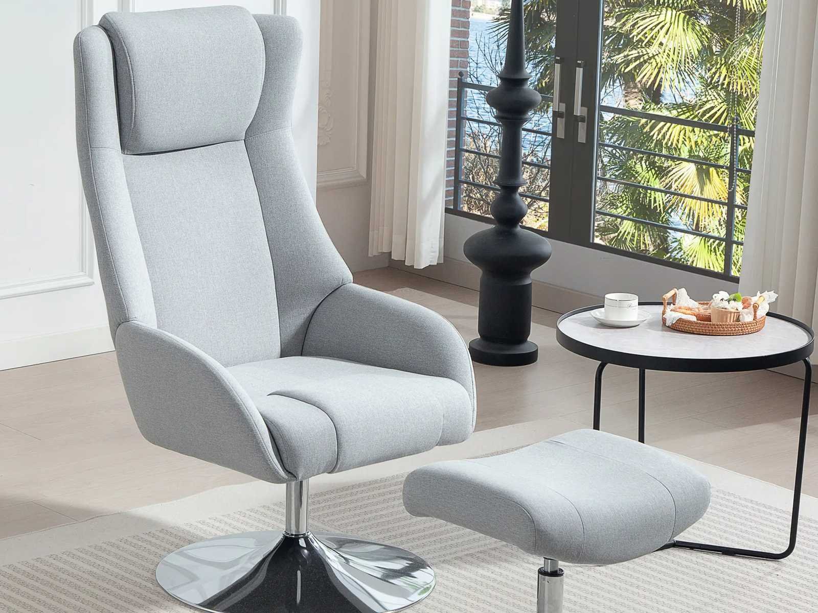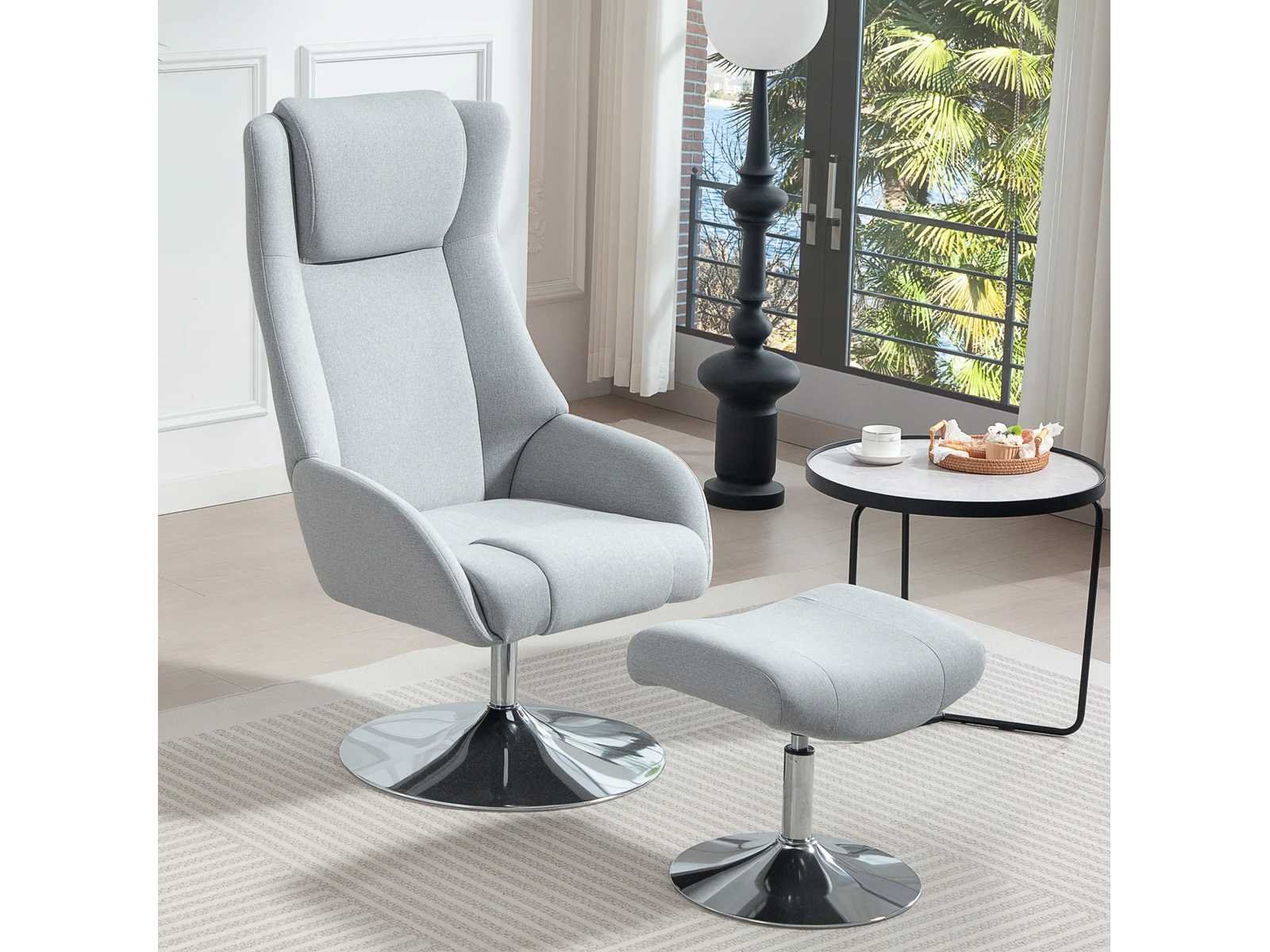 Specificaties: - Kleur: Grijs - Materiaal: Linnen look stof (100% polyester), schuim, metaal - Fauteuilafmetingen: 68B x 84D x 118H cm - Voetsteunafmetingen: 43B x 48D x 44,5H cm - Zitmaat: 51B x 54,5D x 45H cm - Zitdikte: 11 cm - Rugleuningafmetingen: 79B x 63D cm - Armleuningafmetingen: 44B x 6D cm - Hoogte van de armleuningen ten opzichte van de zitting: 16 cm - Laadvermogen: 120 kg Non