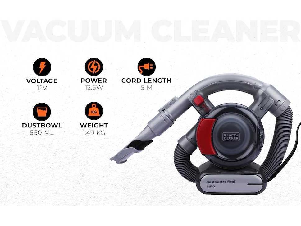 Black+decker zakloze dustbuster handstofzuiger met flexibele slang en 12v autoaansluiting