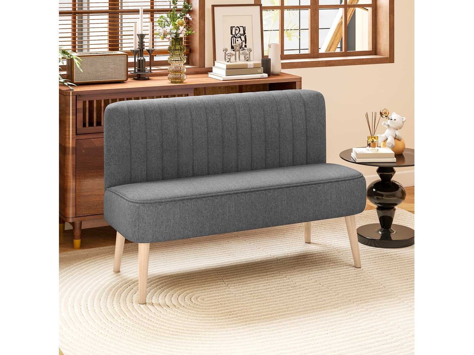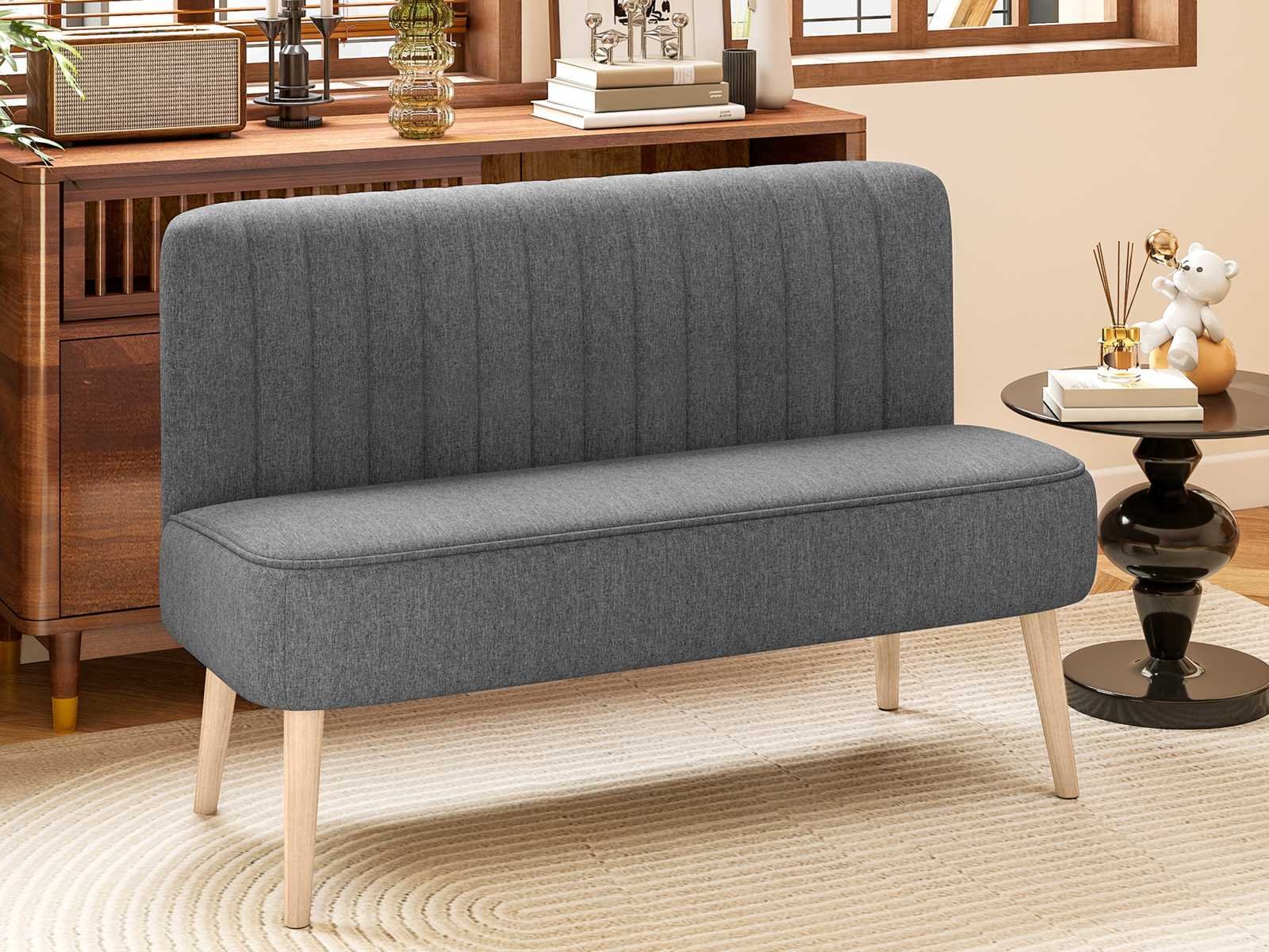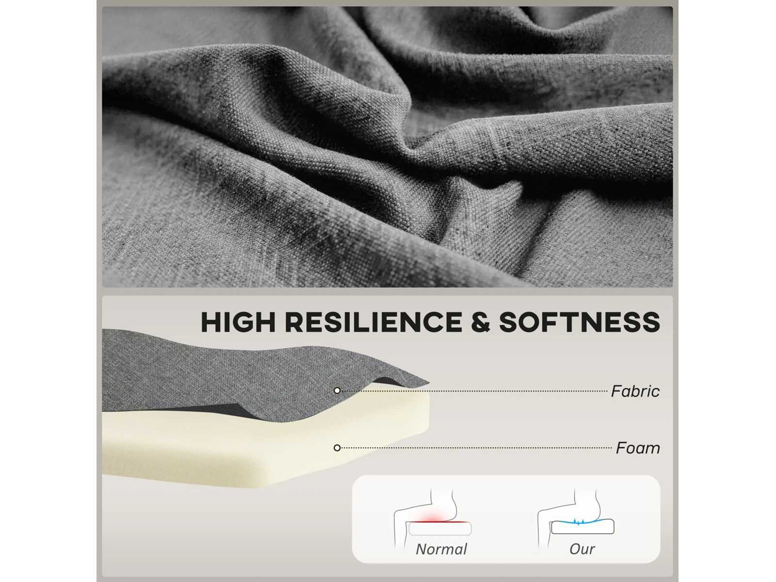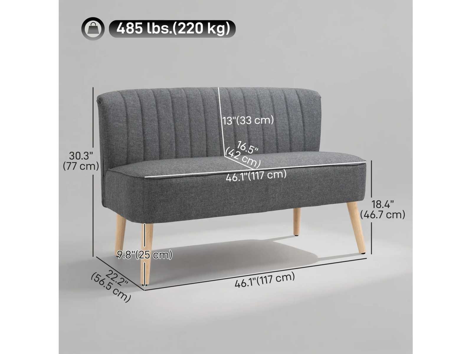 Specificatie: • Kleur: grijs, natuurlijk • Materialen: Linnen (100% polyester), schuim, rubberhout • Totale afmetingen: 46,1"B x 22,2"D x 30,3"H (117 x 56,5 x 77 cm) • Zitafmetingen: 117 cm breed x 42 cm D x 46,7 cm H • Dikte van het zitkussen: 20 cm (7,9") • Rughoogte: 33 cm (13") • Dikte van het rugkussen: 8 cm (3,1") • Beenhoogte: 25 cm (9,8") • Laadvermogen: 330 lbs (150 kg) Non