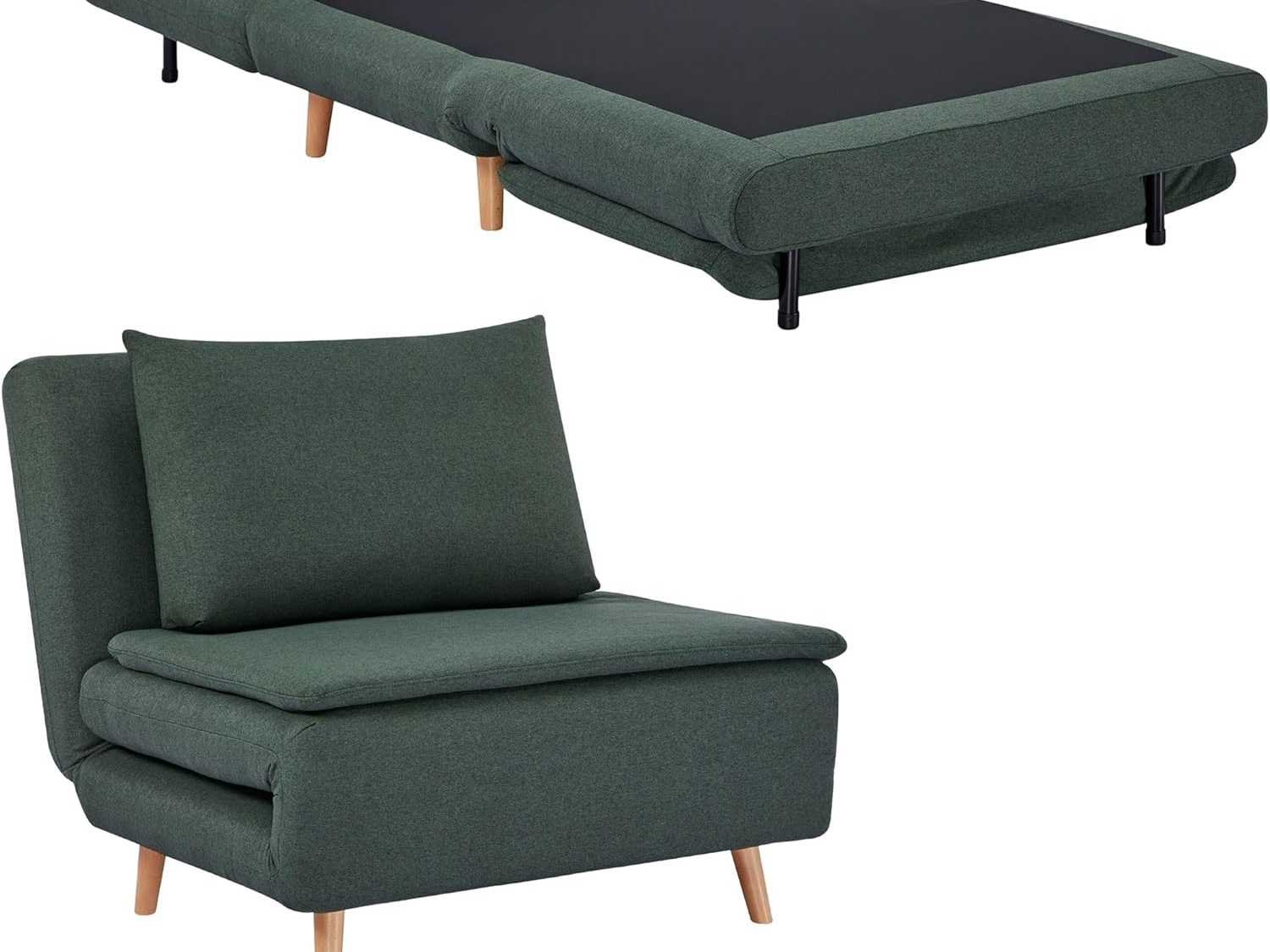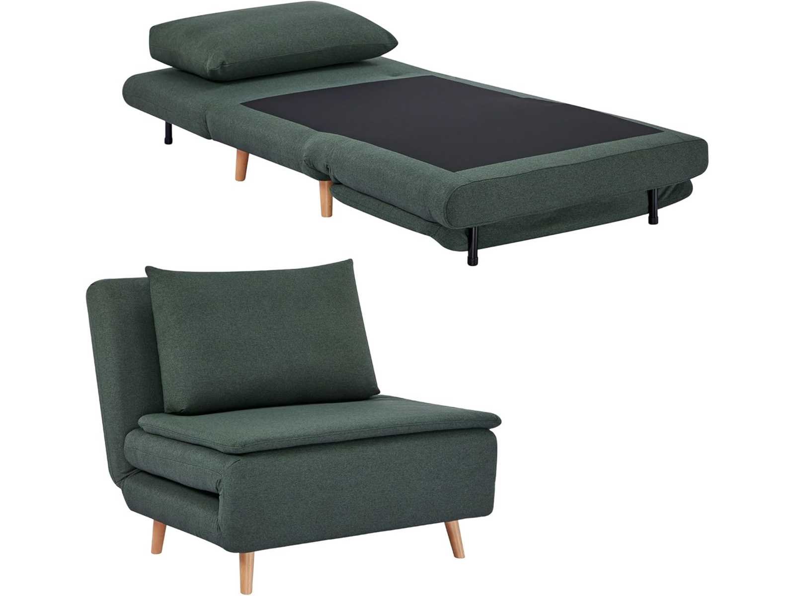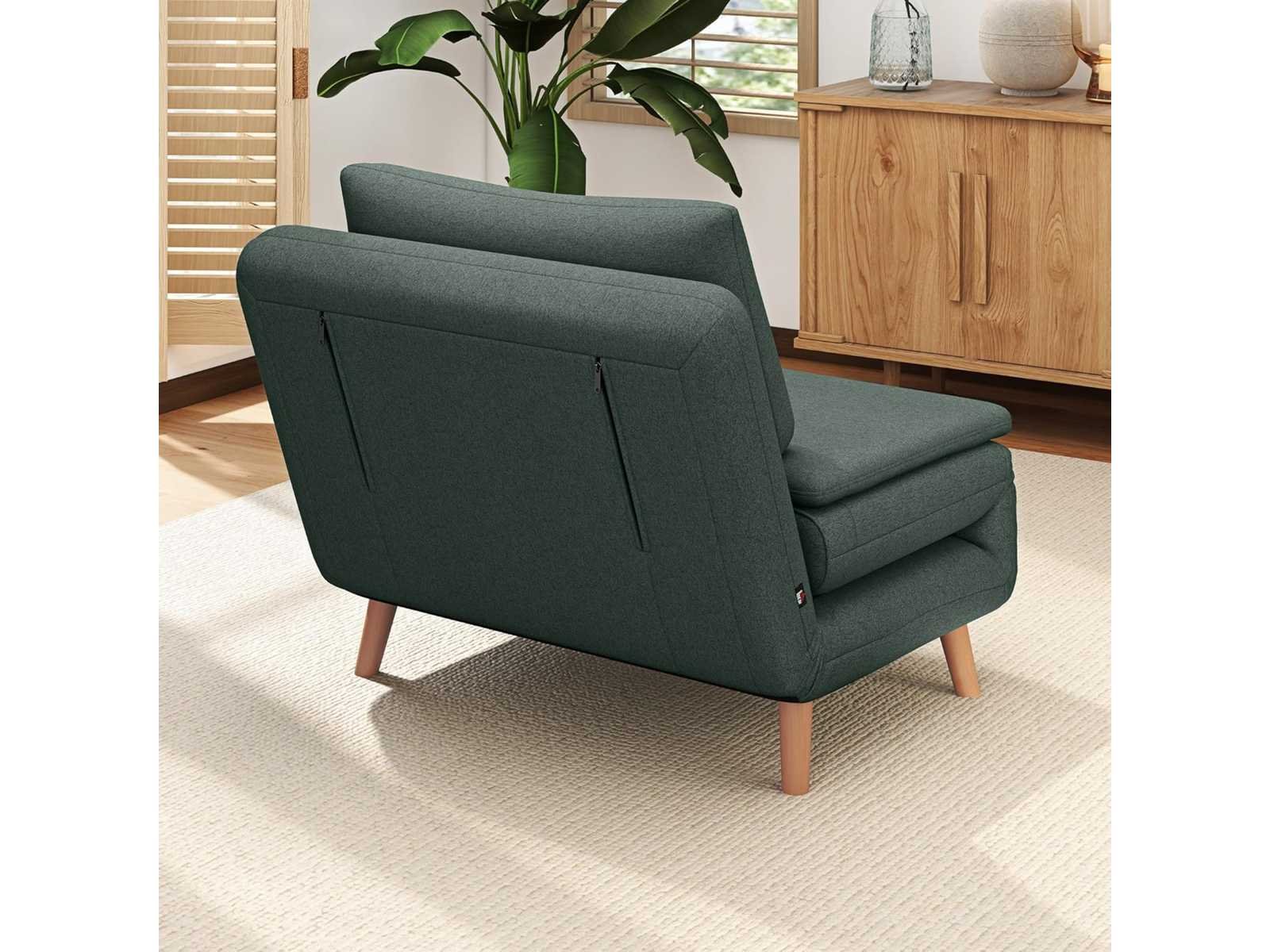 3-IN-1 ONTWERP Deze ombrendebare stoel kan moeiteloos worden omgezet in een comfortabele stoel, chaise longue of uitklapbaar bed met het eenvoudige slaapbanksysteem, ideaal voor kleine appartementen, logeerkamers of werkruimtes. RUIME RUIMTE Gebruikt als een 95 cm brede armloze fauteuil of als ruim bed van 191 x 95 cm, biedt dit fauteuilsbed een comfortabele plek om met opgevouwen benen te zitten of kan omgebouwd worden tot een queensize bed om voorbijgangers te huisvesten. VERSTELBARE RUGLEUNING Kies je voorkeurshouding uit drie standen: volledig plat voor een dutje, licht achterover om te ontspannen, of zittend, ideaal om te werken. ONTSPANNING EN COMFORT Dompel jezelf onder in het comfort van het dubbellaagse kussen van de klapstoel, gevuld met hoogdicht, veerkrachtig schuim en 30 cm dikke vulling bij de zitting en 14 cm bij de rugleuning, bekleed met een ademend jute-achtige stof en afgemaakt met een kussen. ROBUUSTE CONSTRUCTIE Gemaakt met massieve beukenpoten, garandeert dit duurzame fauteuilsbed stabiliteit en veiligheid in het dagelijks leven met een laadcapaciteit tot 120 kg. Non