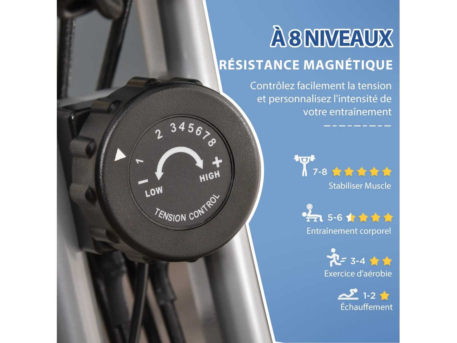Specificaties: - Kleuren: grijs, zilver - Materialen: staal, ABS - Sun. totaal: 105L x 48B x 118H cm - Sun. opgevouwen: 50L x 48I x 135H cm - Sun. Zadel: 27L x 23B x 73-90H cm - Sun. Rugleuning: 23L x 20W cm - Sun. LCD-scherm: 21L x 15,5l cm - Armleuninghoogte: 115 cm (tot aan de vloer) - Sun. Pedalen: 12L x 9L cm - Buisframe ø: 3,8 cm - Vliegwiel: 2,5 kg - Benodigde batterijen: 2 x AAA, niet inbegrepen - CE-EMC, RoHS, EN20957-1-5 certificeringen - Aanbevolen maximale belasting: 120 kg Non