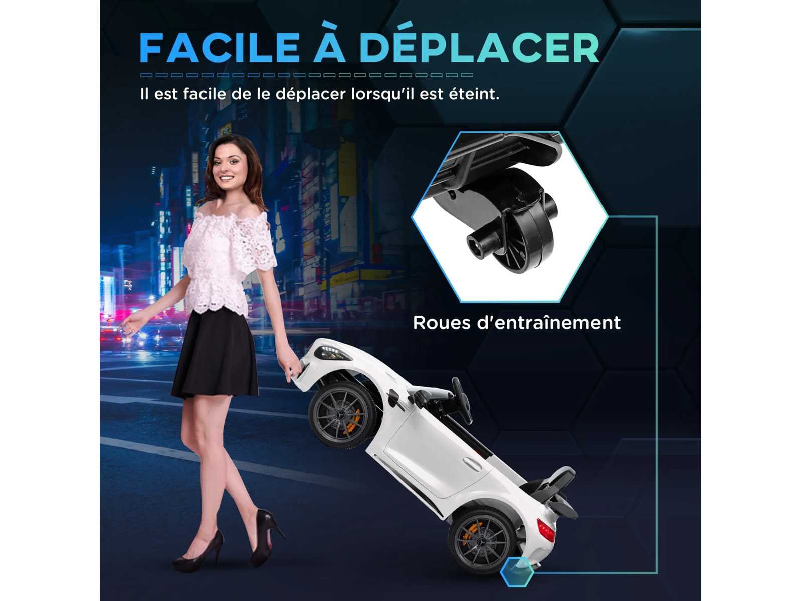 - Het 12V Mercedes-Benz AMG GTR-rijbewijs garandeert een authentieke rijervaring - Langzaam startmechanisme verbetert de veiligheid voor jonge bestuurders - Hulpwielen voor stabiele beweging zonder kracht - Uitgerust met koplampen, achterlichten, claxon en muziek voor realistische gameplay - Biedt handgeschakelde en op afstand bestuurbare rijopties - Rijdt 50 minuten op verschillende ondergronden zoals asfalt en baksteen - Uitgerust met een veiligheidsgordel en een krachtdisplay voor veilig plezier - Montage vereist Specificaties: - Kleur: wit - Materialen: polypropyleen, metaal - Sun. totaal: 108L x 67B x 46H cm - Sun. Zitplaats: 32B x 19,5D cm - Zithoogte: 14 cm (vanaf de vloer) - Afstandsbediening: 25 m - Wieldiameter: 21 cm - Snelheid: 3-5 km/u - Batterij: 12V 4,5AH - Motor: 2 x 12V - Oplaadtijd: 8-10 uur (eerste), 8-12 uur (regulier) - Autonomie: 50 min - Aanbevolen maximale belasting: 25 kg - Gecertificeerde leeftijd: 3-6 jaar oud - Aanbevolen leeftijd: 3-6 jaar Non