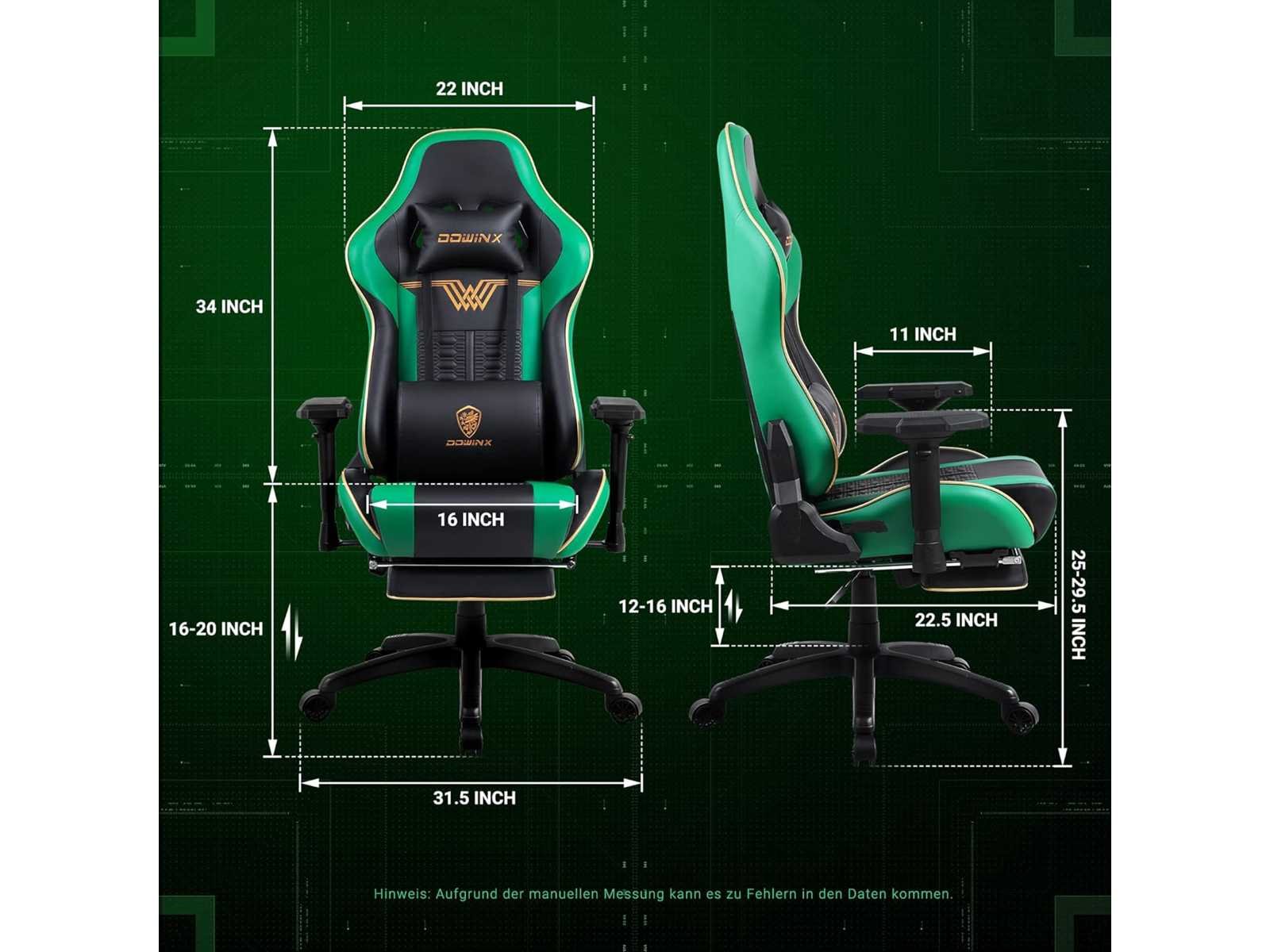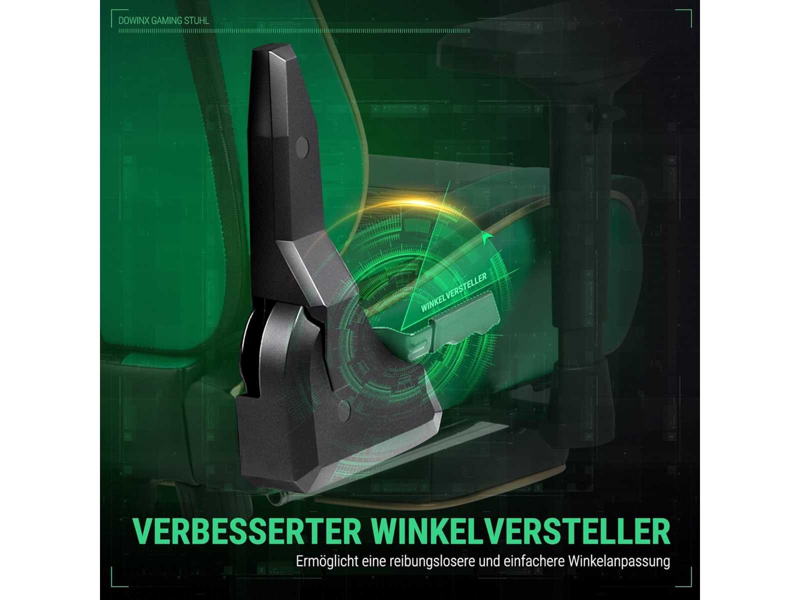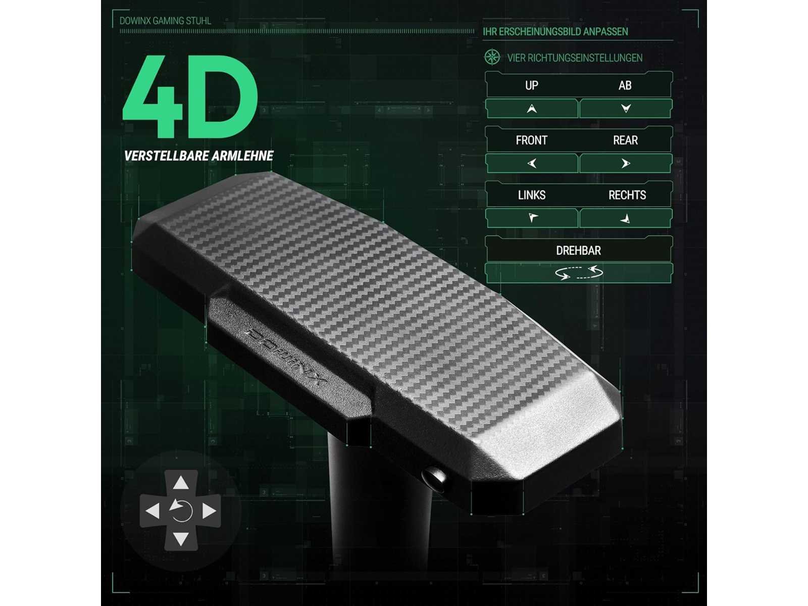 Stof die ademt! Het uiterlijk van deze Dowinx gamingstoel is geïnspireerd op raceauto's. Het gebruikt de modernste "technische stof" in de industrie, die 50% meer luchtdoorlaatbaarheid biedt dan gewone PU. Het creëert niet alleen visueel een zeer sportieve sfeer, maar ook met de gamingstoel duik je meteen als je gaat zitten. Met unieke 4D-armleuningen bieden de 4D-armleuningen optimale armsteun terwijl je jezelf onderdompelt in onze gamingstoel. Niet alleen kunnen de hoogte en hoek van de armleuning vrij worden versteld, maar ook de positie van voren, achteren, links en rechts kan worden aangepast. Dit betekent dat je gemakkelijk de meest comfortabele houding kunt vinden, zodat je armen perfect worden ondersteund, vermoeidheid vermindert en je game-ervaring verbetert. [Functionaliteit voorbij industriestandaarden] De slaapfunctie is tot 165° en het vergrendelingsbereik is 90° tot 115°. De gascilinder is veilig met de hoogste kwaliteit klasse 4 in de branche. Onze kussens zijn gemaakt van hoogwaardig polyurethaanschuim dat zich aanpast aan de contouren van je lichaam voor optimaal comfort bij elk gebruik. Zelfs na een lange zittijd behoudt het kussen zijn vorm, zodat je nog steeds comfortabel zit. [Blijf verbeteren] Kantelen is mogelijk op de meeste gamingstoelen, maar we gebruiken preciezere en dichtere tanden op de tandwielen; als je het kantelmechanisme (tot 170°) gebruikt om ontspannen te liggen, voel je nauwelijks een trilling van de tandwielen, je zit in het midden. Het is alsof ze niet bestaan. Non