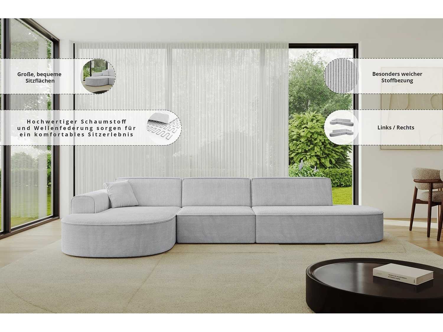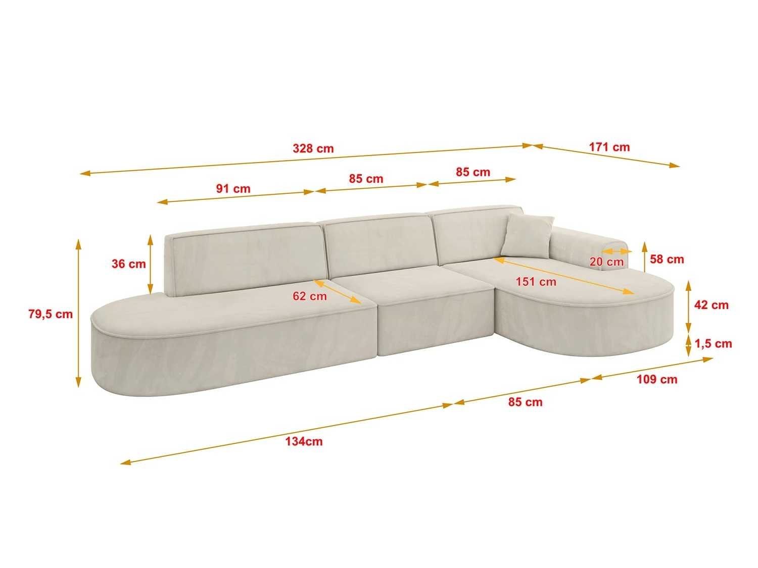 Fluwelen relatie Kleur Beige - Paros 01 Ottomaanse rechte positioneringsoptie Beschrijving van de stof PAROS is een zeer zachte bekledingsstof die aangenaam aanvoelt. (50.000 Martindale-cycli) 100% PES, lage pilling (4-5), wrijvingbestendig (4-5), lichtvastheid (6/7), gewicht 260 g/m² ±5% Materiaalsamenstelling 100% polyester Pillingweerstand 5 Schuurbestendigheid 5 slijtbestendigheid: 50.000 Martindale-cycli Uitrustingskussen Woonkamer diepte 171 cm Breedte 328 cm Hoogte: 79,5 cm Aantal plaatsen 4 zitvulling Wave veer + HR35 en T30 schuim Rugkussentype Vaste rug Aantal zitkussens 3 Aantal decoratieve kussens 1 armleuningbreedte 20 cm Armleuninghoogte 58 cm Breedte van de pouf 109 cm Ottomaanse Rijk Diepte 151 cm Zitdiepte: 62 cm Zithoogte 43,5 cm Slaapfunctie zonder slaapfunctie Non