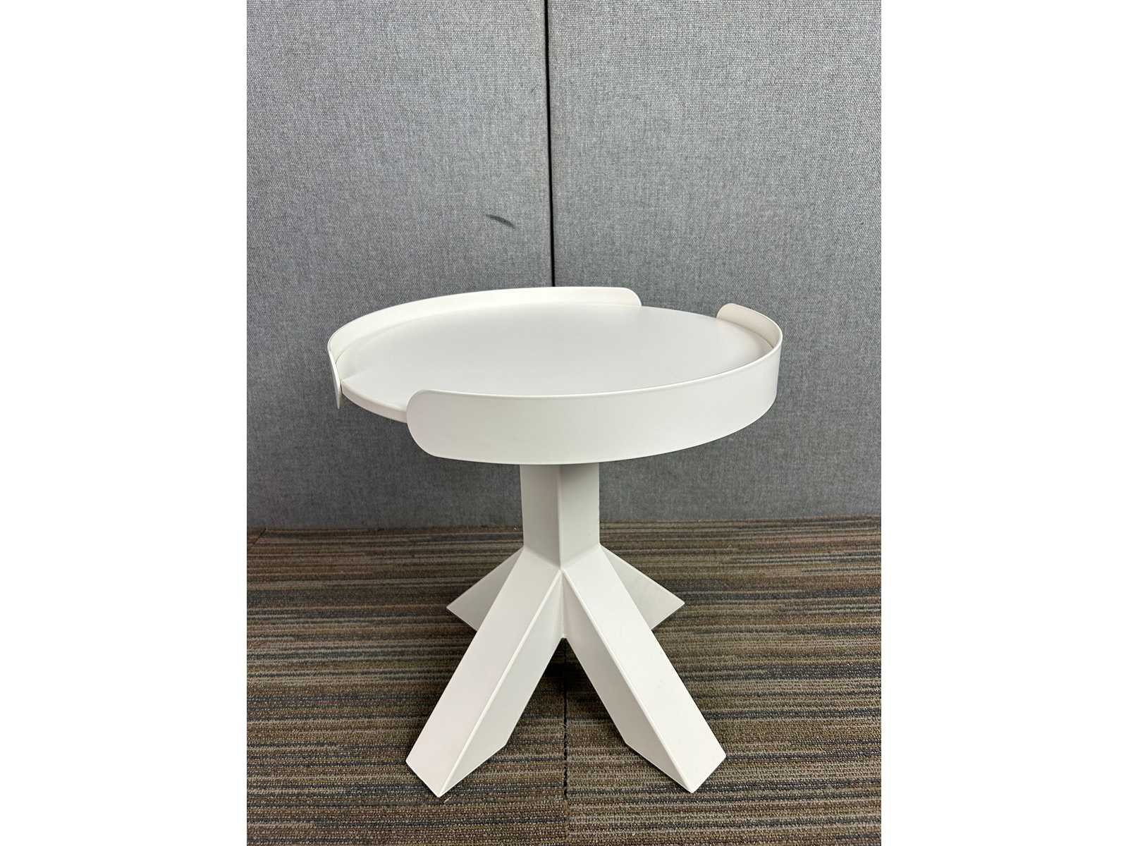 Merk: GISPEN Model / Gamma: Dukdalf Solid as a rock Nieuw / 2de Hands: 2de Hands Staat vh product: **** (Nieuwstaat) Soort detail: Bijzettafel Vorm: Rond Kleur blad: Wit Materiaal blad: Melamine Onderstel: Wit metaal Breedte in cm: 51cm Diepte in cm: 51cm Hoogte in cm: 50cm Geïnspireerd door de stevige houten aanlegsteigers waar boten aanmeren, toont deze tafel robuuste poten die een robuuste charme toevoegen, prachtig in balans met het slanke ontwerp van het tafelblad. De doordachte constructie maakt het een veelzijdige aanvulling op elke omgeving en biedt zowel stijl als functionaliteit. De Dukdalf bijzettafel completeert dit ontwerp met zijn gedurfde karakter, met een afneembare stalen rand die voorwerpen op hun plaats houdt en poten die zijn uitgerust met stelvoetjes voor stabiliteit op oneffen oppervlakken. Deze combinatie van functionaliteit en elegantie maakt de Dukdalf tafel een ideale keuze voor uw huis of kantoor. Nee Merk: GISPEN Model: Dukdalf Solid as a rock (H51) Kleur: wit Gewicht: 8kg Lengte: 51cm Breedte: 51cm Hoogte: 50cm
