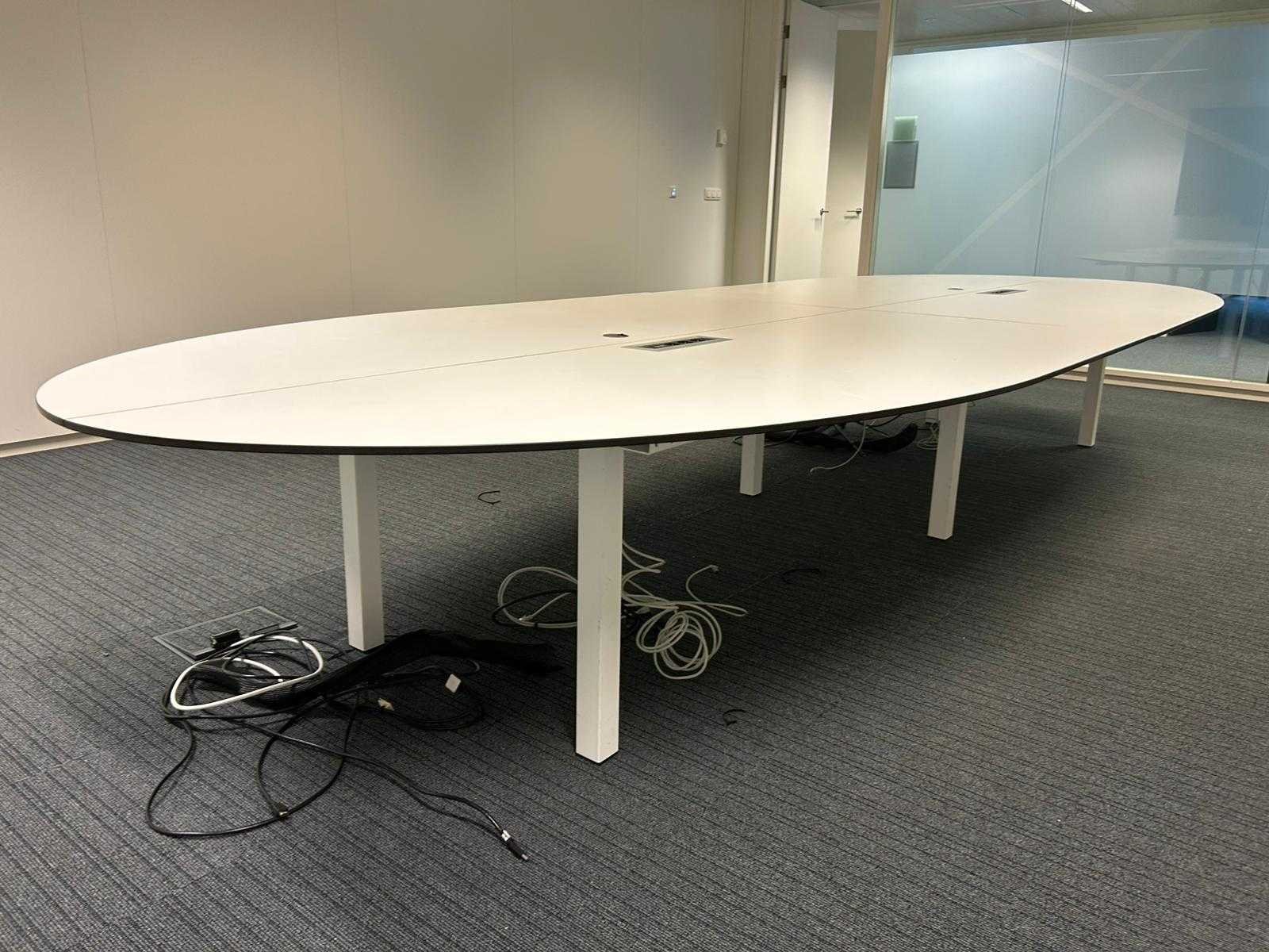 Merk: PAMI Nieuw / 2de Hands: 2de Hands Staat vh product: *** (Zeer lichte gebruikssporen) Soort detail: Vergadertafel Vorm: Ovaal Kleur blad: Wit Materiaal blad: HPL Onderstel: Metaal Kabeldoorvoer: Ja Stroomaansluiting: Ja Breedte in cm: 500cm Diepte in cm: 180cm Hoogte in cm: 73cm Pami ovale vergadertafel Pami ovale vergadertafel in het wit, voorzien van 2 kabeldoorvoeren voor nette aansluiting van stroom en data. Ruim, stevig en functioneel ontwerp, ideaal voor vergaderingen, conferenties of samenwerkingsruimtes in kantooromgevingen. - Opmerkingen: Met enkele gebruikssporen Nee Merk: PAMI Type: Vergadertafel Model: Ovaal Kleur: wit Lengte: 500cm Breedte: 180cm Hoogte: 73cm Materiaal: HPL