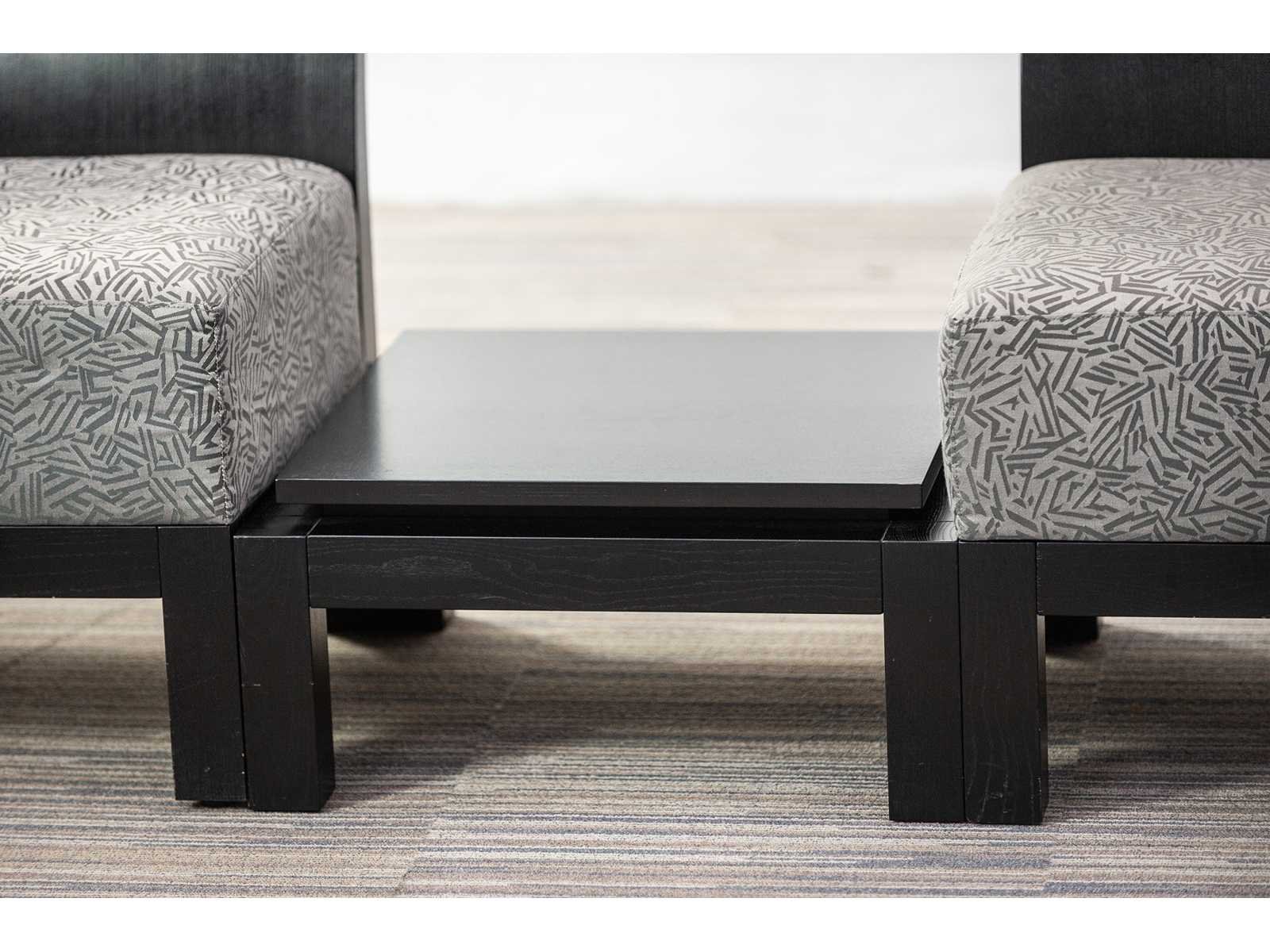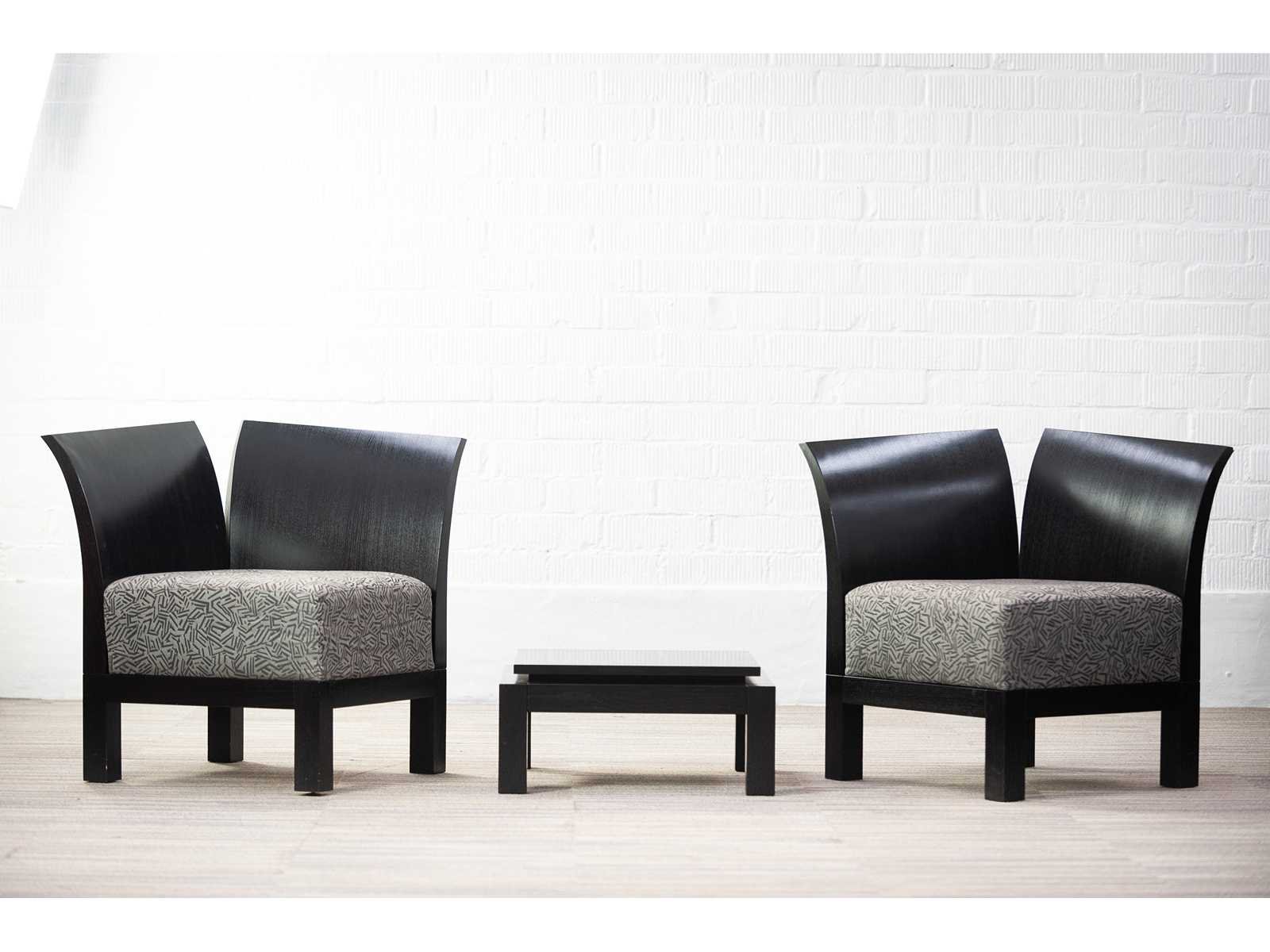 Thonet Lounge Series Model 6001 set uit twee lounge chairs en een lage tafel De Thonet Lounge Series Model 6001 is een elegante set die bestaat uit twee lounge chairs en een lage tafel, ontworpen met een focus op comfort en stijl. De stoelen zijn vervaardigd uit hoogwaardige materialen, met een verfijnde stoffering in combinatie met zwart houten accenten die het geheel een tijdloze, moderne uitstraling geven. Het lage tafelblad in zwart hout biedt een perfecte aanvulling op de stoelen en maakt de set tot een veelzijdig meubel voor zowel woonkamers als zakelijke ruimtes. Het gestroomlijnde ontwerp en de rijke materialen maken de Lounge Series Model 6001 een statement van verfijning. - Extra info: design by Wolf Schneider & Ulrich Böhme (productie tussen 1987 en 1999). 1 zit-module is B70xD65xH78cm en de tafel is B58xD58xH28cm - Opmerkingen: Goede staat, kleine inkepingen aanwezig (1 op de tafel en 1 aan een hoek van een zetel). Nee Merk: THONET Model: 6110 Lengte: 200cm Hoogte: 78cm Diepte: 70 Zithoogte: 45 Materiaal: stof/hout