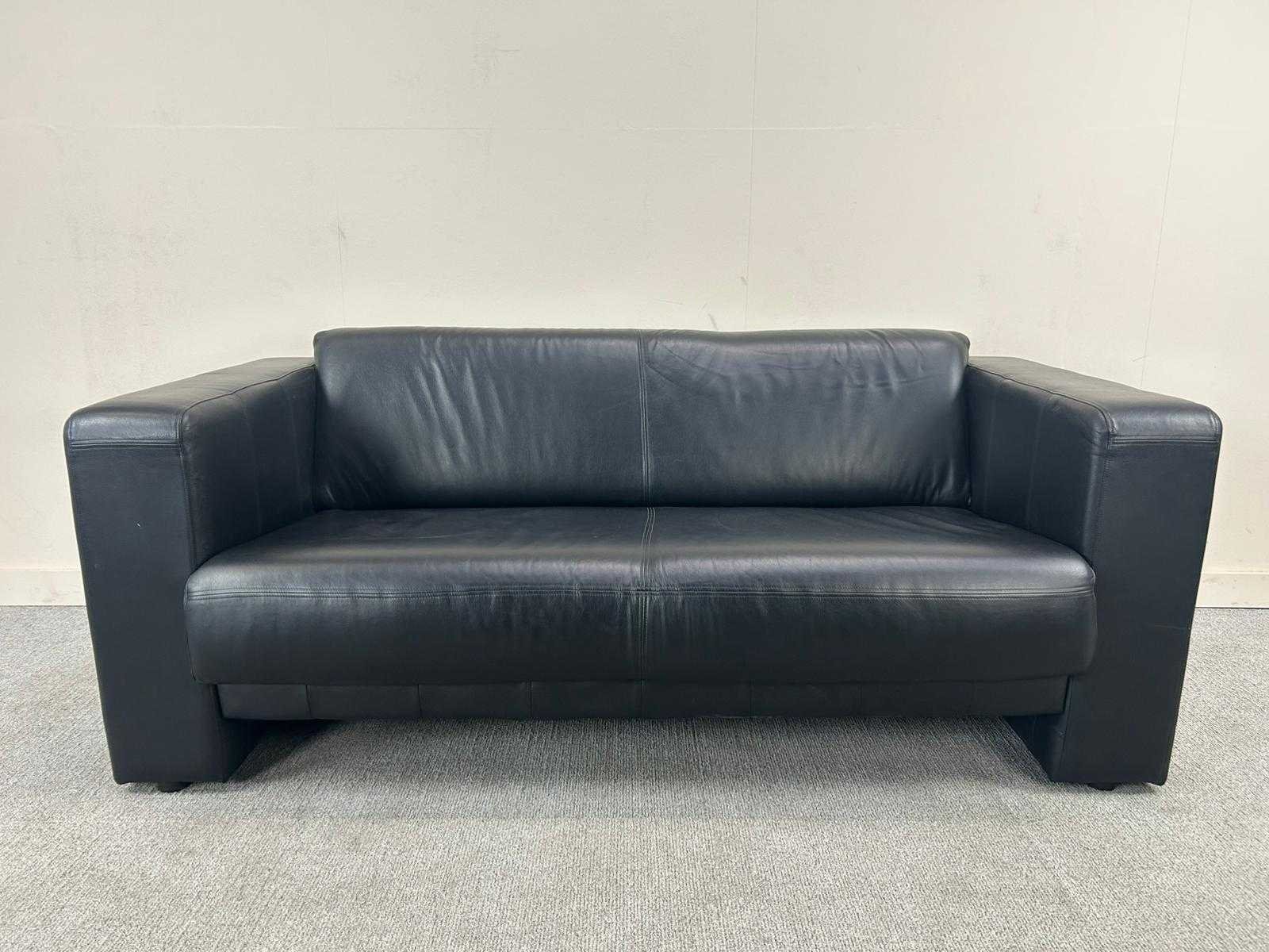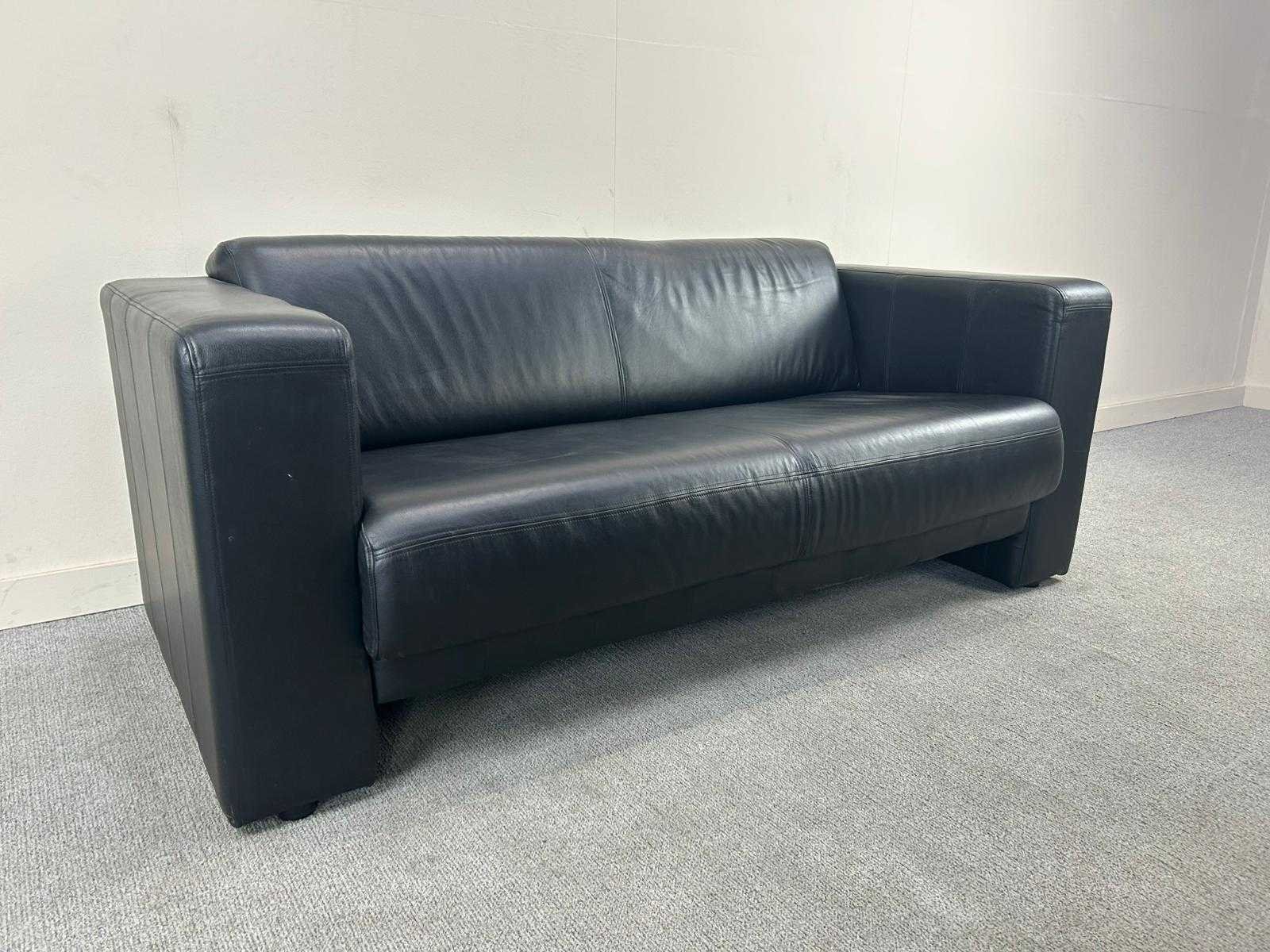 Comfortabele tweezits sofa in zwart leder met strakke, tijdloze vormgeving. Voorzien van brede armleuningen en een stevige zit, geschikt voor ontvangstruimtes, wachtruimtes of kantooromgevingen. Gebruikte staat met normale gebruikssporen. Nee Merk: Leder Lengte: 180cm Breedte: 85cm Hoogte: 65cm Materiaal: kunstleer
