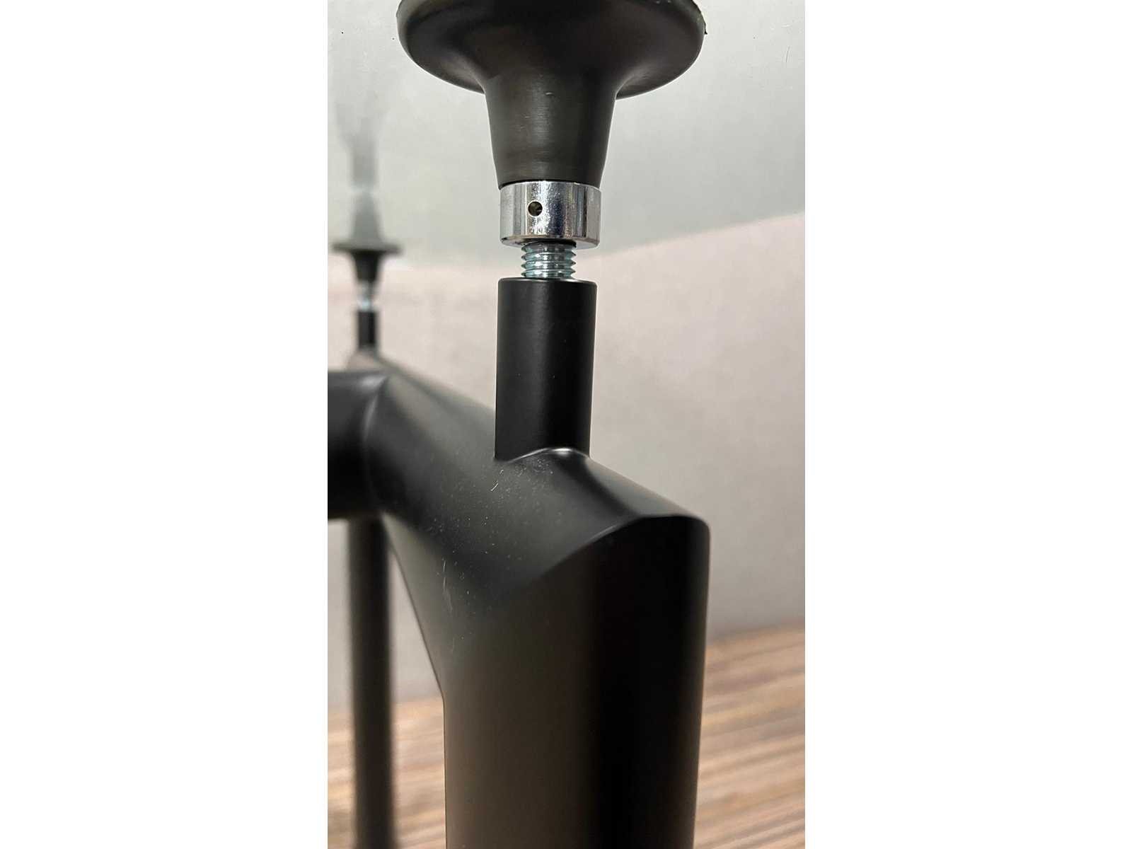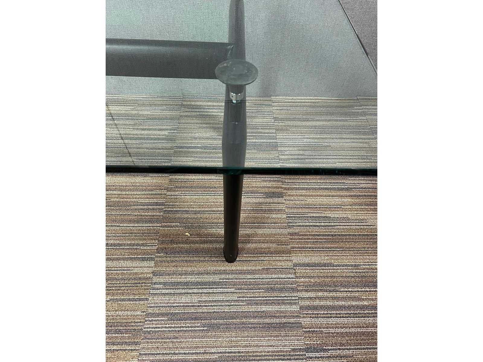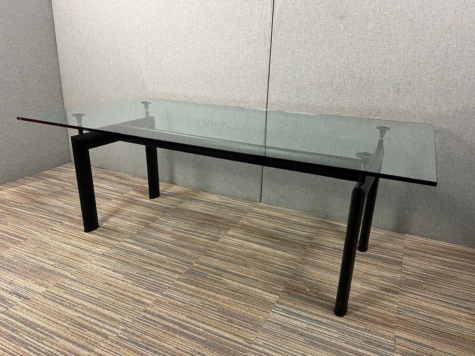 Mooie Vintage Eettafel in de Stijl van Le Corbusier, geen originele Cassina! Glazen blad met zwart metalen onderstel Nee Model: Tube D Avion Gewicht: 75kg Lengte: 200cm Breedte: 100cm Hoogte: 72cm Materiaal: glas
