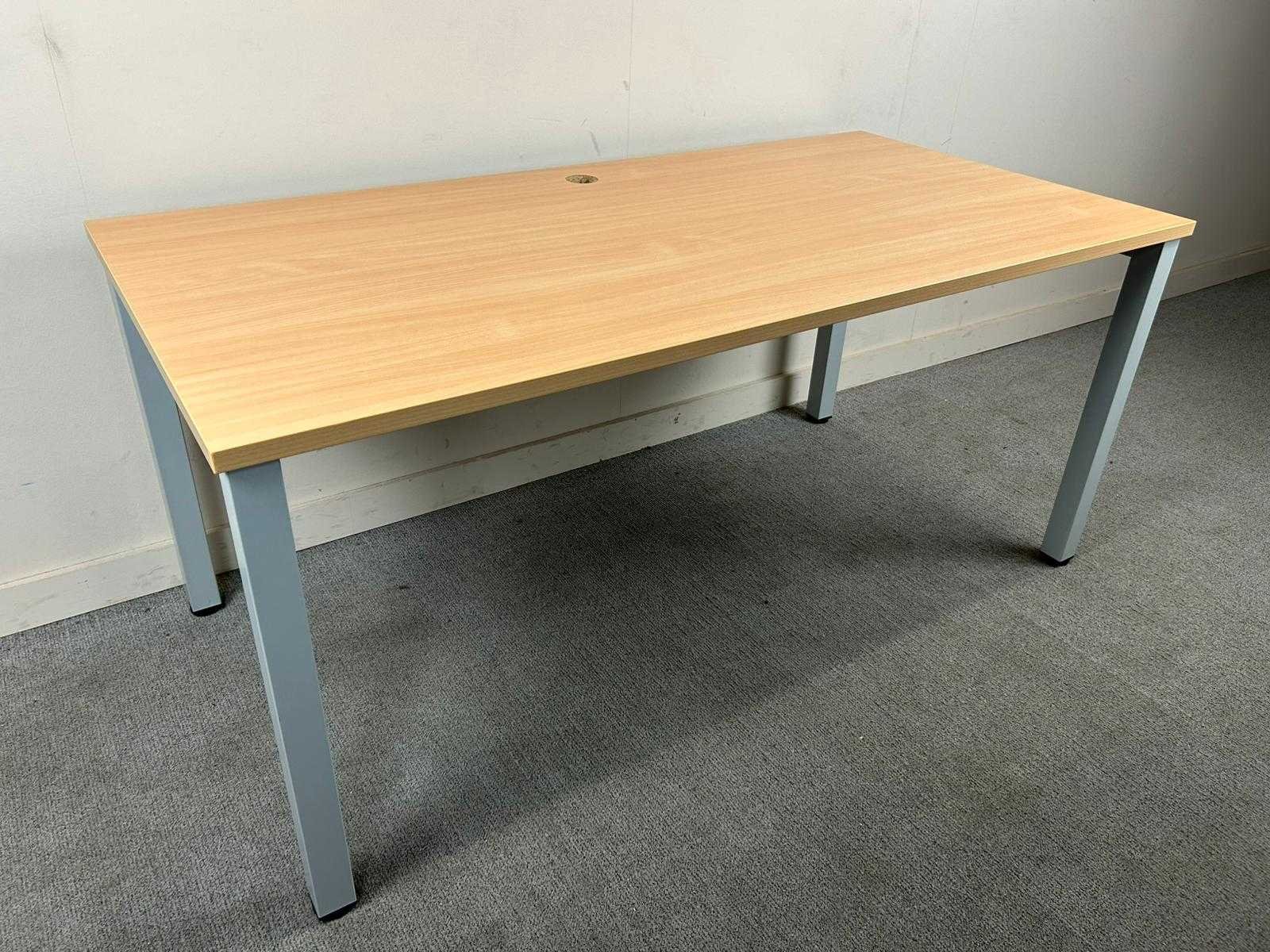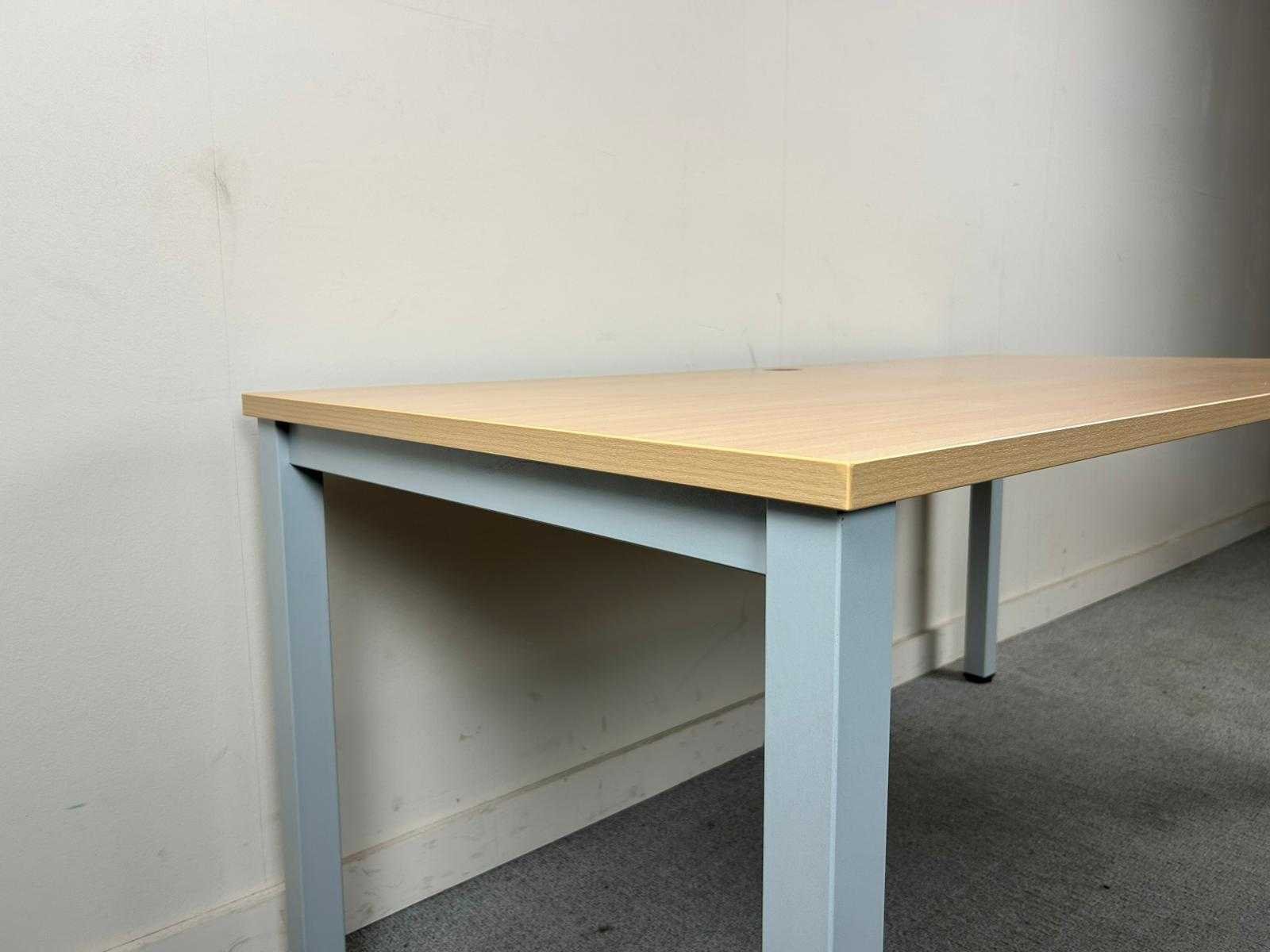 Bureautafel Bureautafel met een houtkleurig melamine blad van 160 × 80 cm, voorzien van één kabelgoot voor nette kabelgeleiding. Uitgevoerd met een stevig metalen vierpoot, praktisch en duurzaam voor dagelijks gebruik. Ideaal voor kantoor- of thuiswerkplekken. Nee Kleur: esdoorn Gewicht: 30kg Breedte: 160cm Hoogte: 74cm Materiaal: melamine Diepte: 80cm