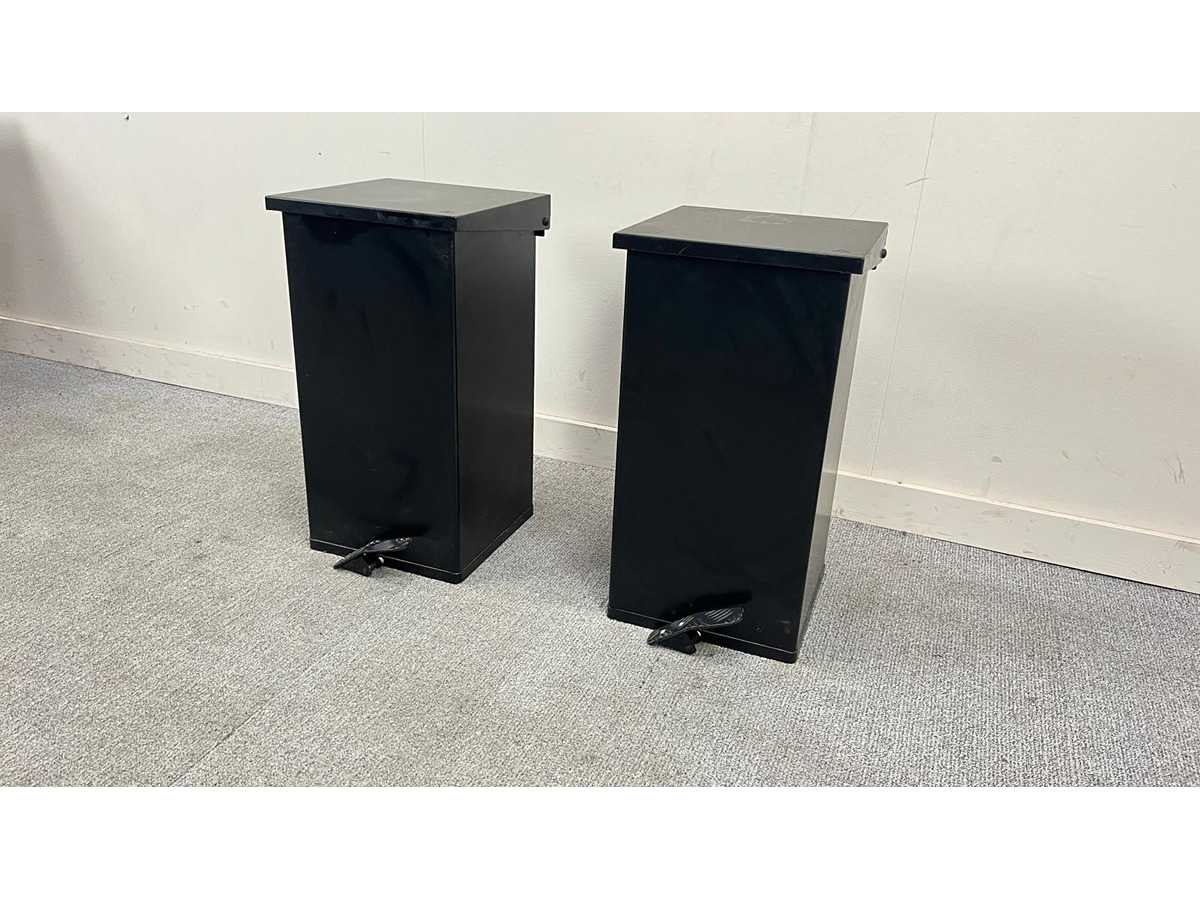 Set van 4 identieke pedaalemmers in zwart gelakt metaal. Voorzien van een stevig voetpedaal waarmee het deksel hygiënisch geopend kan worden. De emmers hebben een strakke, rechthoekige vorm en zijn geschikt voor gebruik in kantoor, keuken of sanitaire ruimte. Nee Kleur: zwart Gewicht: 2kg Lengte: 32cm Breedte: 32cm Hoogte: 60cm Materiaal: metaal