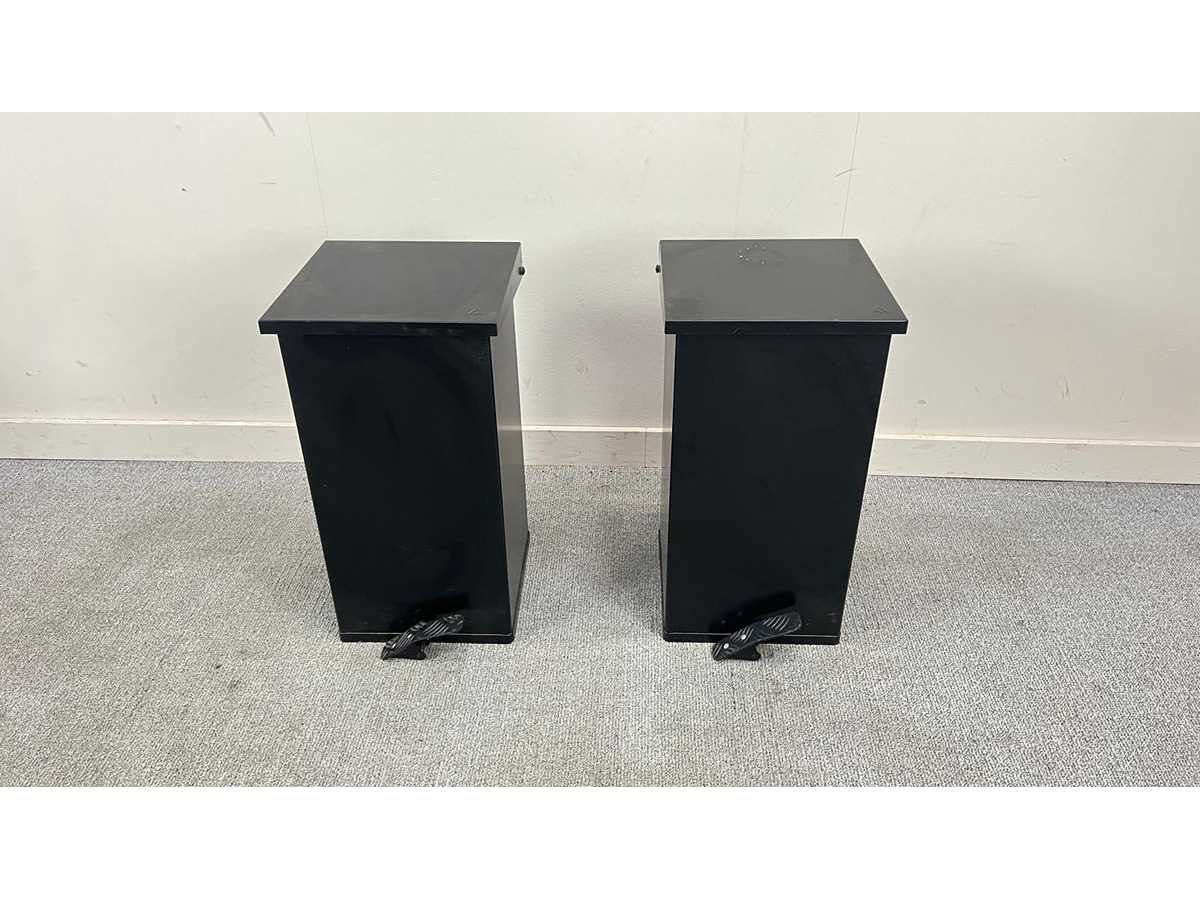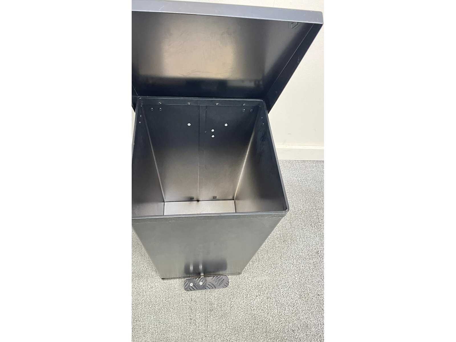 Set van 4 identieke pedaalemmers in zwart gelakt metaal. Voorzien van een stevig voetpedaal waarmee het deksel hygiënisch geopend kan worden. De emmers hebben een strakke, rechthoekige vorm en zijn geschikt voor gebruik in kantoor, keuken of sanitaire ruimte. Nee Kleur: zwart Gewicht: 2kg Lengte: 32cm Breedte: 32cm Hoogte: 60cm Materiaal: metaal