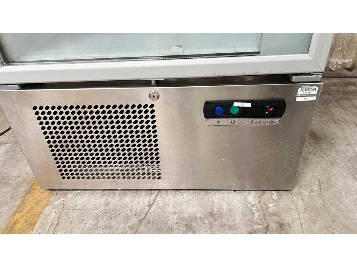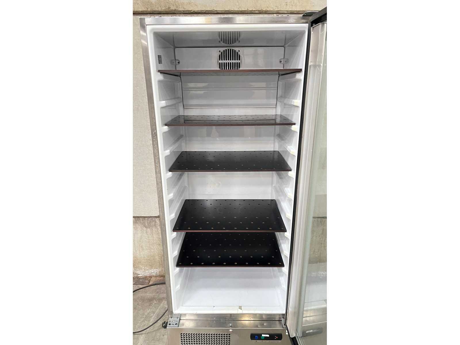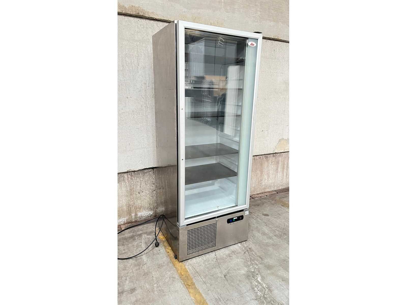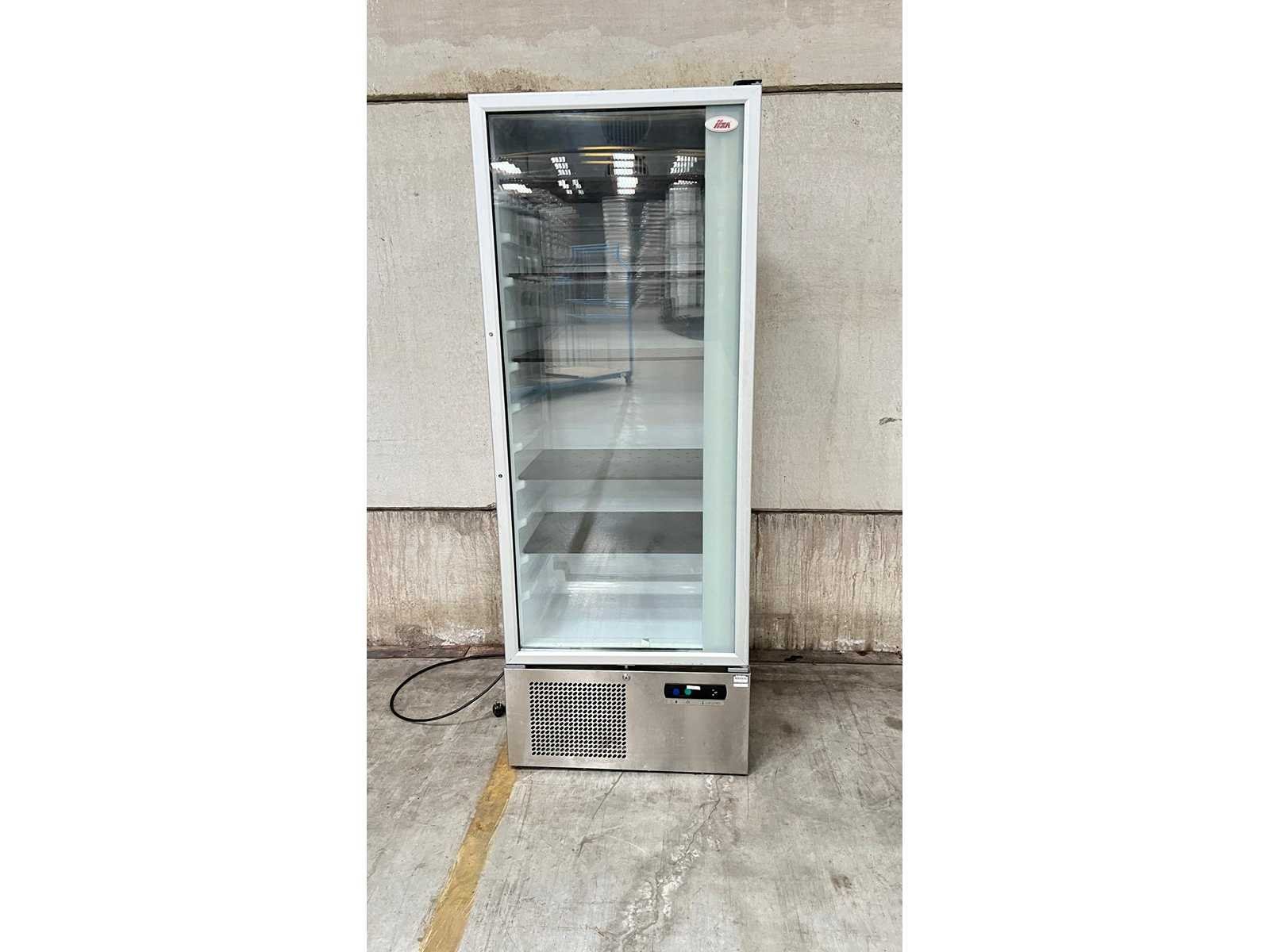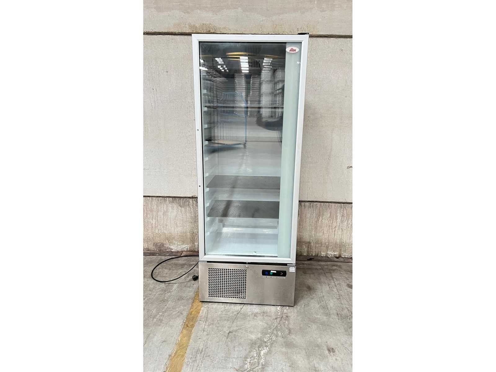 ILSA Professionele Koelkast met Glazen Deur – Model AS051001 Professionele staande koelkast met glazen deur van het merk ISA, geschikt voor horeca, bakkerij of retailtoepassingen. Ideaal voor het gekoeld presenteren van dranken of voedingswaren. De koelkast is voorzien van meerdere verstelbare legplateaus en een ventilatiesysteem bovenaan voor gelijkmatige koeling. Onderaan bevindt zich het bedieningspaneel en de compressorunit. Technische gegevens (volgens typeplaatje) Merk: ILSA Code: AS051001 Serienummer: 1328.0110 Aansluiting: 230 V – 50 Hz Koelmiddel: R404A (0,180 kg) Kenmerken Glazen draaideur Binnenverlichting Meerdere legplateaus Onderbouw compressor Professionele uitvoering Toepassing Geschikt voor gekoelde presentatie in horeca, winkel of cateringomgeving. Staat Normale gebruikssporen conform professioneel gebruik. Wordt verkocht in huidige staat zoals afgebeeld. Nee Merk: ILSA Type: Vitrinekoelkast Lengte: 70 Hoogte: 185 Breedte: 61
