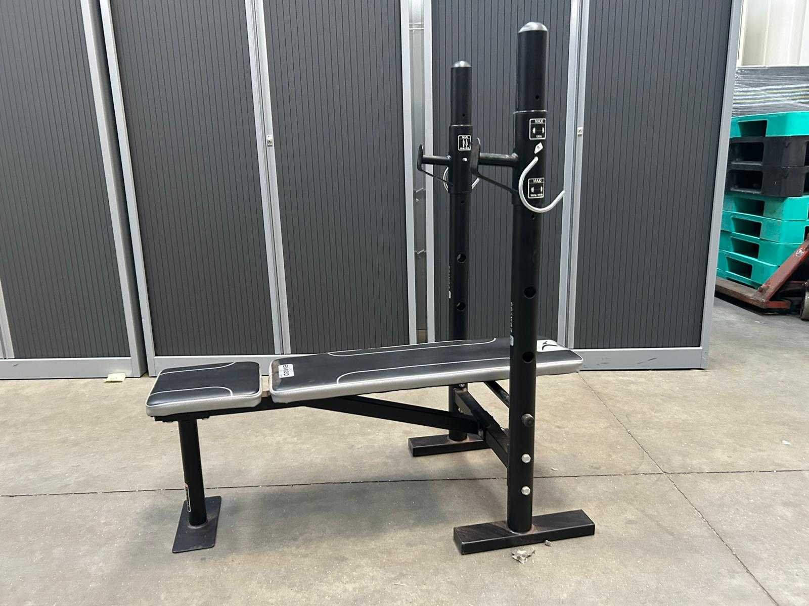 Volledige fitnessuitrusting 1 x Miha fiets met digitaal display-Werkend. 1 x Miha Cross trainer met digitaal display zittend /fietsen/roeien-Werkend 1 x Miha Cross trainer met digitaal display Staand/lopen/roeien-Werkend 2 x Miha Club Runner loopband met digitaal display -Werkend 1 X bank voor Benchpress zwart 1 X bank voor Powertraining met kussens /zwart 1 X bank voor Benchpress Domyos Grijs-Wit Nee Merk: Miha