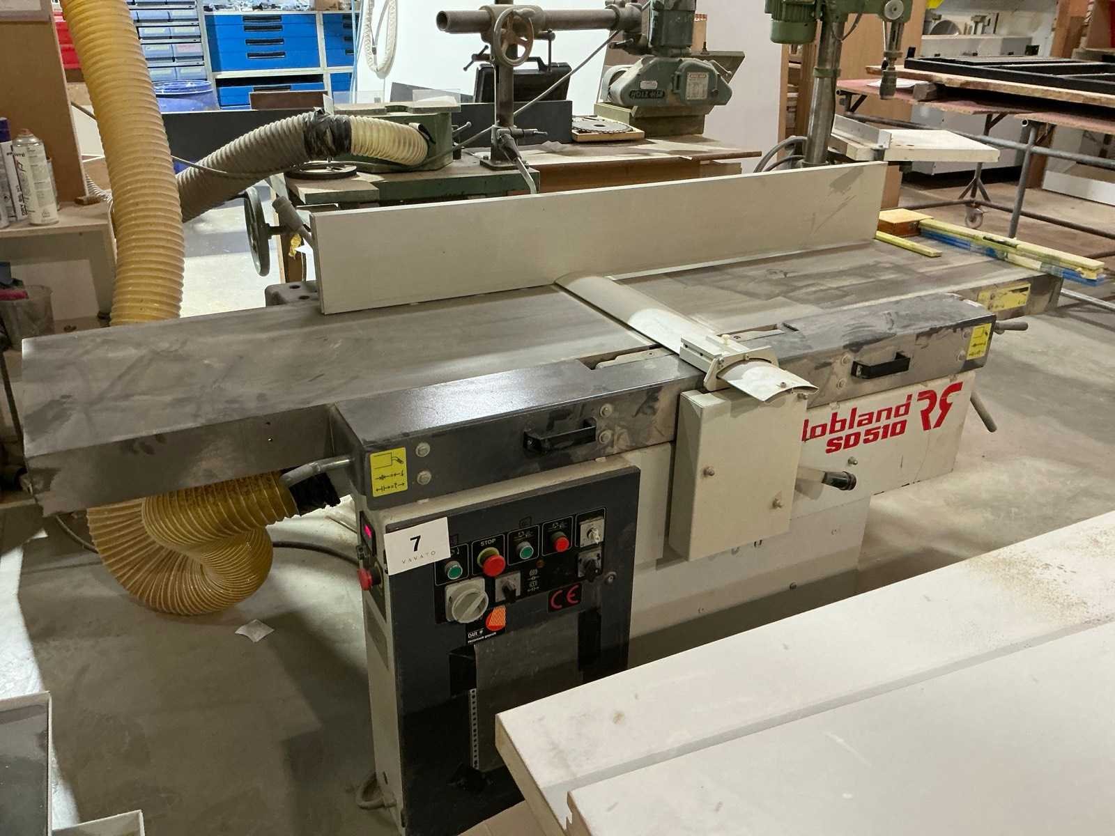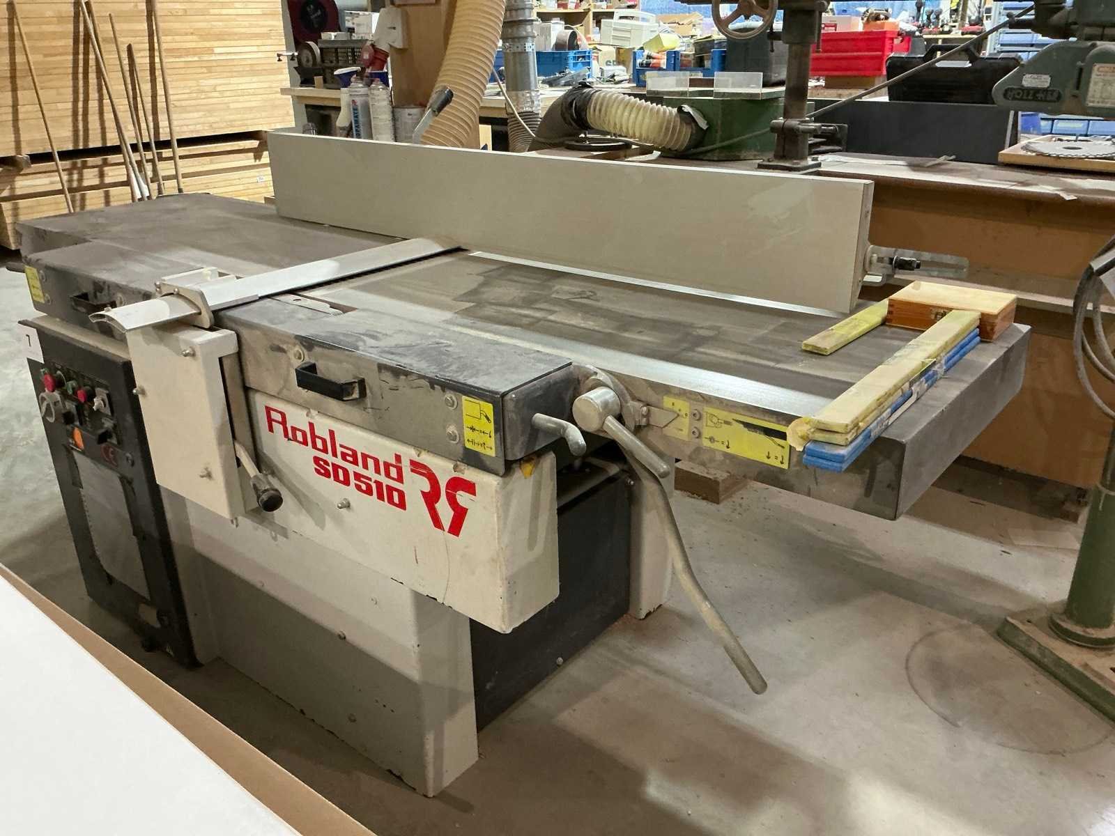 Voorzien van digitale uitlezing Elgo, te demonteren tot aan de afzuiging Nee Merk: Robland Type: SD 510 Bouwjaar: 2000 Werkbreedte: 520mm Werkhoogte: 840mm Tafel afmeting l: 520mm Tafel afmeting b: 2200mm Aansluiting: 400V Machinegewicht: 1000kg Afmeting l: 2200mm Afmeting b: 1500mm Afmeting h: 1100mm
