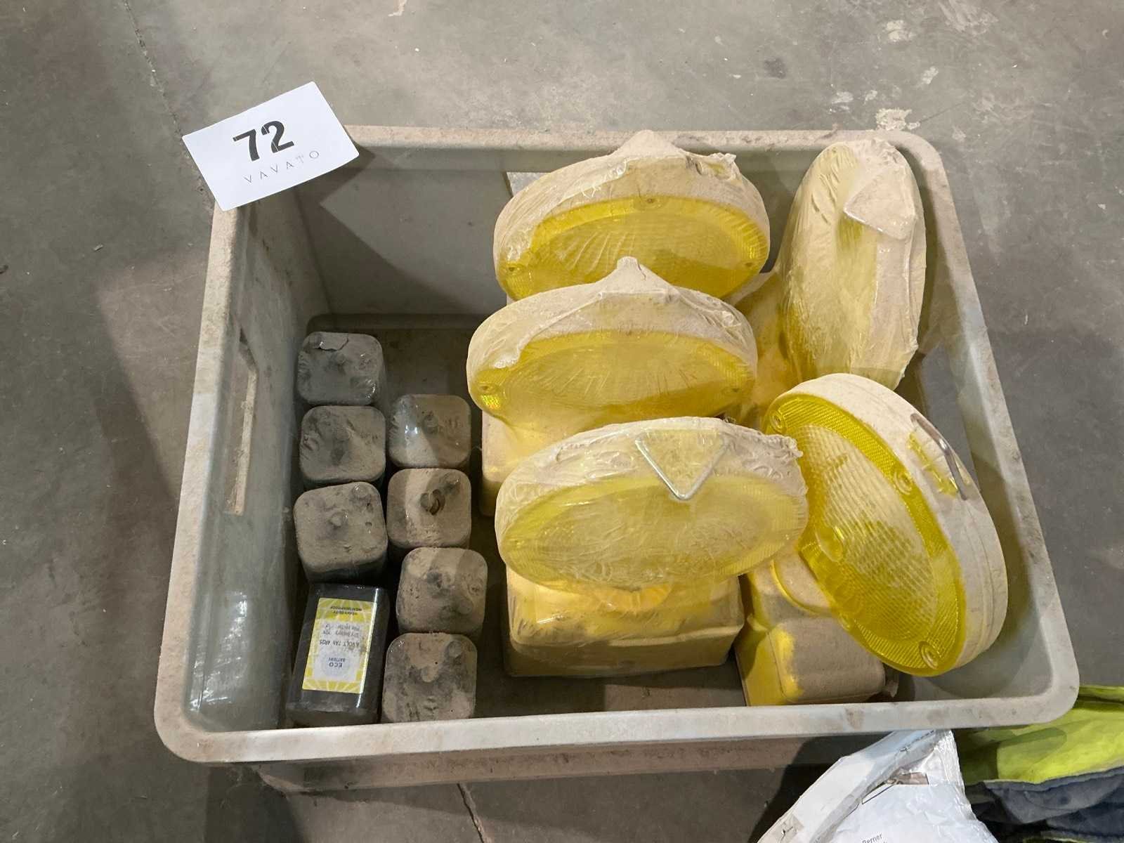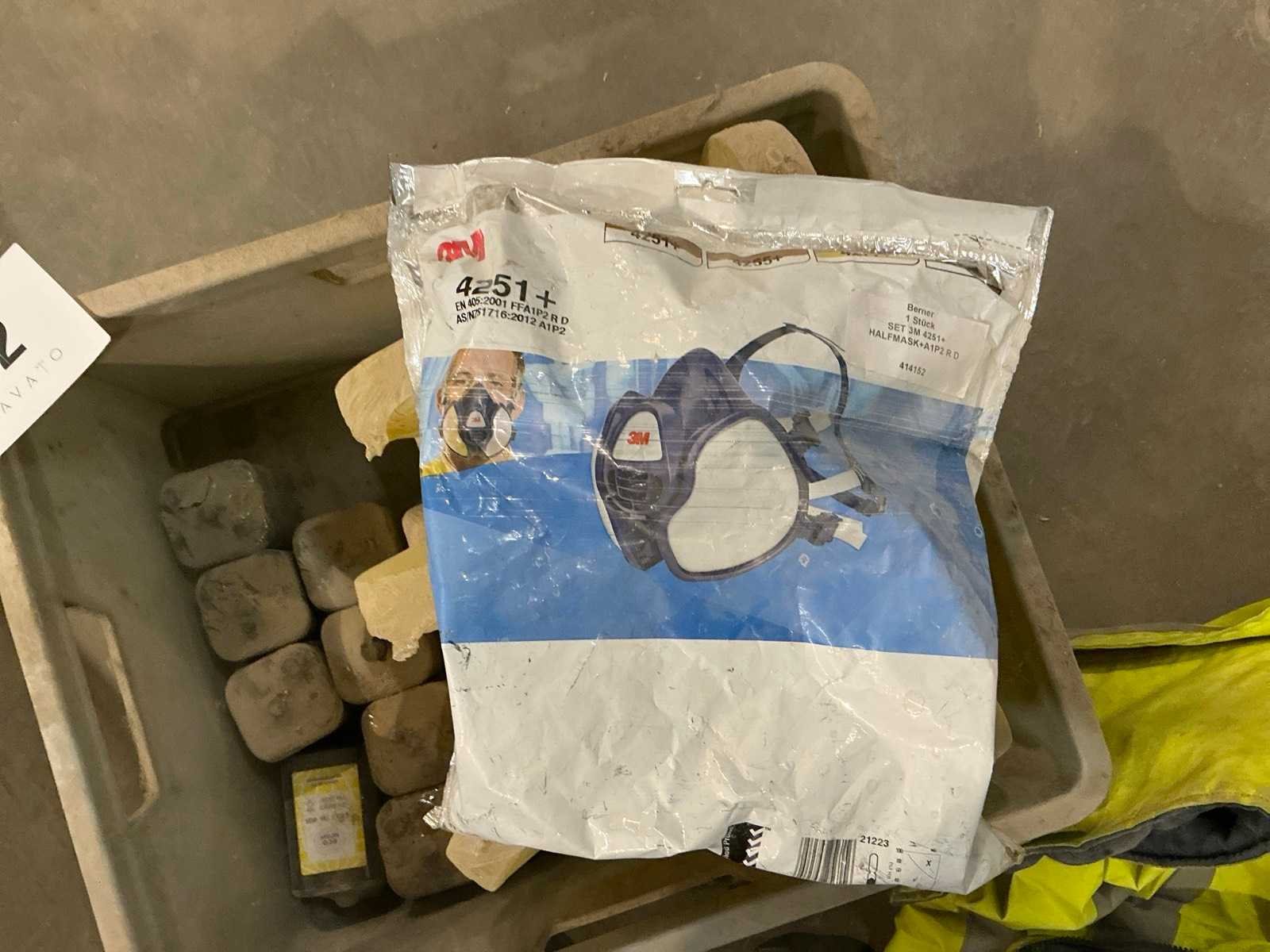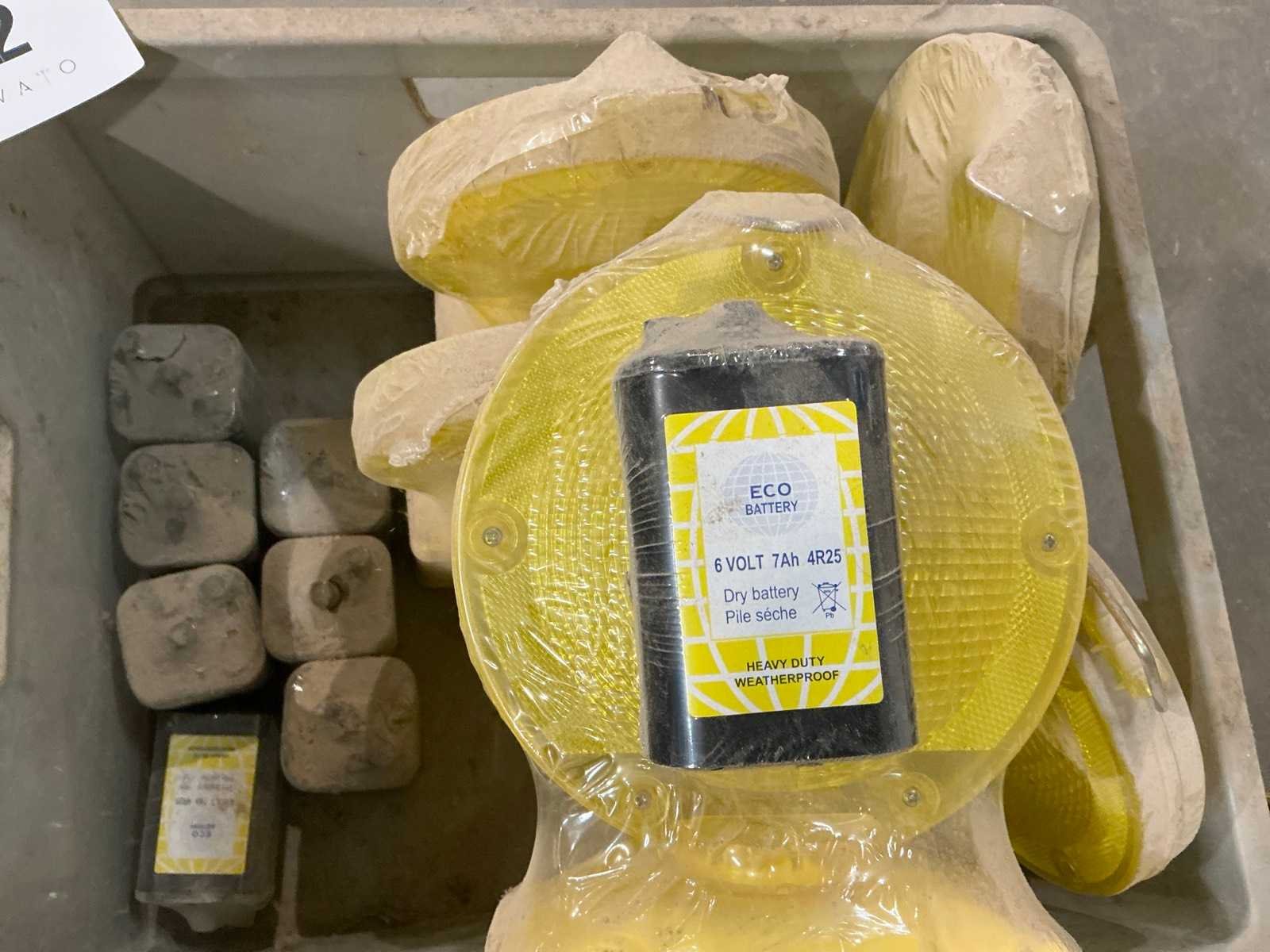 Pvc stappelbox inhoudende 5 lampen compleet met 8 batterijen, mondmasker 3M, enzovoort Nee