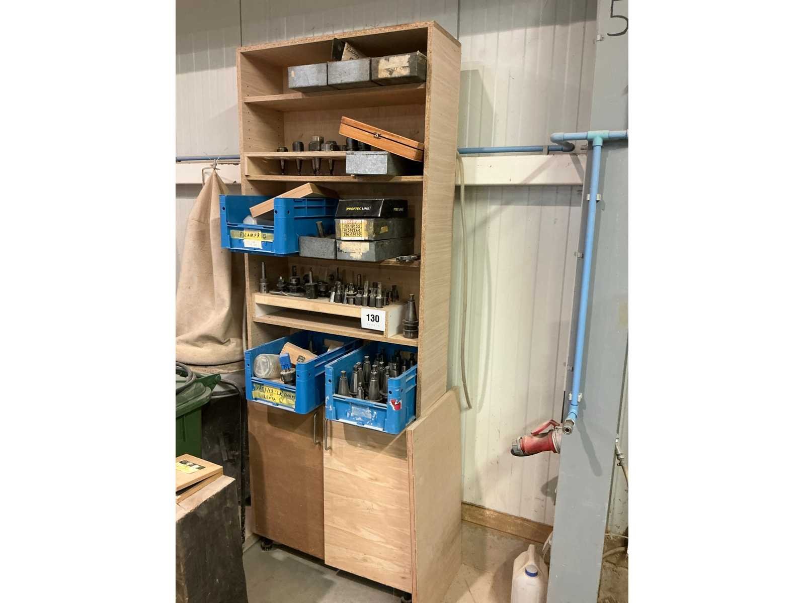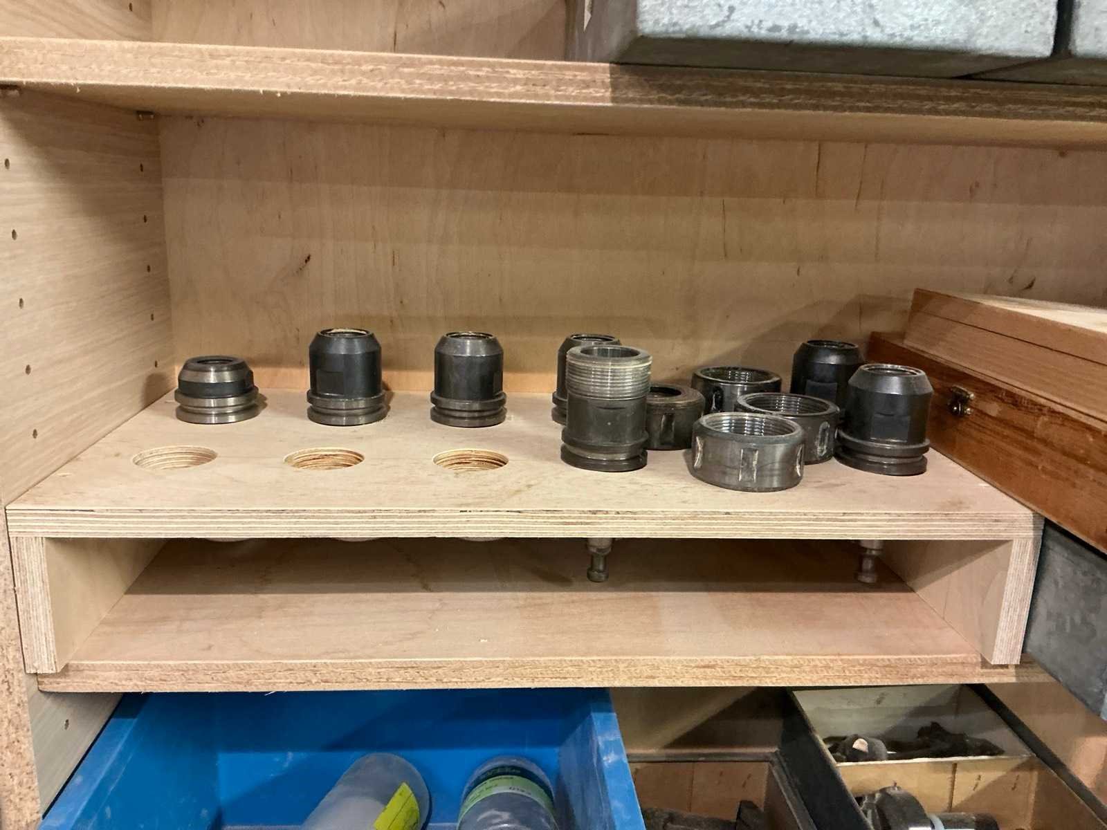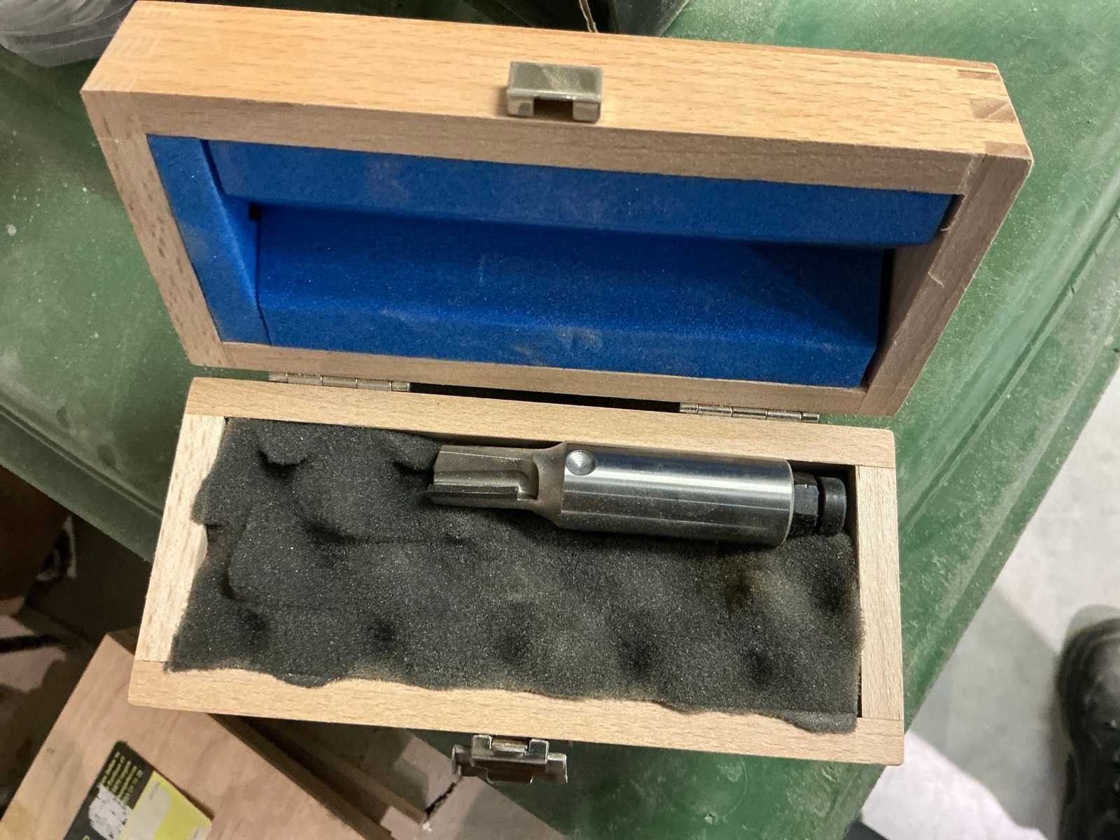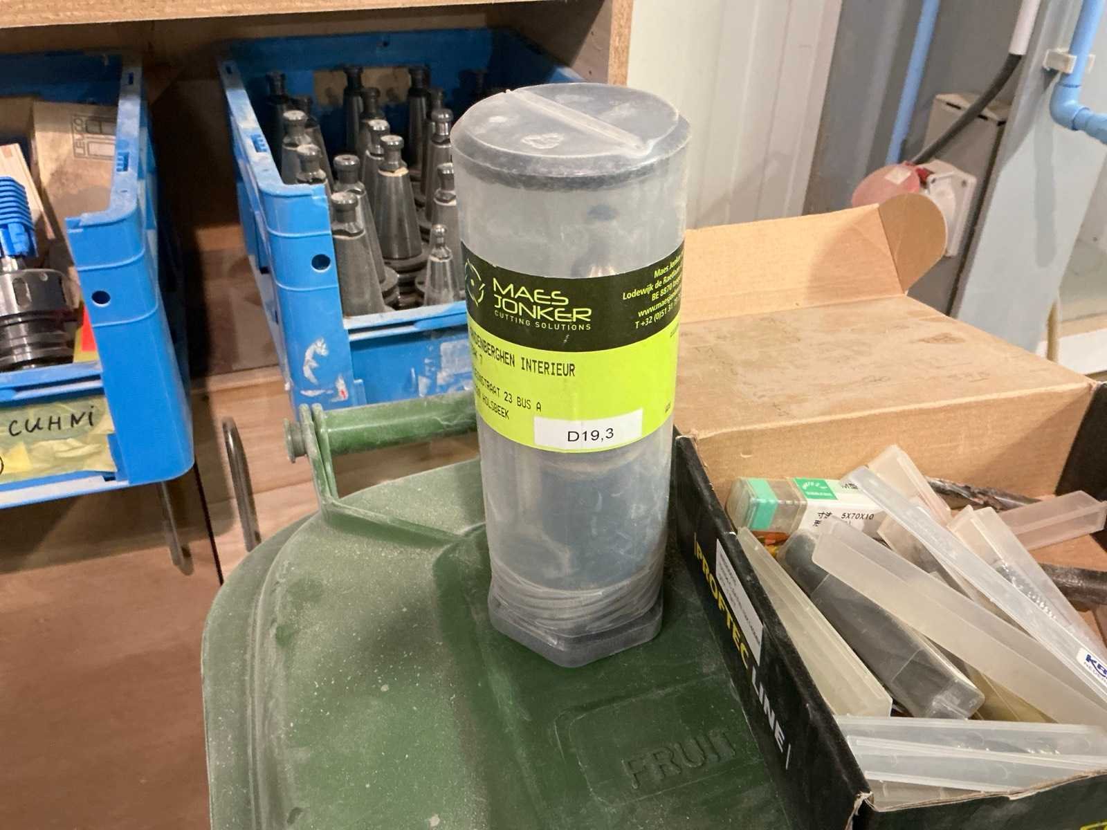 Bestaande uit: circa 55 diverse freeskoppen en zaagbladen waaronder Leuco, Karat, circa. 28 freeskophouders, 10-delige boorset, compleet met bijhorende kast 80x28x210cm Nee