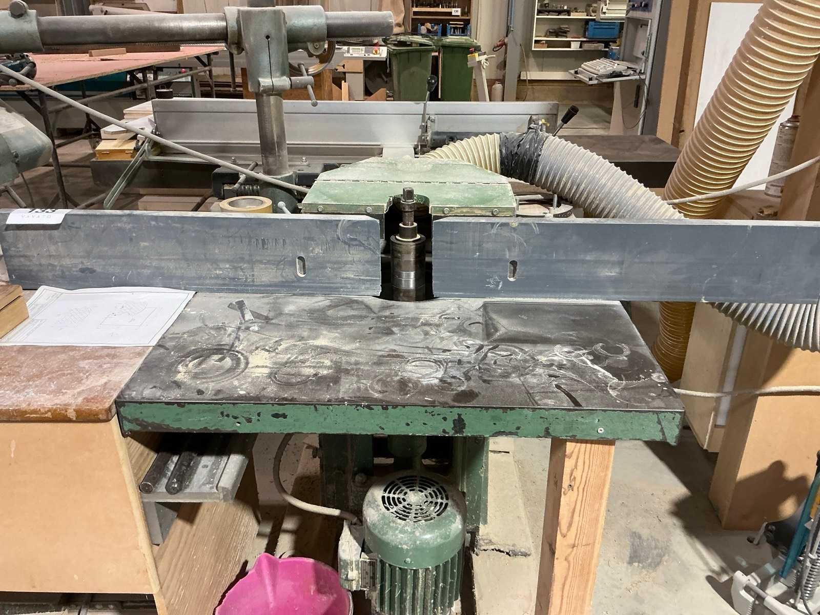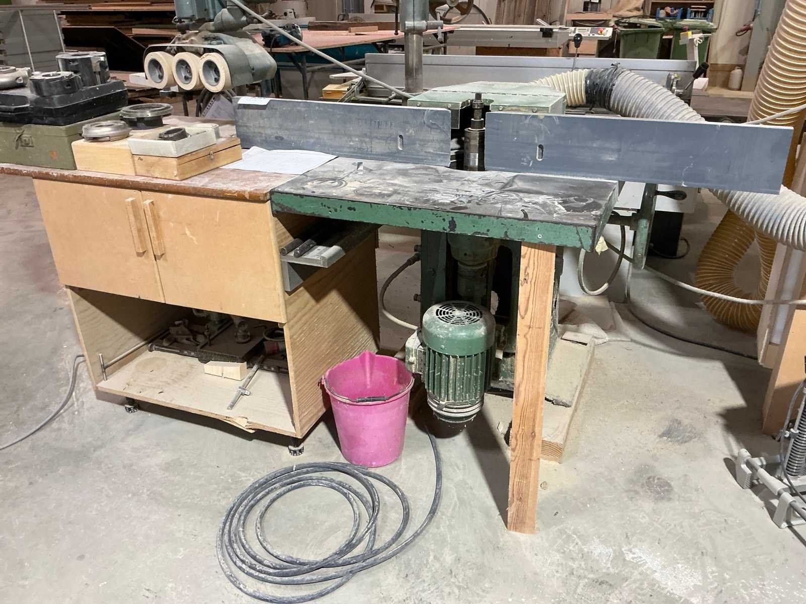 Voorzien van aanvoer/afvoerarm Holz-Her ETZ, compleet met houten aanbouwmeubel, zonder freeskoppen lot 132 Nee Merk: Danckaert Aansluiting: 380V Tafel afmeting b: 800mm Totale afmeting L: 700mm