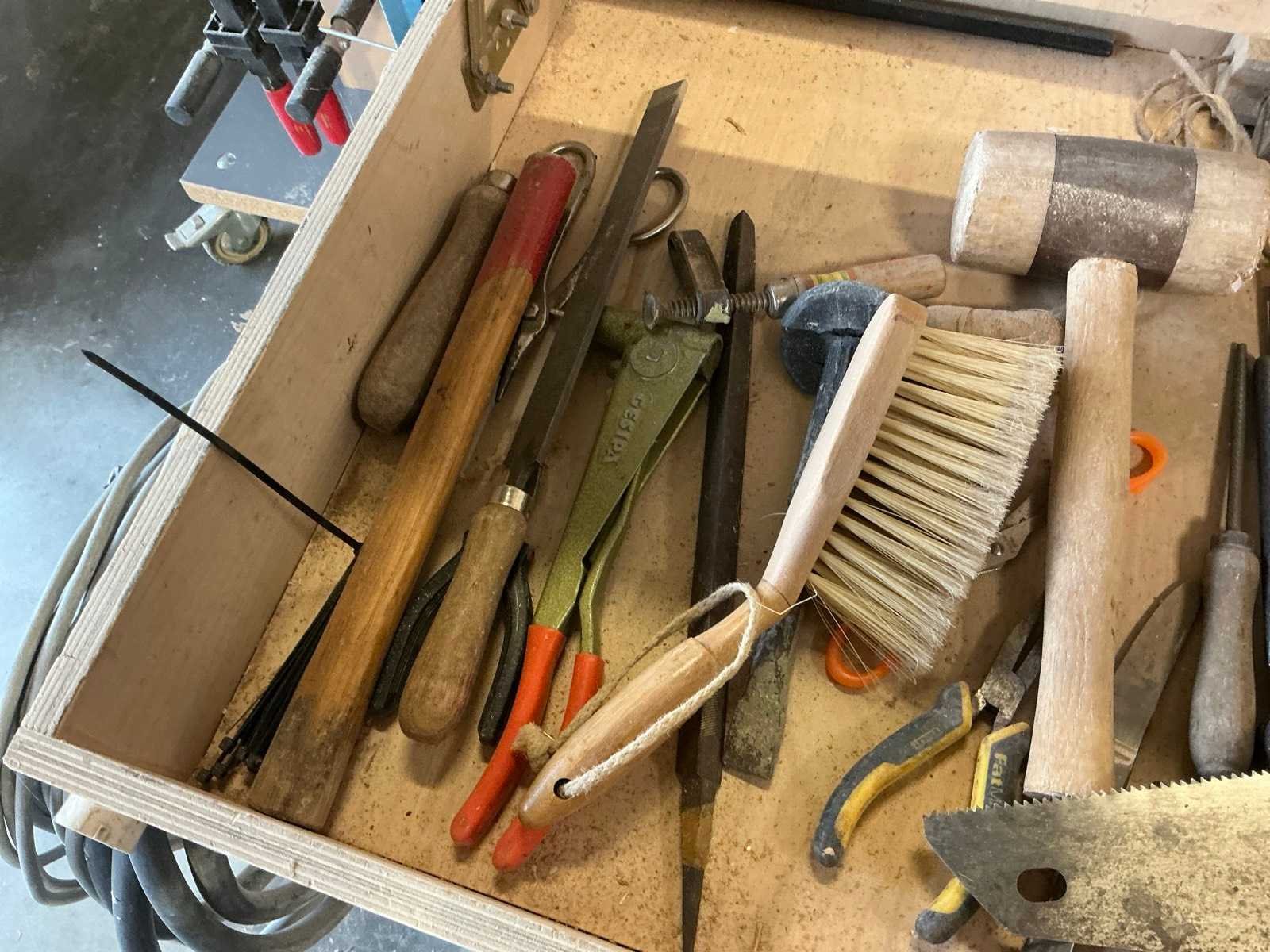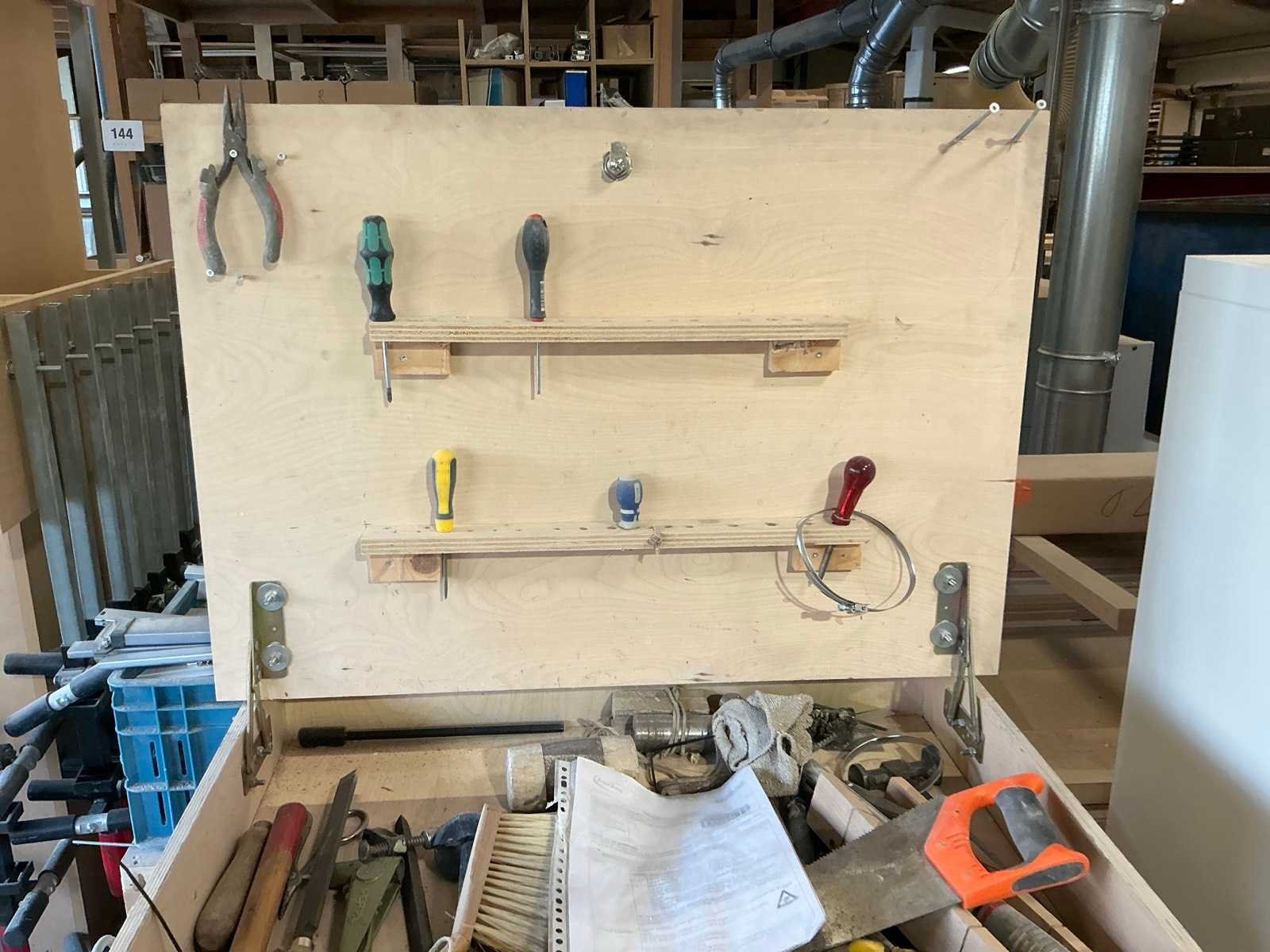 Voorzien van 3 deuren waarvan 1 opklapbaar, compleet met inhoud zijnde enig handgereedschap Nee Breedte: 600mm Lengte: 850mm Hoogte: 900mm