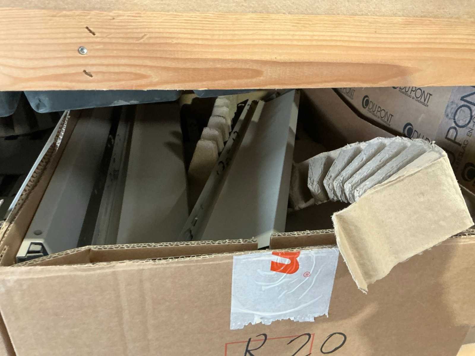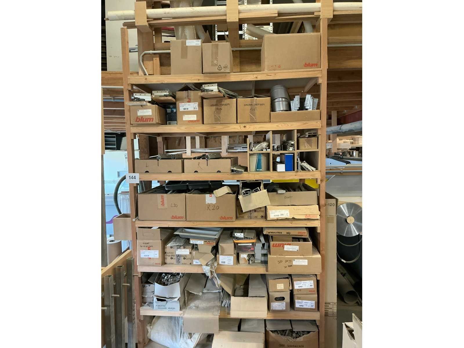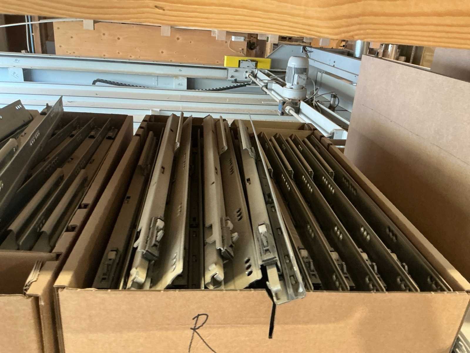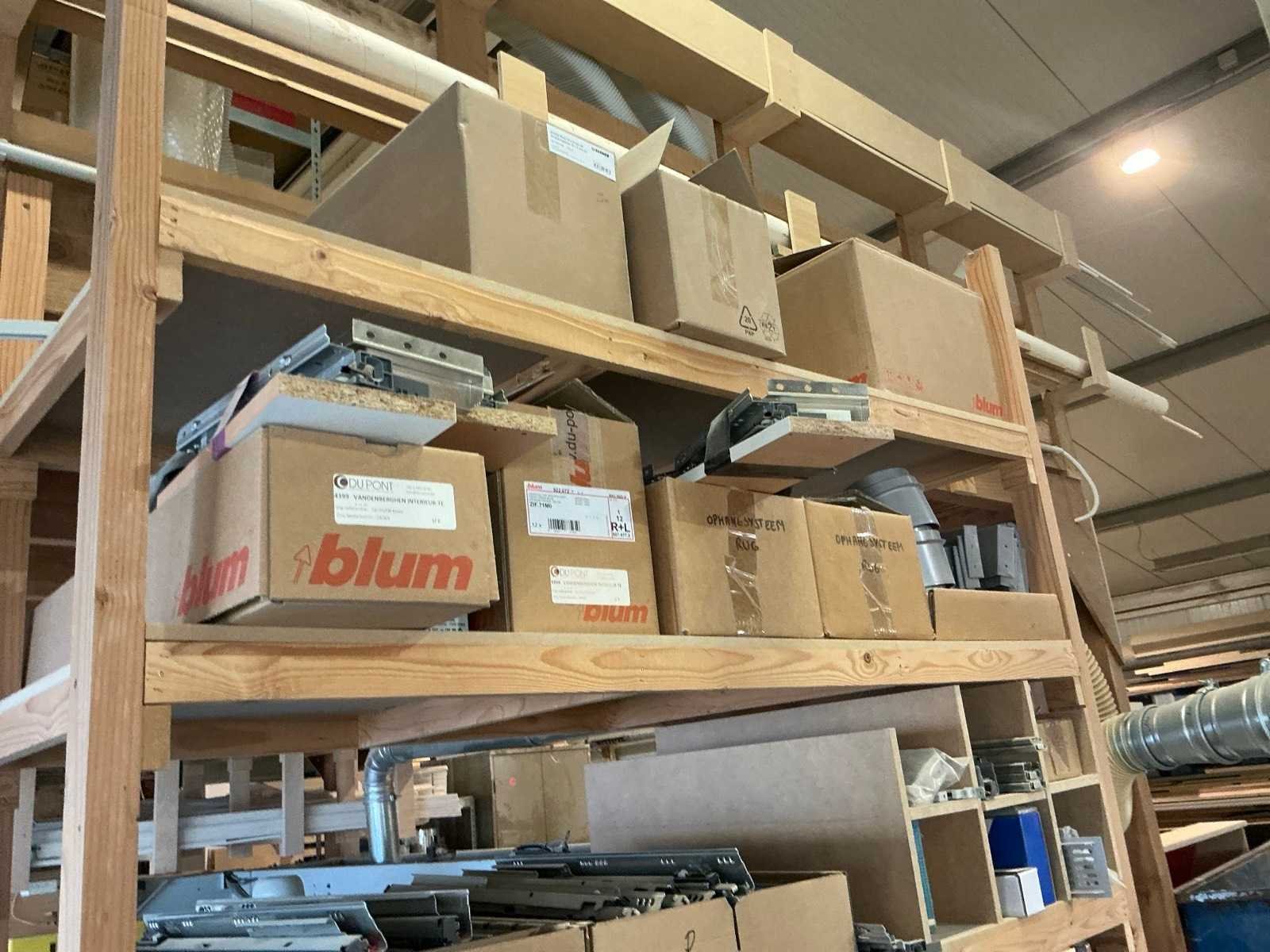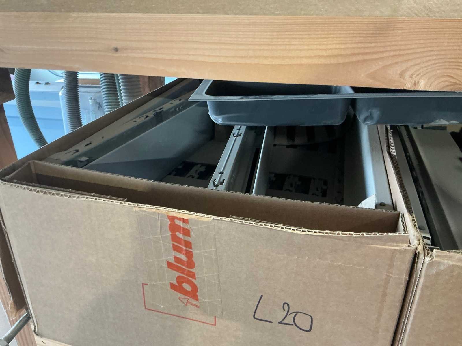 Waaronder schuifgeleiderplaatjes, afdekkappen, punthaken, back fixings, scharnieren, frontbevestigingen, ophangsystemen,.., compleet met rek Nee Merk: Blum