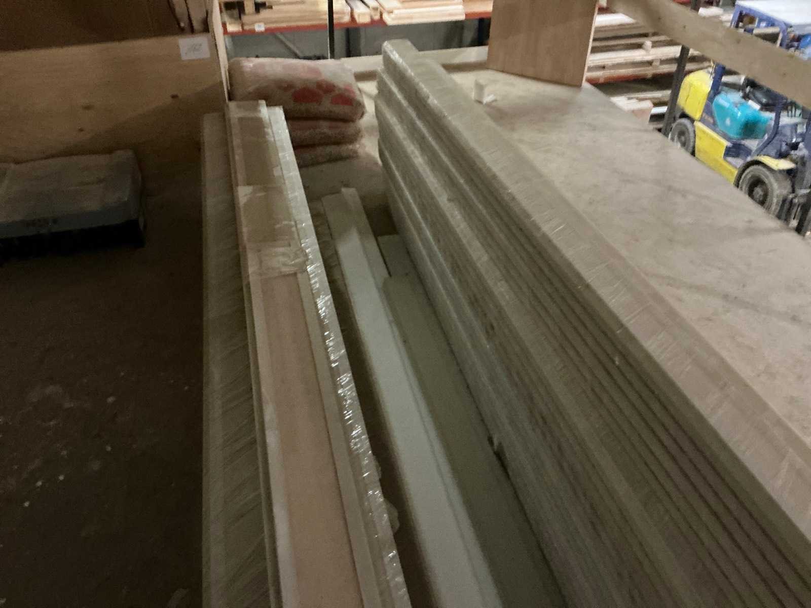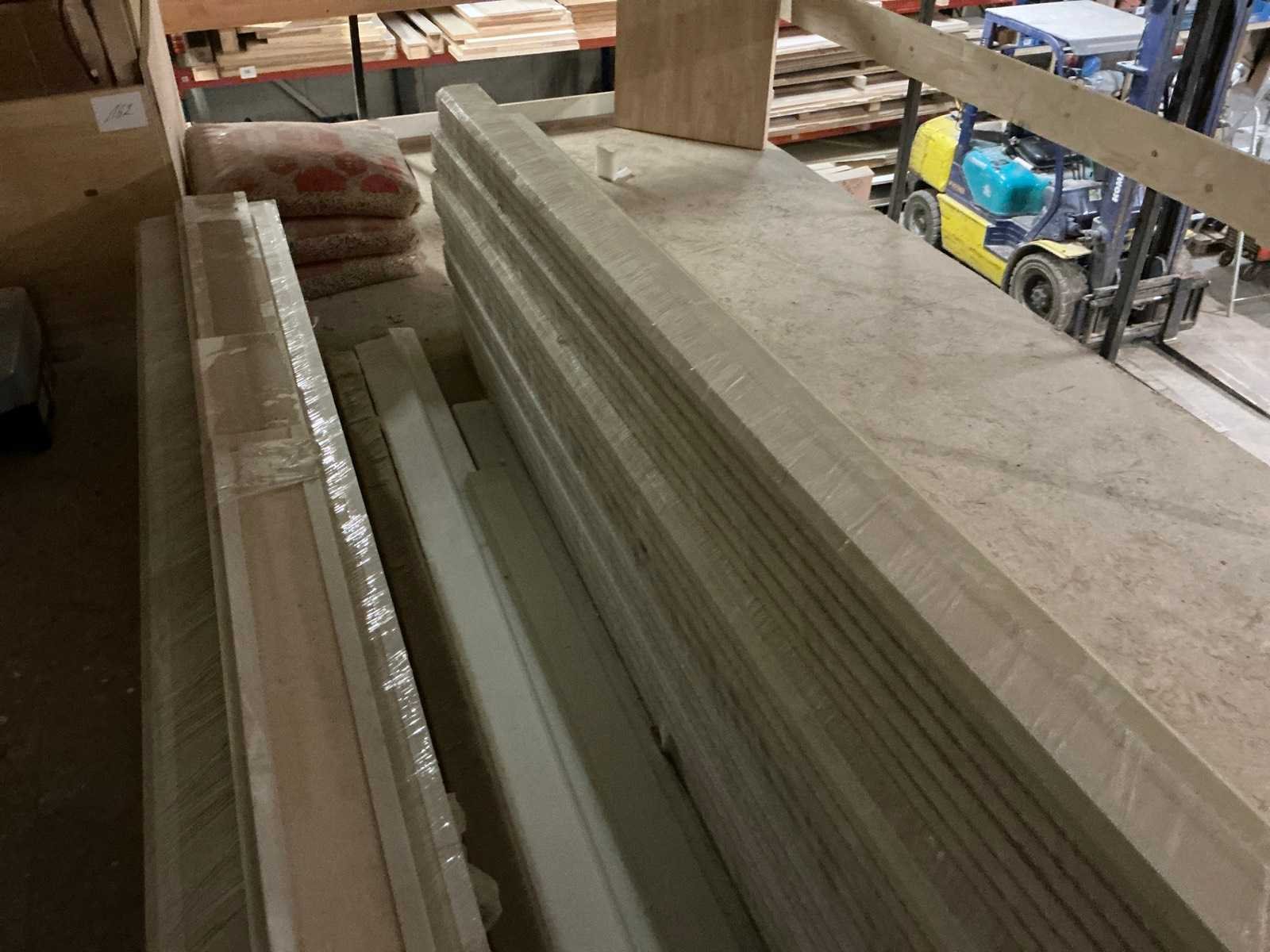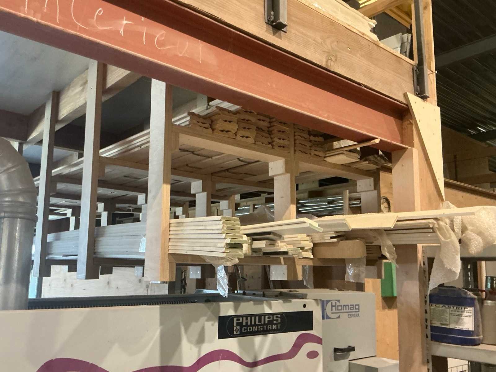 Waaronder met lengtes: 244cm, 176cm en 144 cm, compleet met partij diverse moullures tot 300cm Liggende op vlonder en in houten opbergrek Door koper zelfstandig naar beneden te halen. Nee