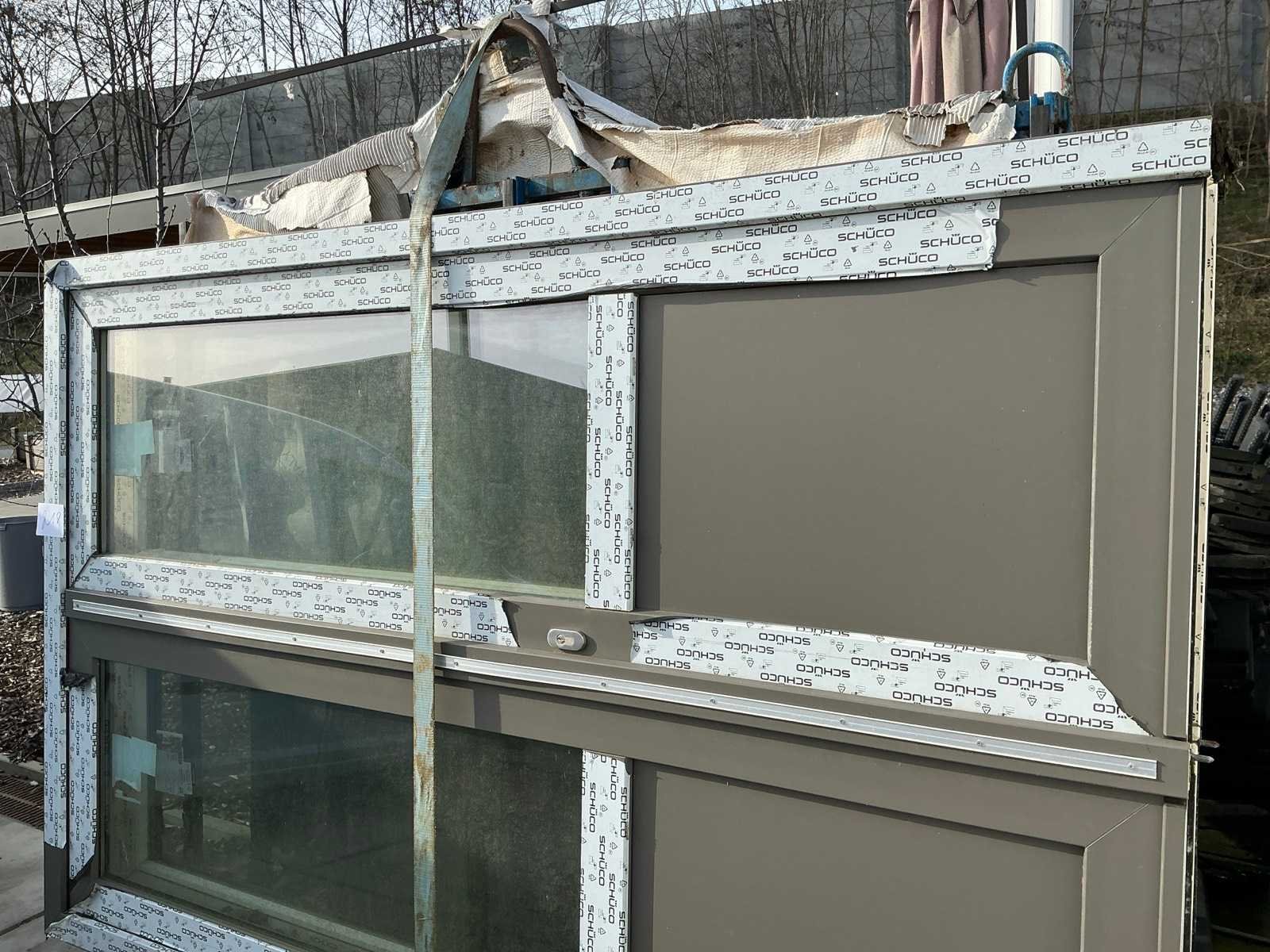 Voorzien van elk 1 ingewerkte deur met raam Thermobel, compleet met raam, afmeting: 198x200cm, compleet met transportbok Nee Merk: Schuco Breedte: 157cm Hoogte: 238cm