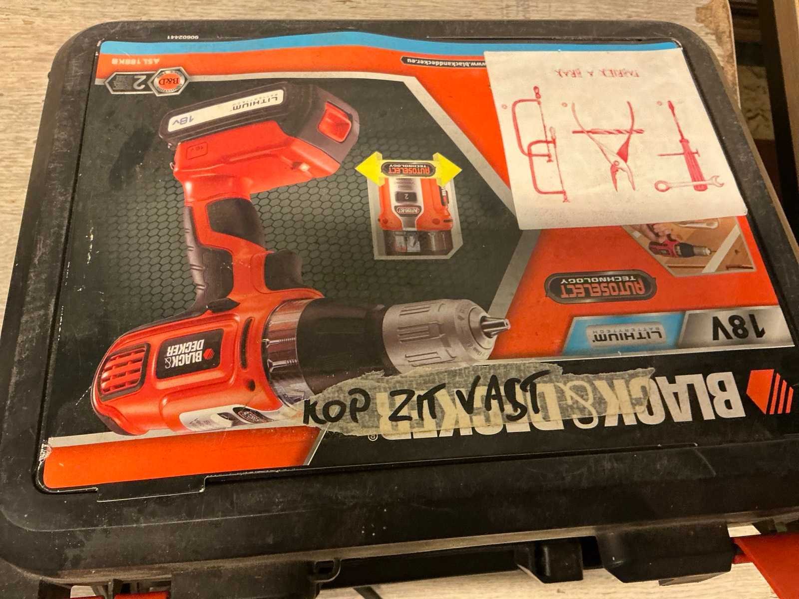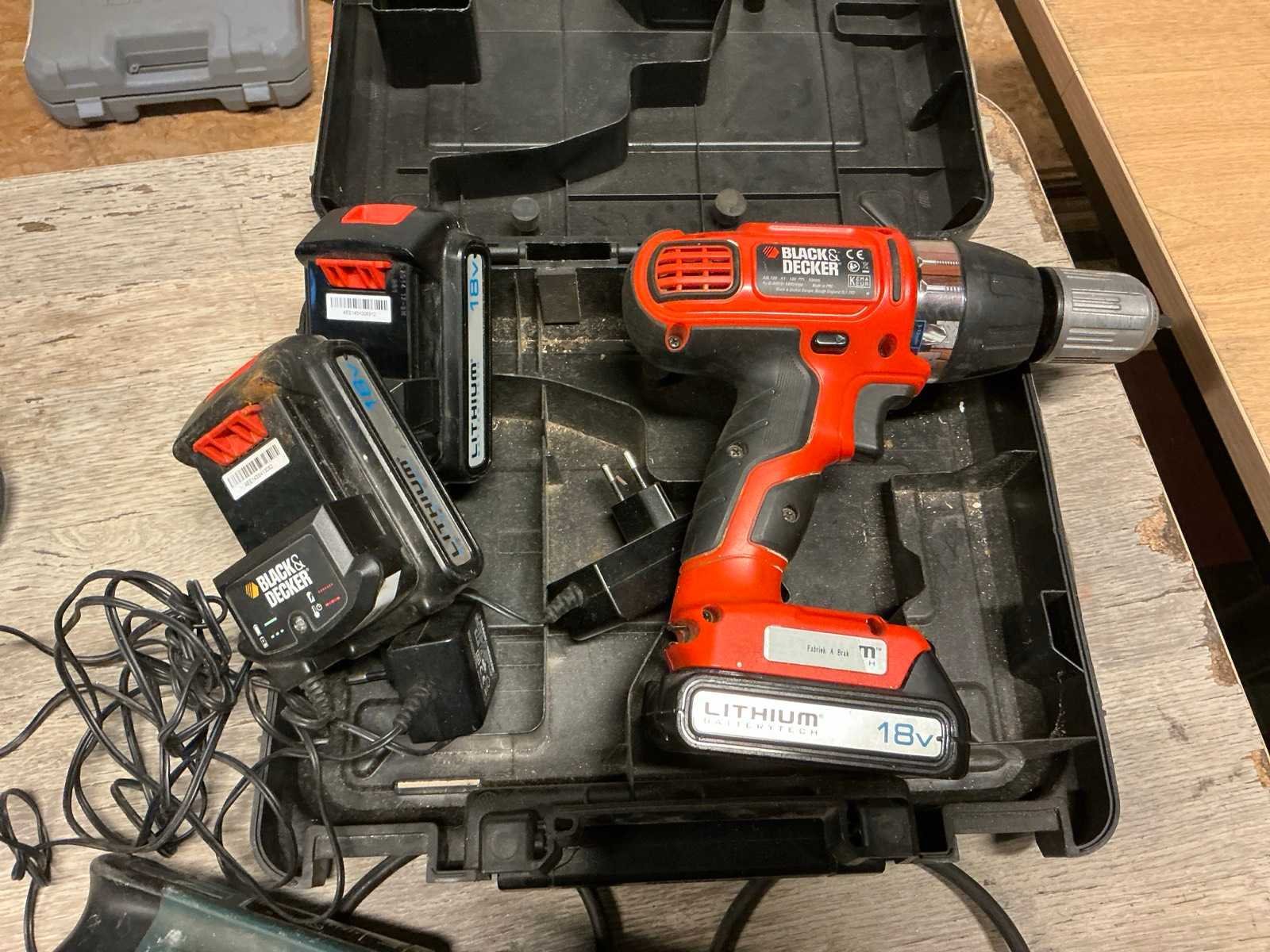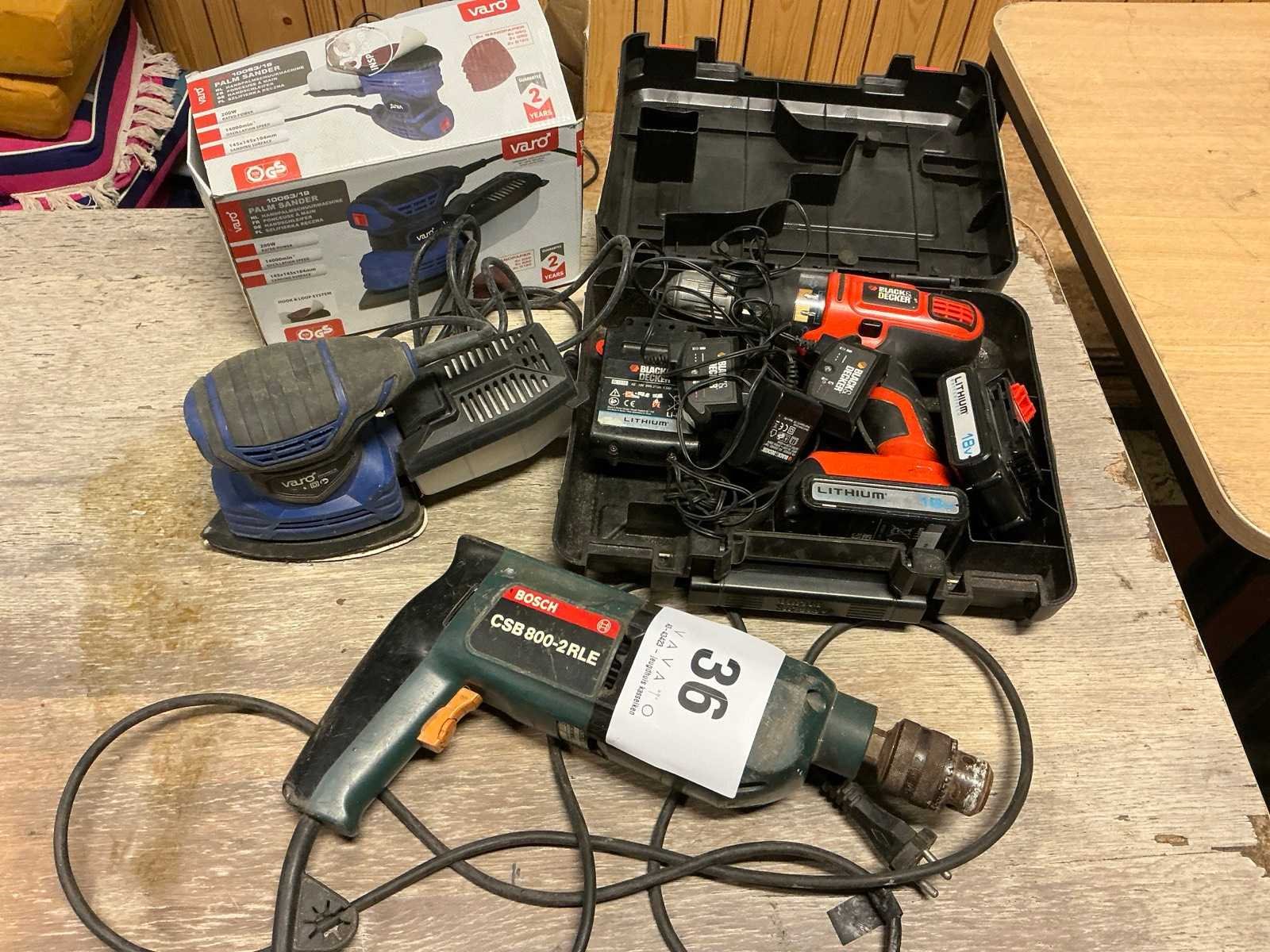 Bestaande uit accu schroefmachine BLACK&decker voorzien van 2x accu, lader en opbergkoffer Elektrische schuurmachine VARO ; VARO10063/19. Boormachine BOSCH ; CSB 800-2RLE Nee