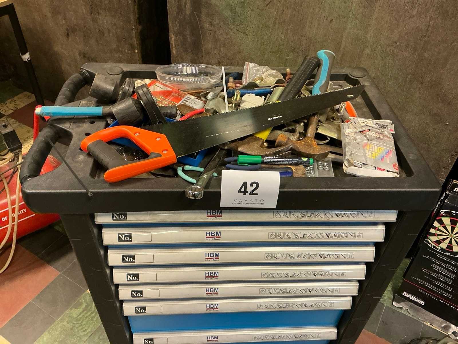 Compleet met partij wergereedschap waaronder handzaag, schroevendraaiers, moersleutels, dopsleutels, hamers, tangen, enzovoort Nee Merk: HBM