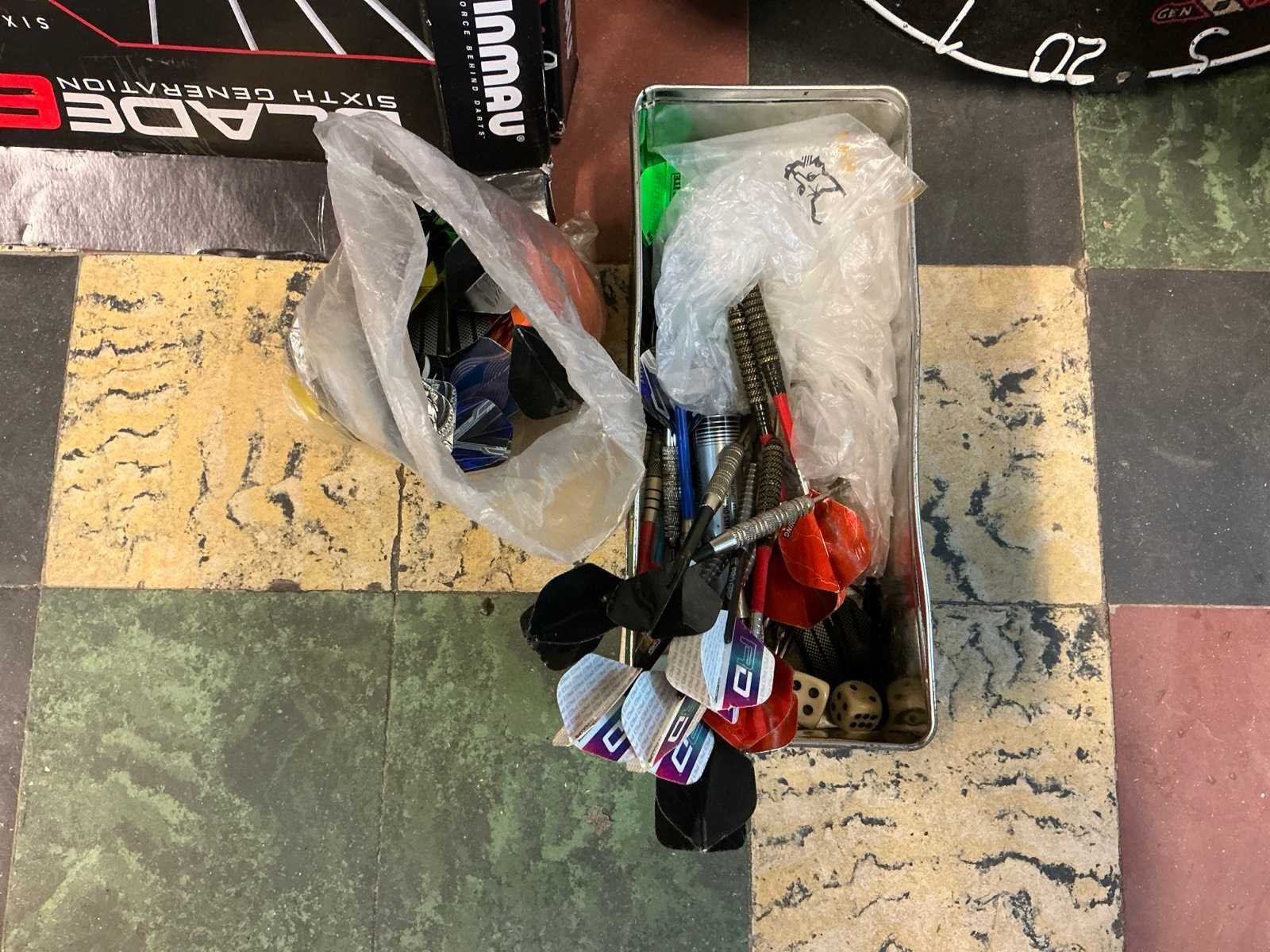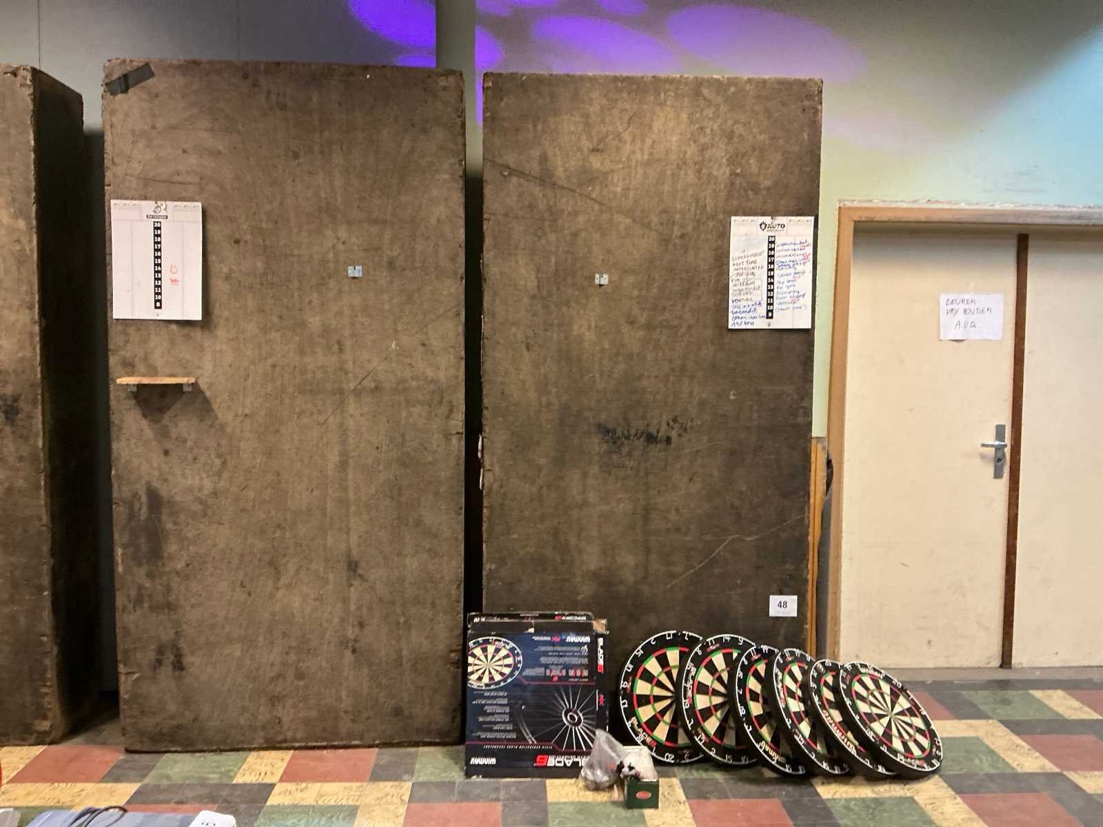 Compleet met partij dartpijltjes en 4x houtenopstelling elk met afmeting circa 122 x 42 x 242 cm Nee Merk: WINMAU
