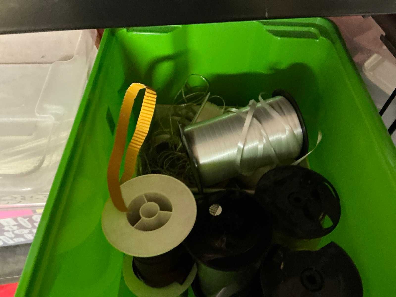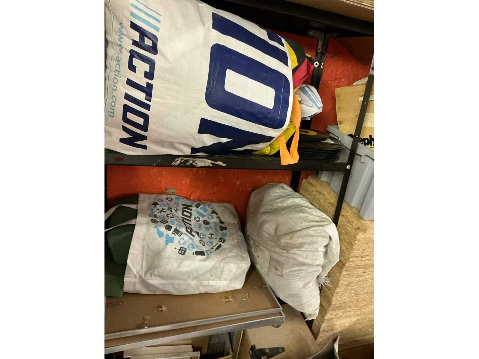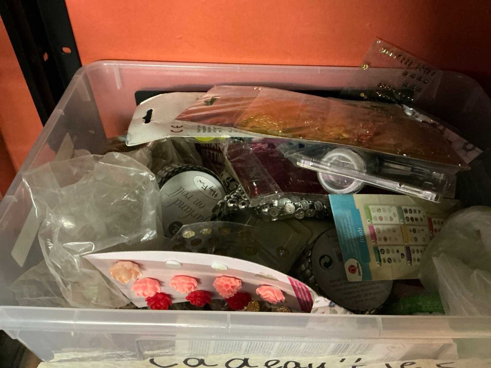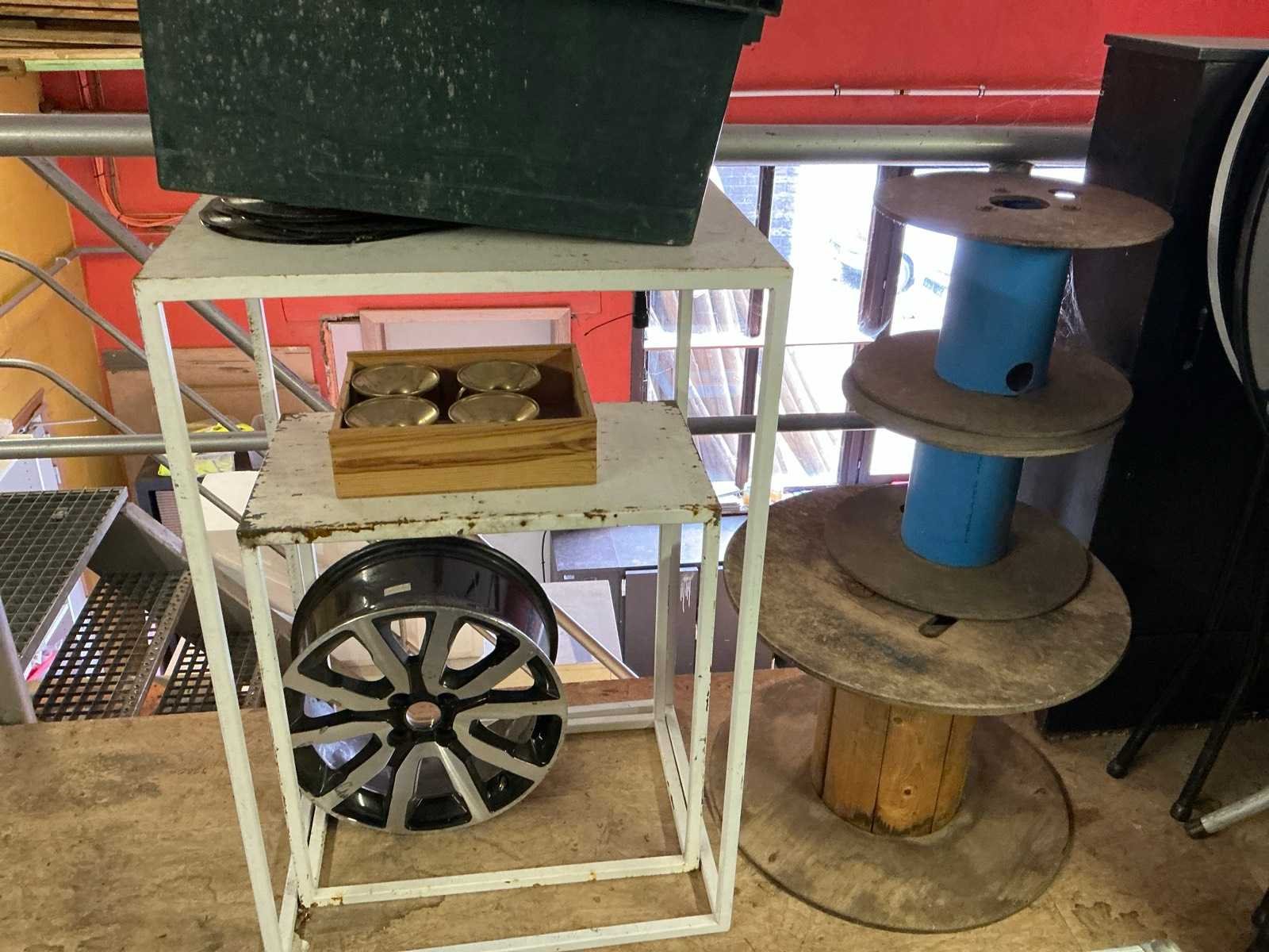 Bestaande uit garen, glazen, kurken, karton, stickers, servies, lampenkappen, heteluchtblazer, lamineer apparaat, schmink, enzovoort compleet met 8 zwart metalen opbergrekjes elk met afmeting circa 75 x 30 x 150 cm, zich bevindend op de vlonder dient door de klant via de trap verwijderd te worden. Nee