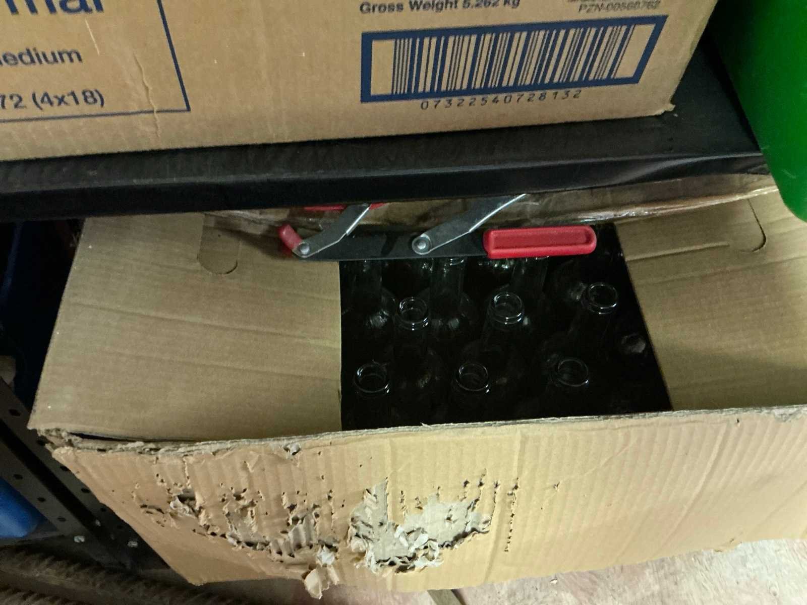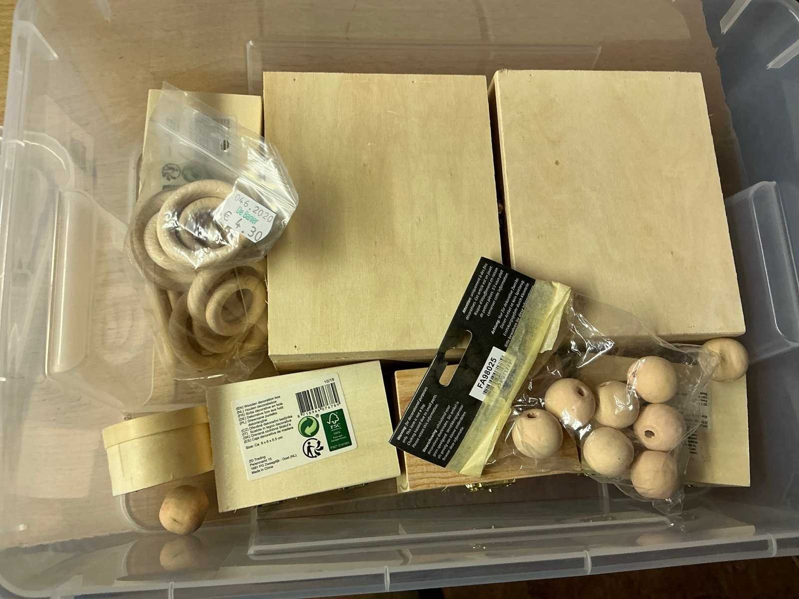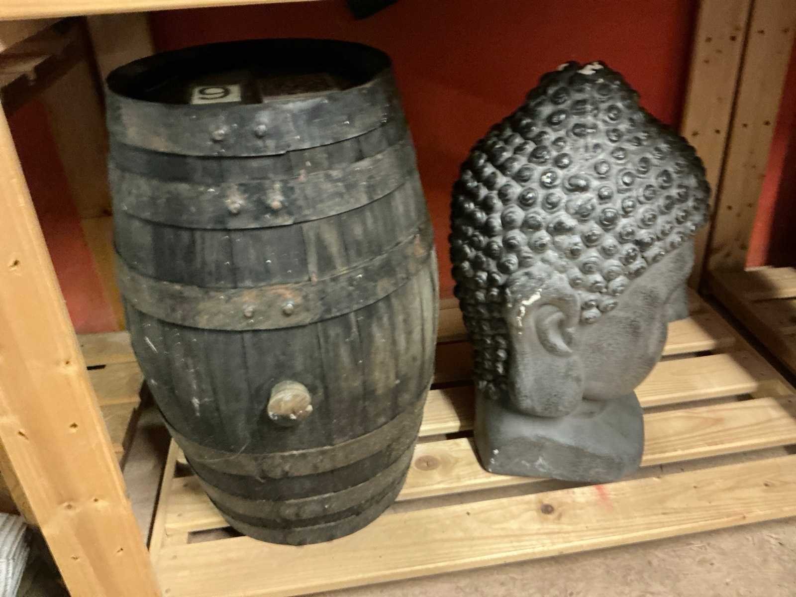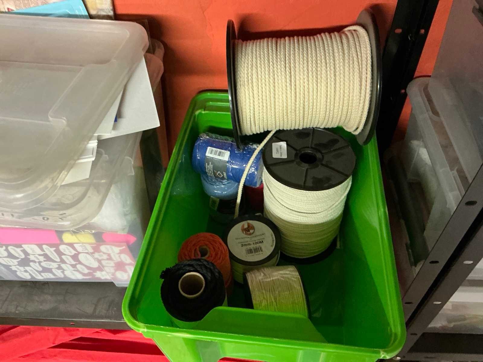 Bestaande uit garen, glazen, kurken, karton, stickers, servies, lampenkappen, heteluchtblazer, lamineer apparaat, schmink, enzovoort compleet met 8 zwart metalen opbergrekjes elk met afmeting circa 75 x 30 x 150 cm, zich bevindend op de vlonder dient door de klant via de trap verwijderd te worden. Nee