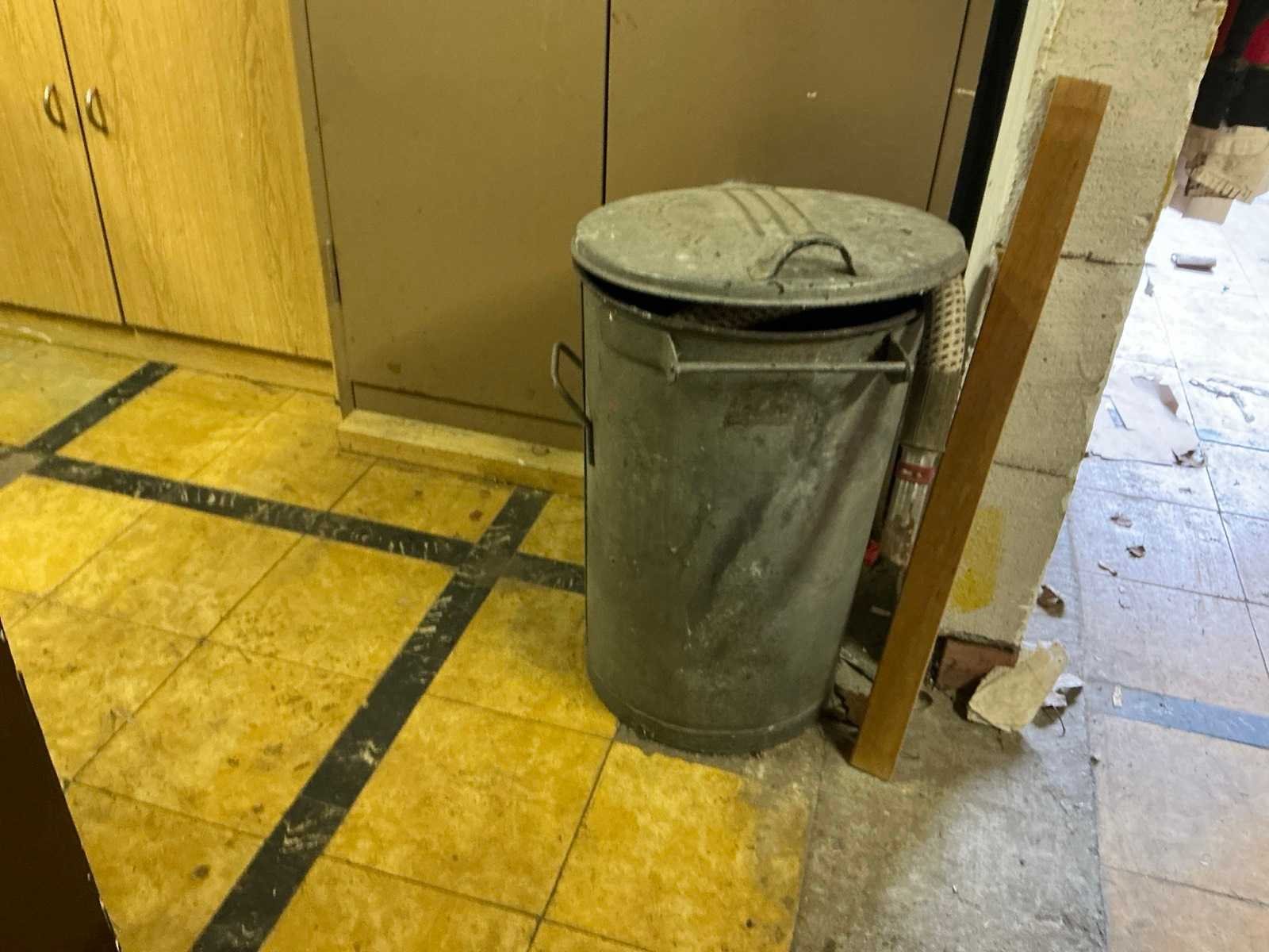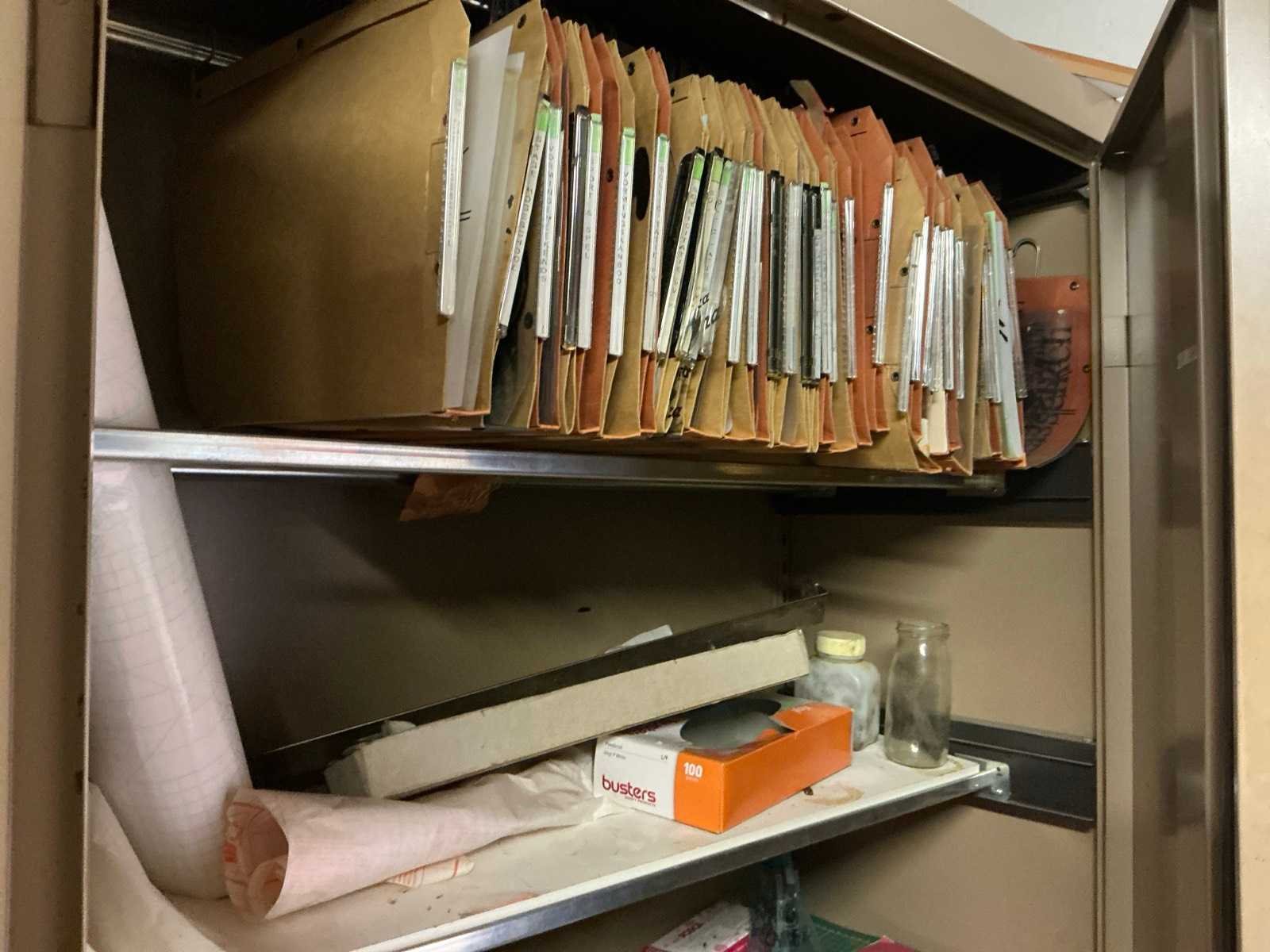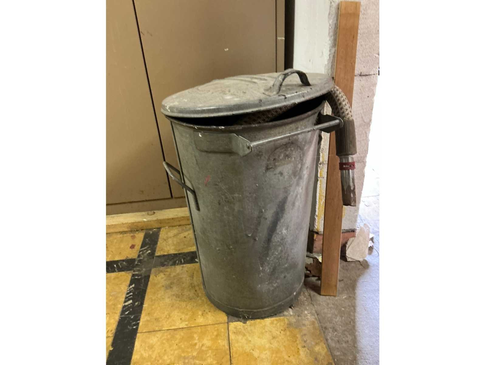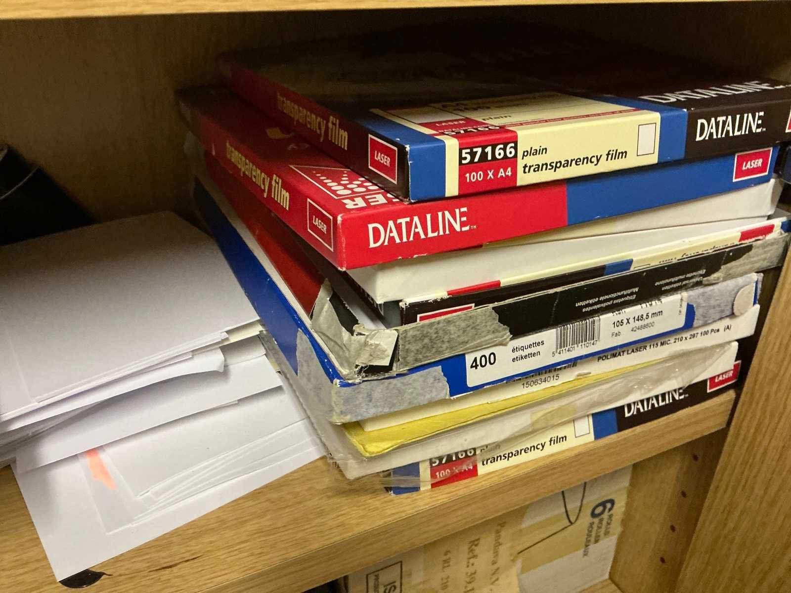 Partij verf en knutselmateriaal waaronder grote partij aangesproken verf, tape, sponzen, papier, enzovoort compleet met 2 diverse kasten en metalen emmer Nee