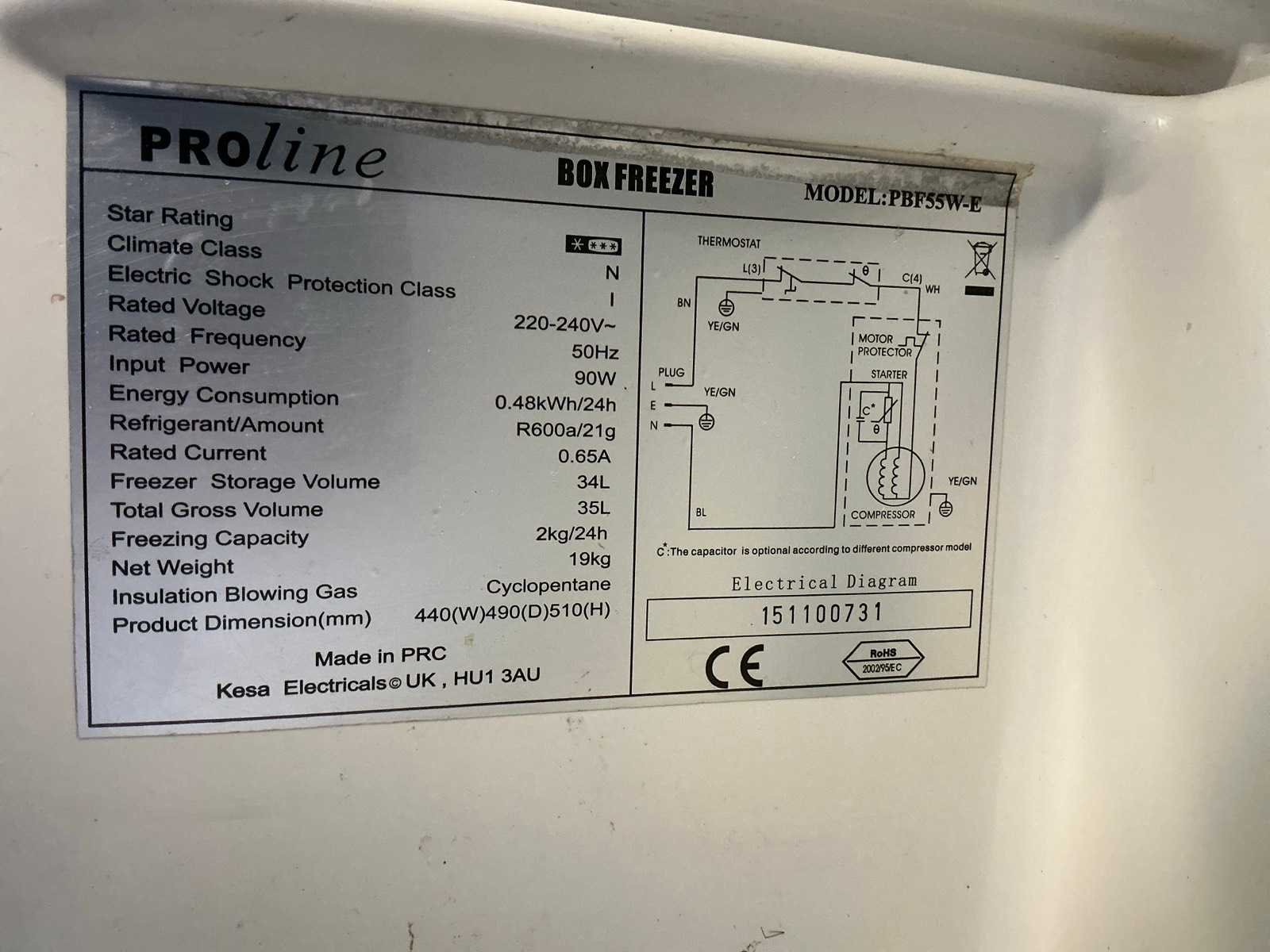 Proline pbf55w-e tafelmodel vriezer