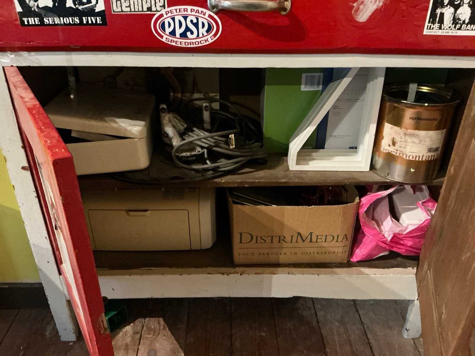 Compleet met 2x wandkast, oude printer, 2x bijzetverwarming SILVERCREST, enzovoort Zich bevindend op de vlonder dient door klant via de trap verwijderd te worden. Nee Merk: Pioneer