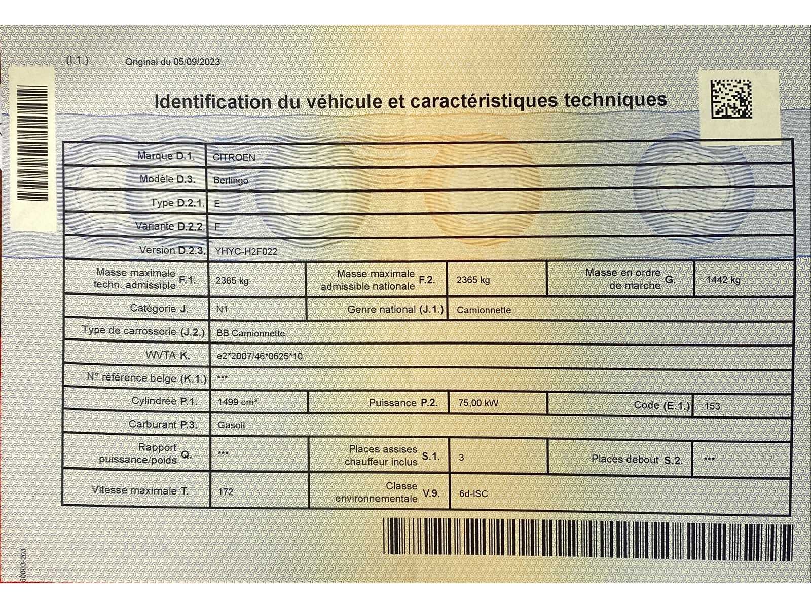 Betrouwbare Citroën Berlingo bestelwagen met ruime laadcapaciteit en lage onderhoudskosten. Geschikt voor diverse professionele toepassingen zoals leveringen of installatiewerk. Wordt aangeboden in huidige staat, bezichtiging mogelijk. No Kenteken: 2EDK053 Merk: Citroën Model: Berlingo Type: E Afgelezen kilometerstand: 132085km Brandstof: Diesel Chassisnummer: VR7EFYHYCLJ893023/15 Laadvermogen: 930kg Datum eerste toelating: 2021 APK vervaldatum: 20/01/2026 Aandrijving: Left Kleur: White Transmissie: Manual Ledig gewicht: 1442kg Start en rijdt: Yes Vavato voert geen technische keuring uit.: true