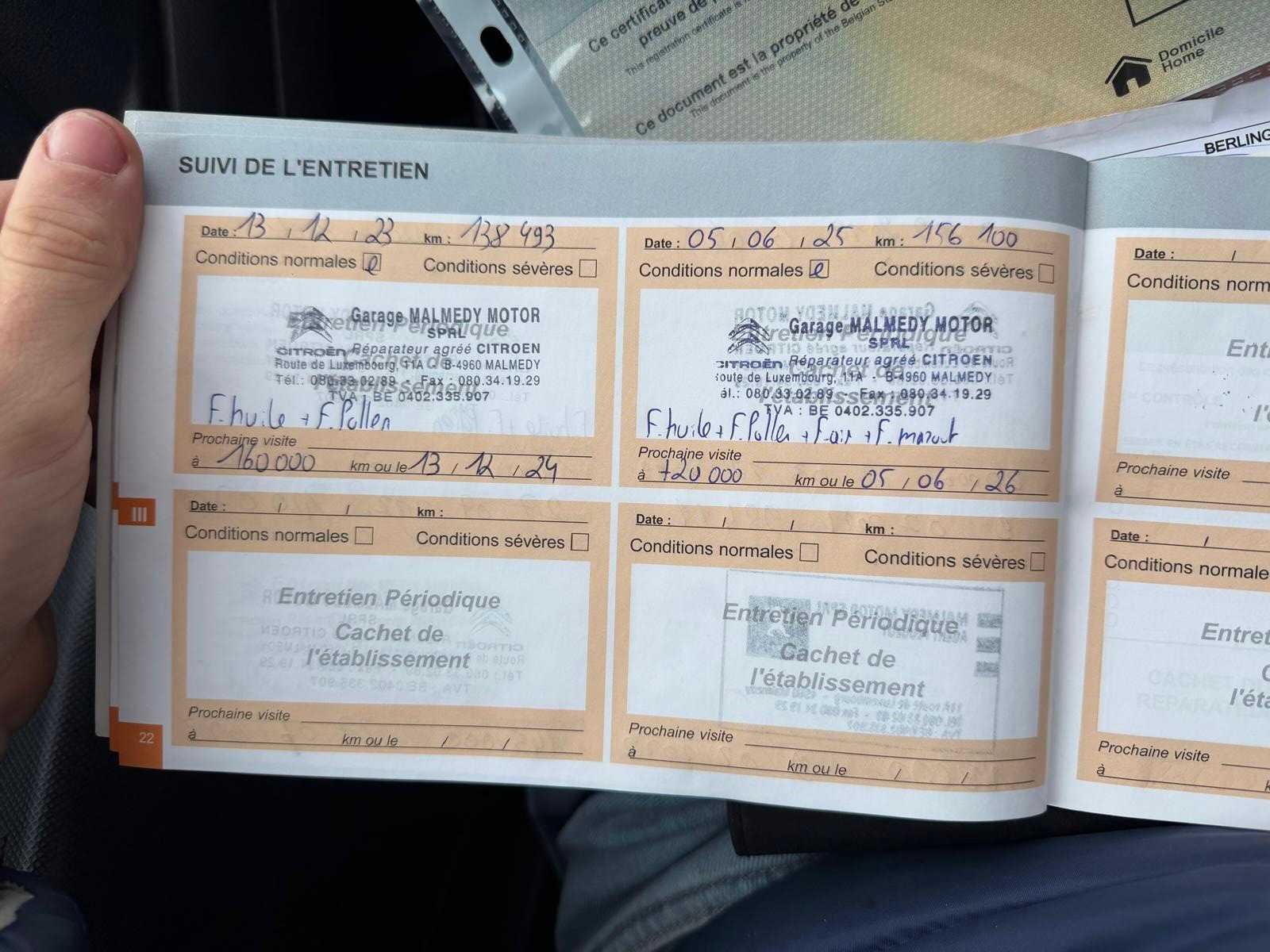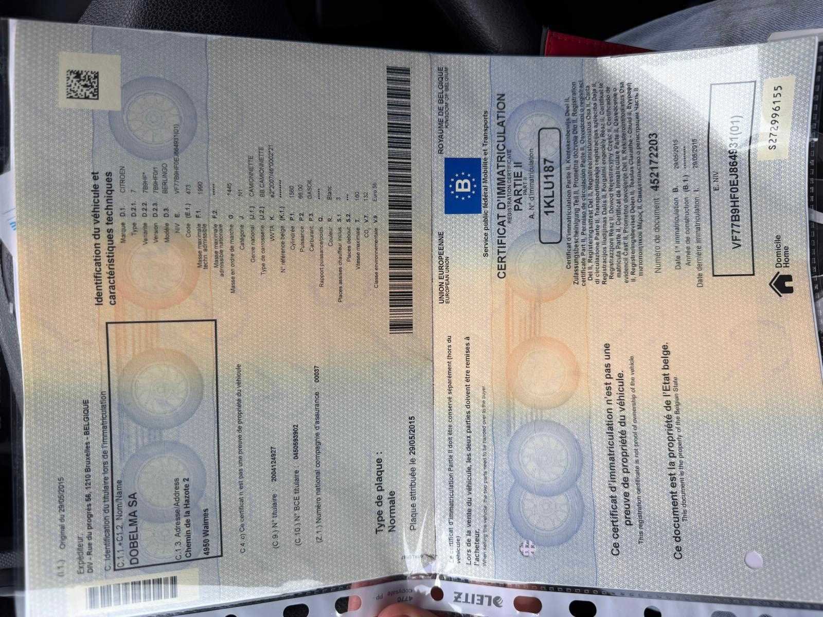 De wagen start en rijdt zonder problemen. Voor verdere details zie foto’s, documenten aanwezig. Nee Merk: Citroën Model: Berlingo Bouwjaar: 2015 Afgelezen kilometerstand: 163124km Cilinderinhoud: 1560cc Vermogen (kW): 66kW Brandstof: diesel Chassisnummer: VF77B9HF0EJ86493 Datum eerste toelating: 29/05/2015 Aantal zitplaatsen: 3 Kleur: Wit Transmissie: Handgeschakeld Emissieklasse: Euro 5b Nationaliteit documenten: België Onderhoudshistorie: Ja Start en rijdt: Ja Vavato voert geen technische keuring uit.: true Inschrijvingsbewijs - deel 1 : Aanwezig Inschrijvingsbewijs - deel 2: Aanwezig