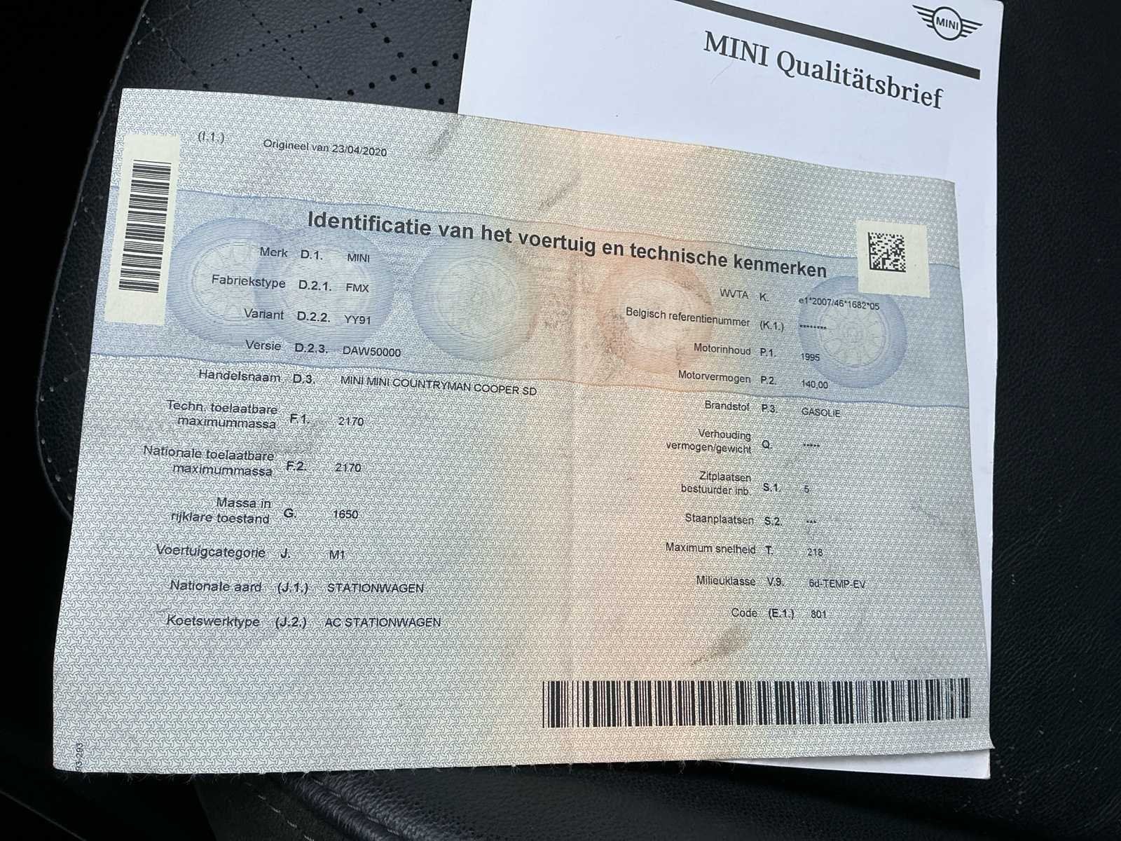 Nee Merk: Mini Cooper Sd 4x4 Bouwjaar: 2019 Afgelezen kilometerstand: 112868km Cilinderinhoud: 1996cc Vermogen (kW): 140kW Brandstof: Diesel Chassisnummer: WMWYY910703H03754 Energielabel: 6d-TEMP-EV Aandrijving: AWD Aantal zitplaatsen: 5 Transmissie: Automaat Aantal sleutels: 1 Nationaliteit documenten: Belgium Gelijkvormigheidsattest aanwezig: true Carpass: true Start en rijdt: ja Vavato voert geen technische keuring uit.: true Airconditioning: true Navigatie: true LED-koplampen: true Leder bekleed: true Vierwielaandrijving 4x4: true Inschrijvingsbewijs - deel 1 : Aanwezig Inschrijvingsbewijs - deel 2: Aanwezig